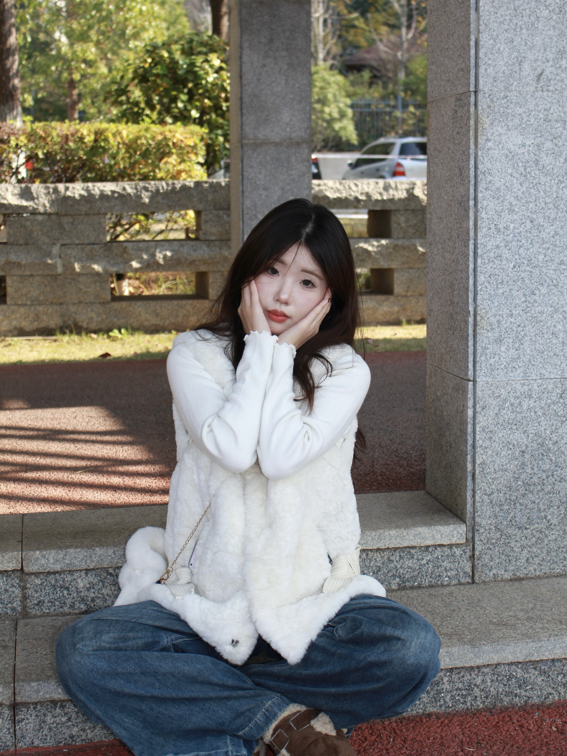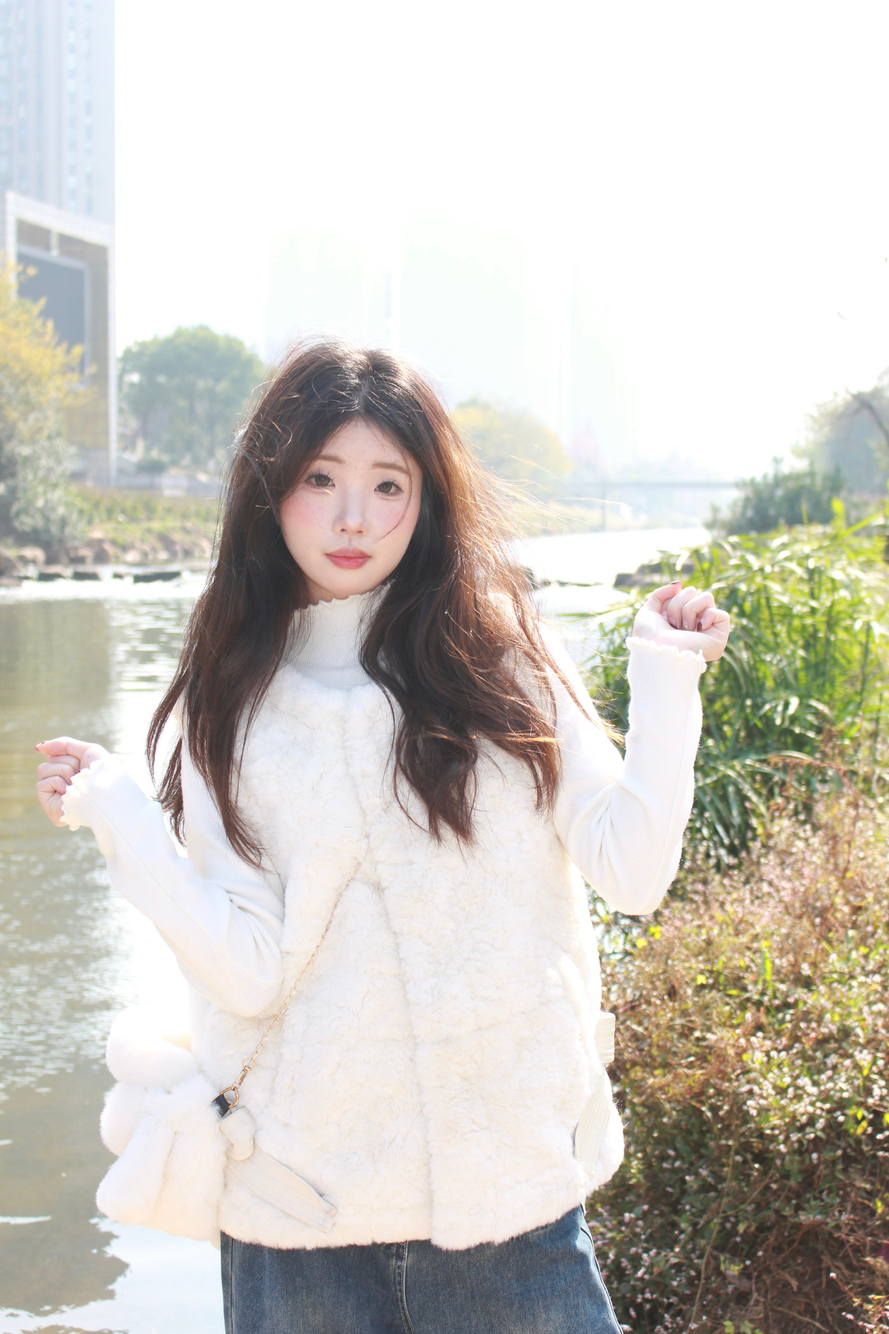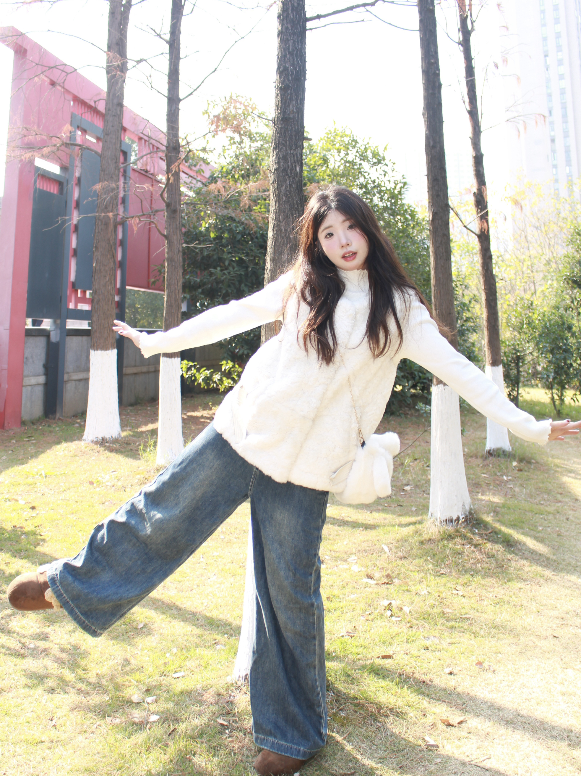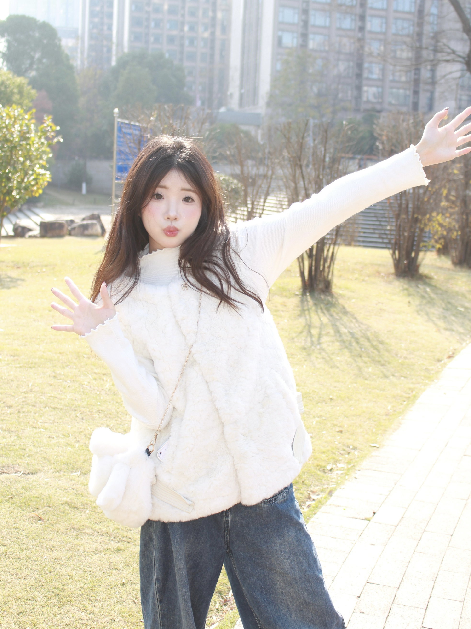 入手了今年特别火的毛绒马甲 白色的毛绒绒的面料特别舒服 穿起来巨显瘦还显气质 颇有甜美俏皮的感觉 阳光下拍照嘎嘎出片!