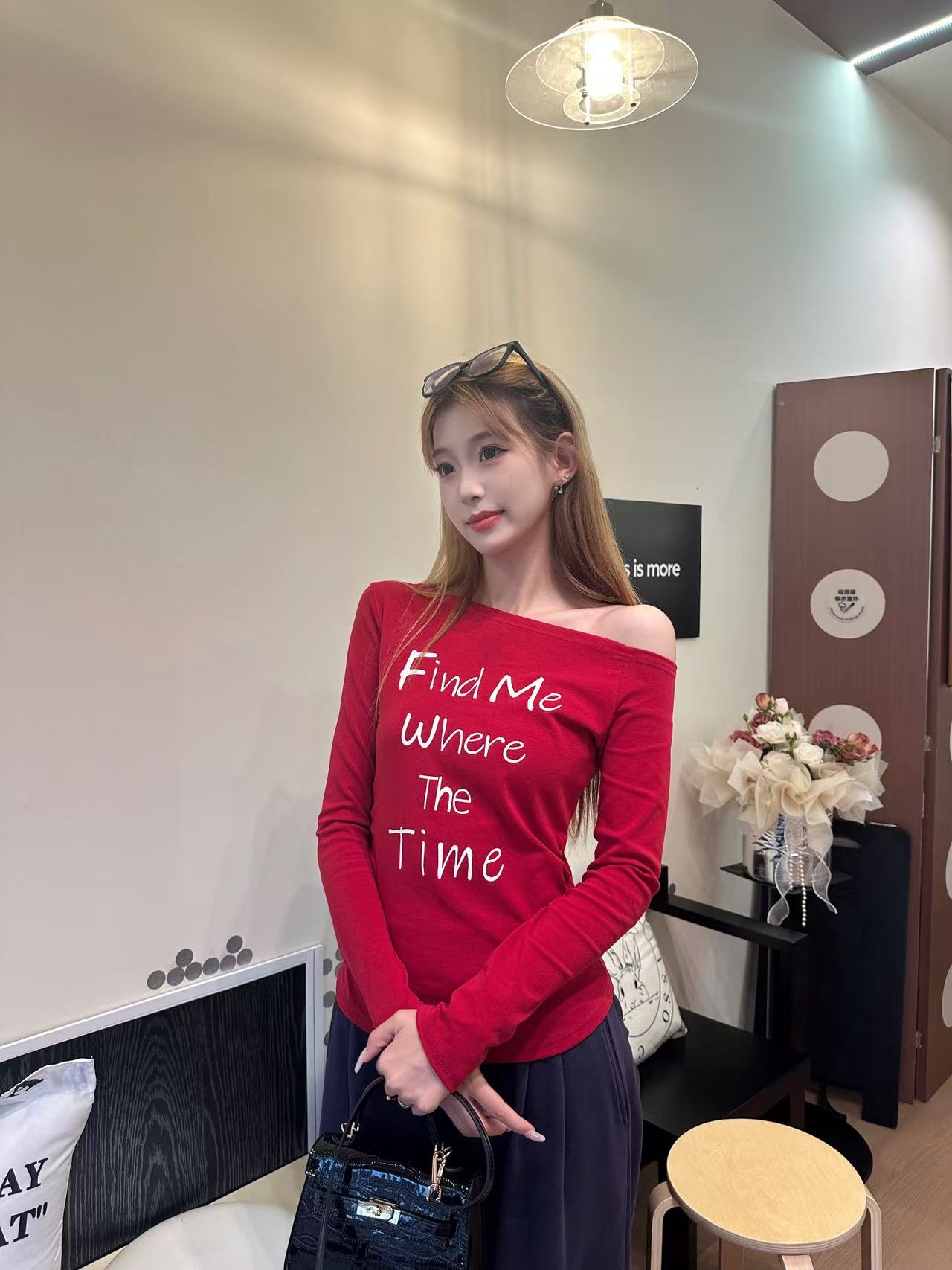 斜肩设计超级显脖子超级长🙉 修身剪裁掐出曼妙腰肢😍 白色手写体英文字母添了几分随性腔调🥰 软糯针织贴肤又舒服,单穿内搭都出彩🥳 解锁甜酷女孩的氛围感😋😋