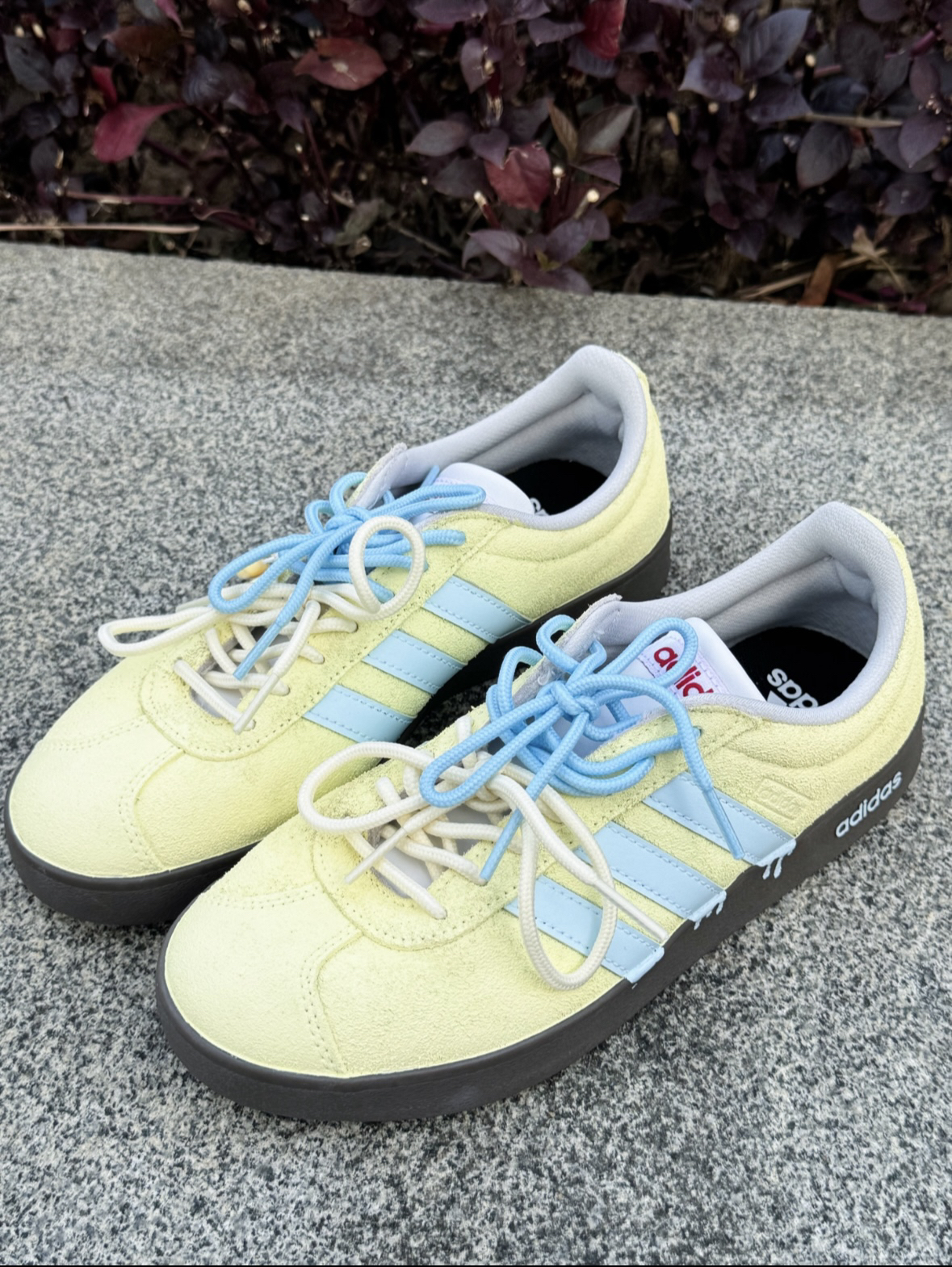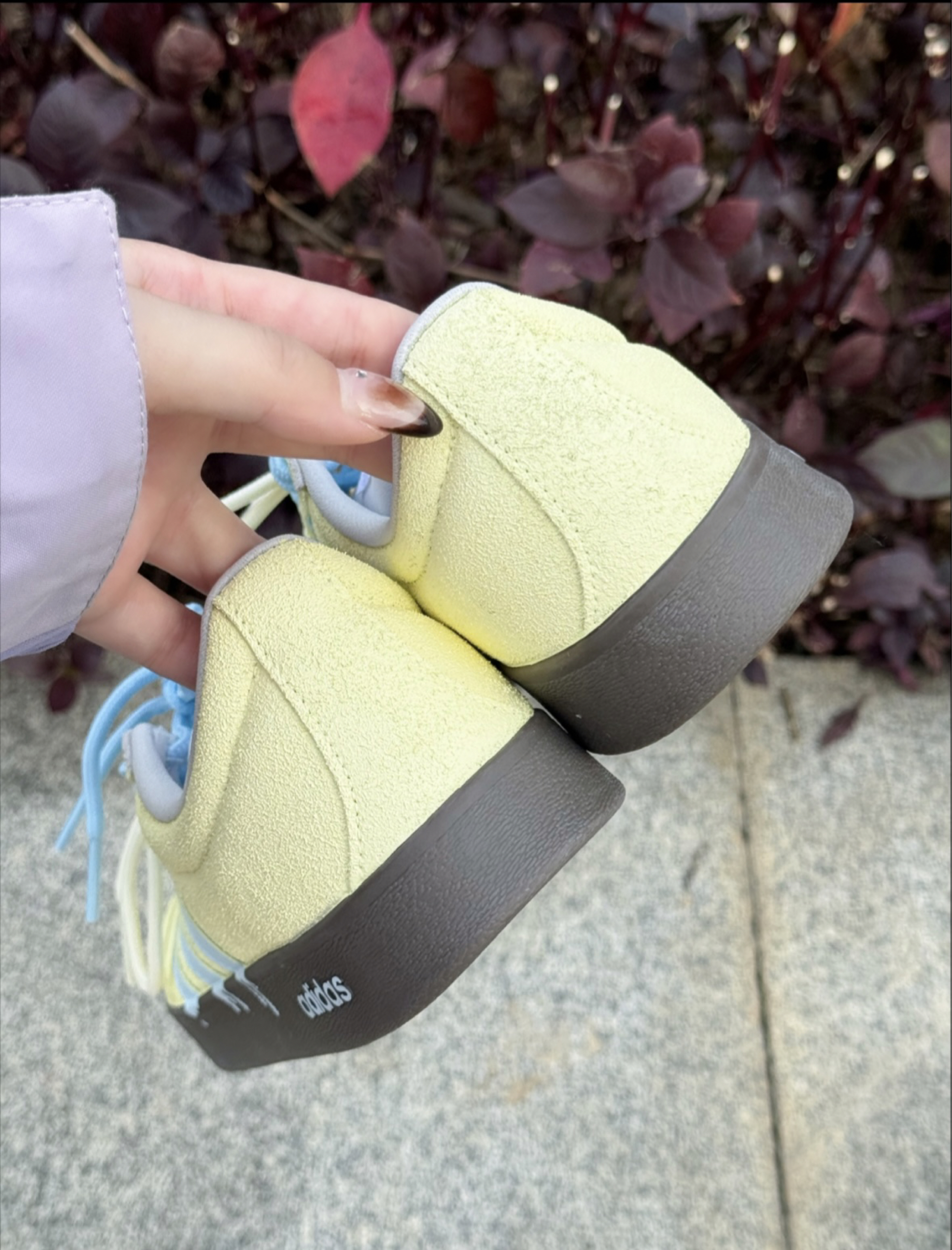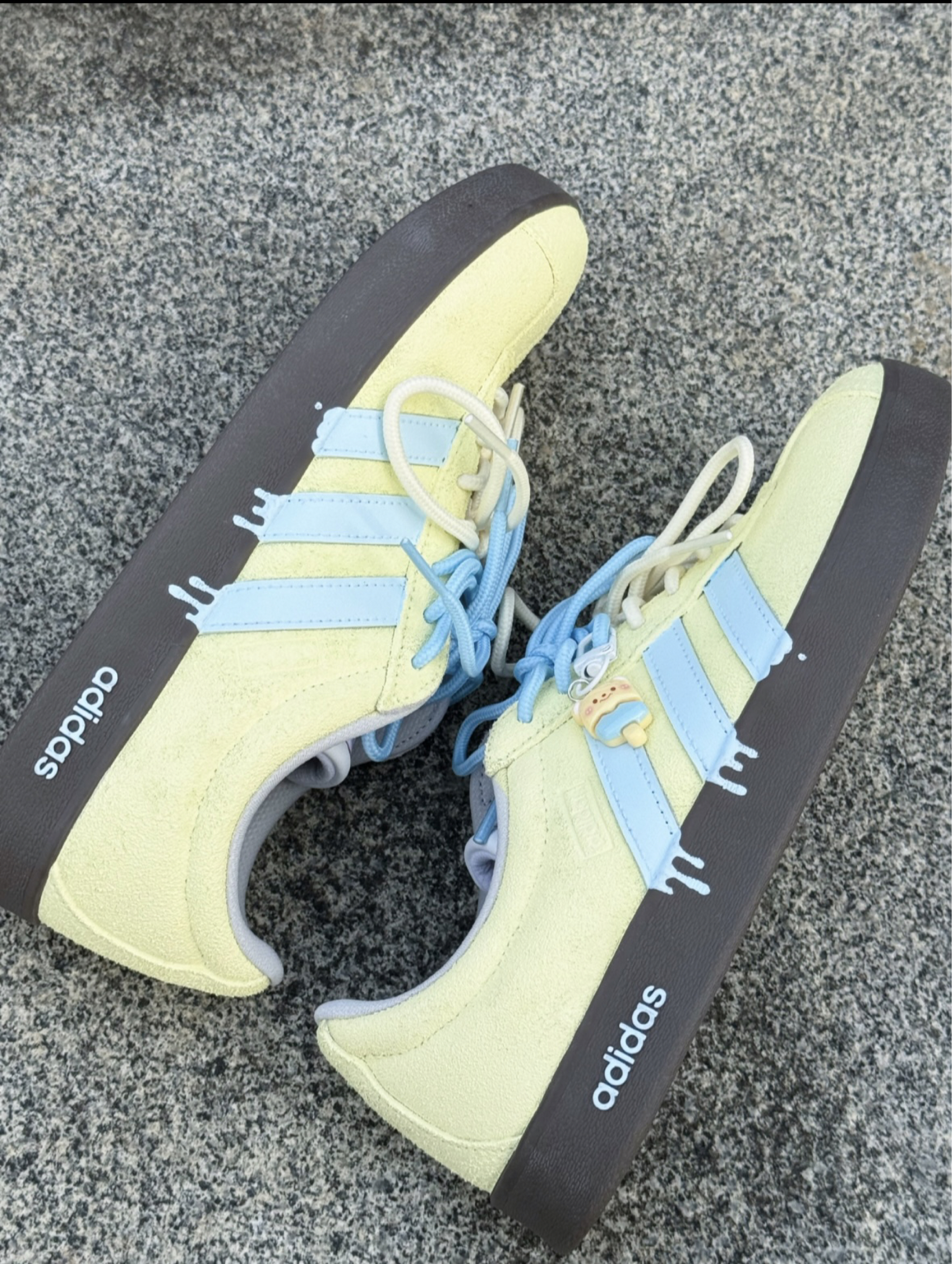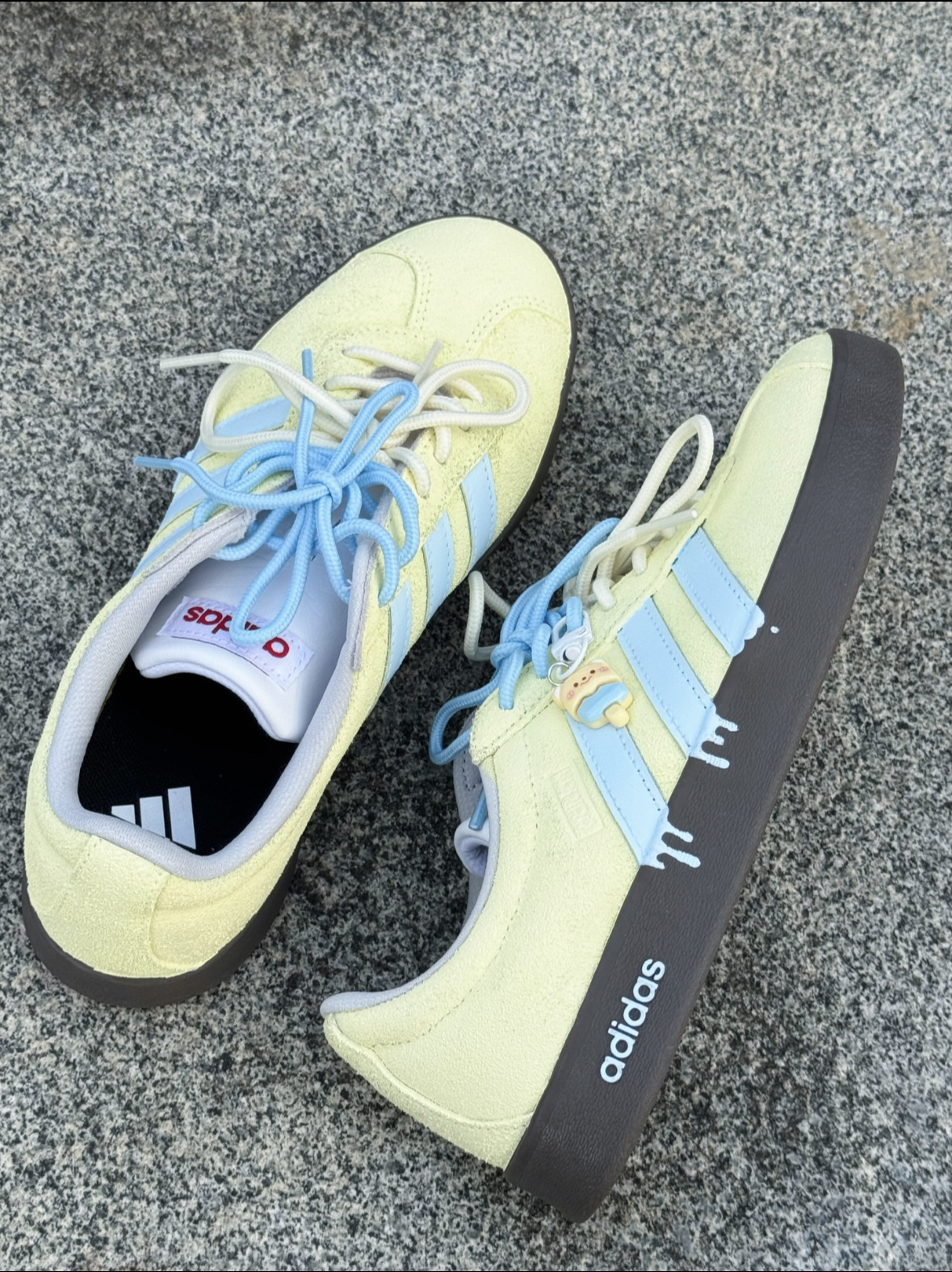 谁懂啊!这双adidas海盐小熊板鞋👟 配色真的软萌又耐看😍 黄蓝配色搭起来清清爽爽的 翻毛皮摸着手感也很舒服~ 芭蕾风+德训的感觉,搭裙子裤子都好看 而且防水还耐磨,上脚走路很轻便透气😎 最近天天穿它出门哈哈哈 (*^▽^*)