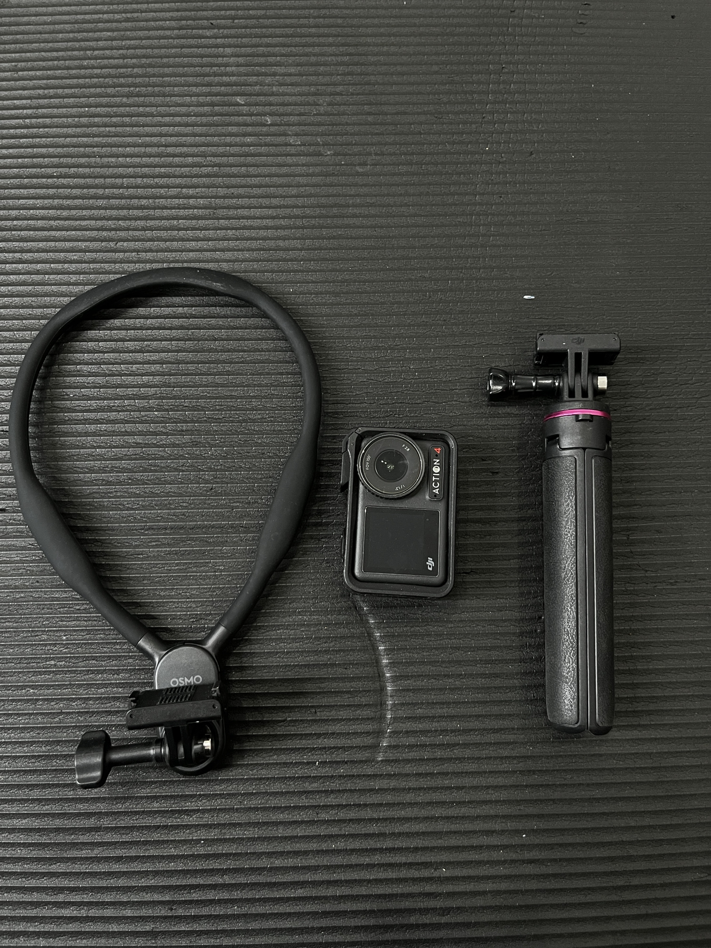 入手大疆Action4有段时间啦~📹它拍运动场景时稳定性不错,画质在运动相机里也算能打👏 但操作逻辑对新手不太友好,找功能得摸索好一阵😅 搭配的挂脖支架解放双手拍第一视角很方便,就是戴久了脖子酸,夏天还闷热🥵 而且续航一般得及时充电。自拍杆收纳小巧,伸长后稳定性差点,拍摄时得注意手抖问题🤳