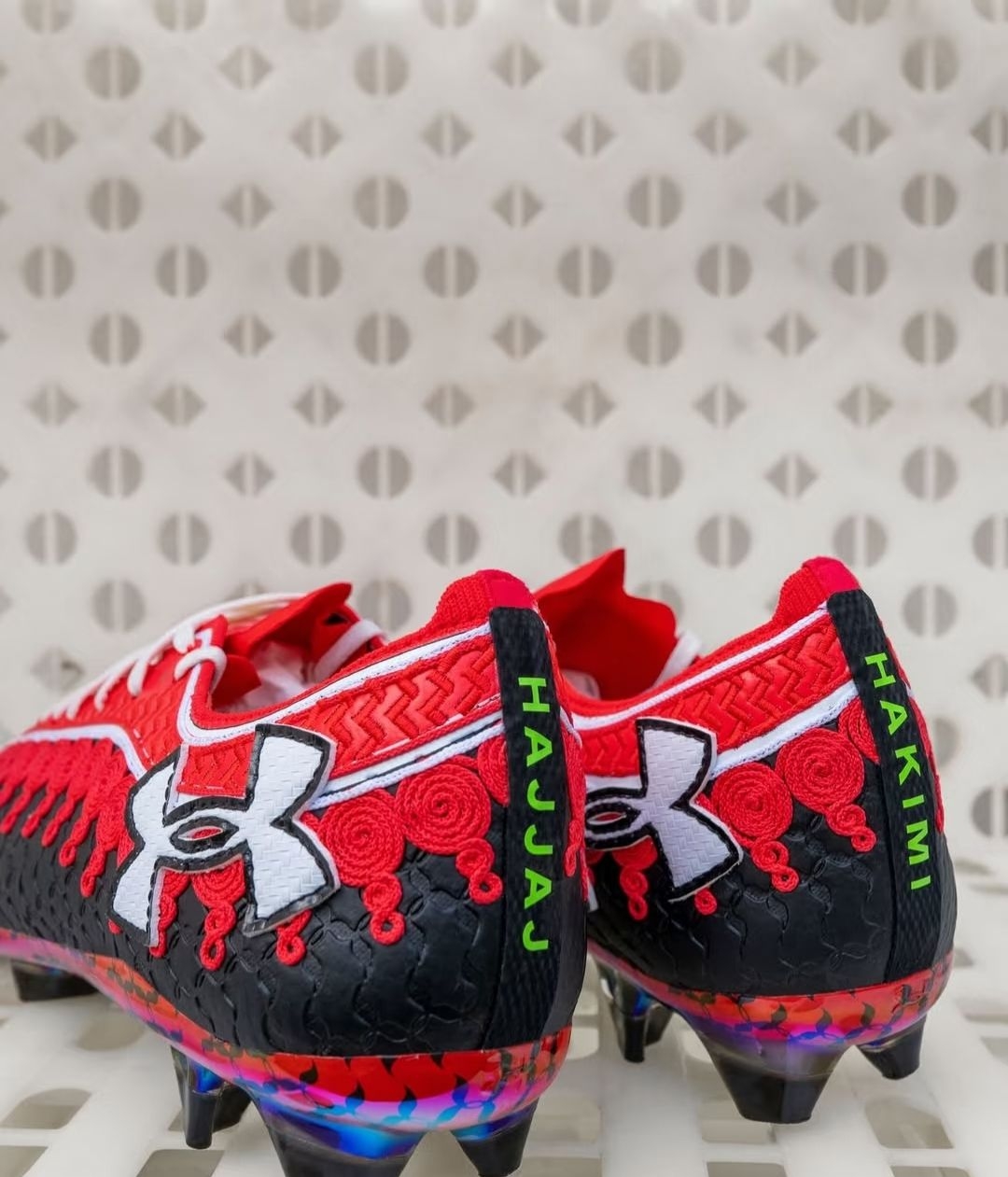 安德玛(Under Armour)在摩洛哥队非洲杯首战前,为阿什拉夫·哈基米发布了定制战靴。 这款球鞋是与艺术家哈桑·哈贾杰(Hassan Hajjaj)合作设计,灵感来源于摩洛哥传统刺绣“sfifa”。 #摩洛哥 #阿什拉夫 #安德玛 #非洲杯 via.brfootball