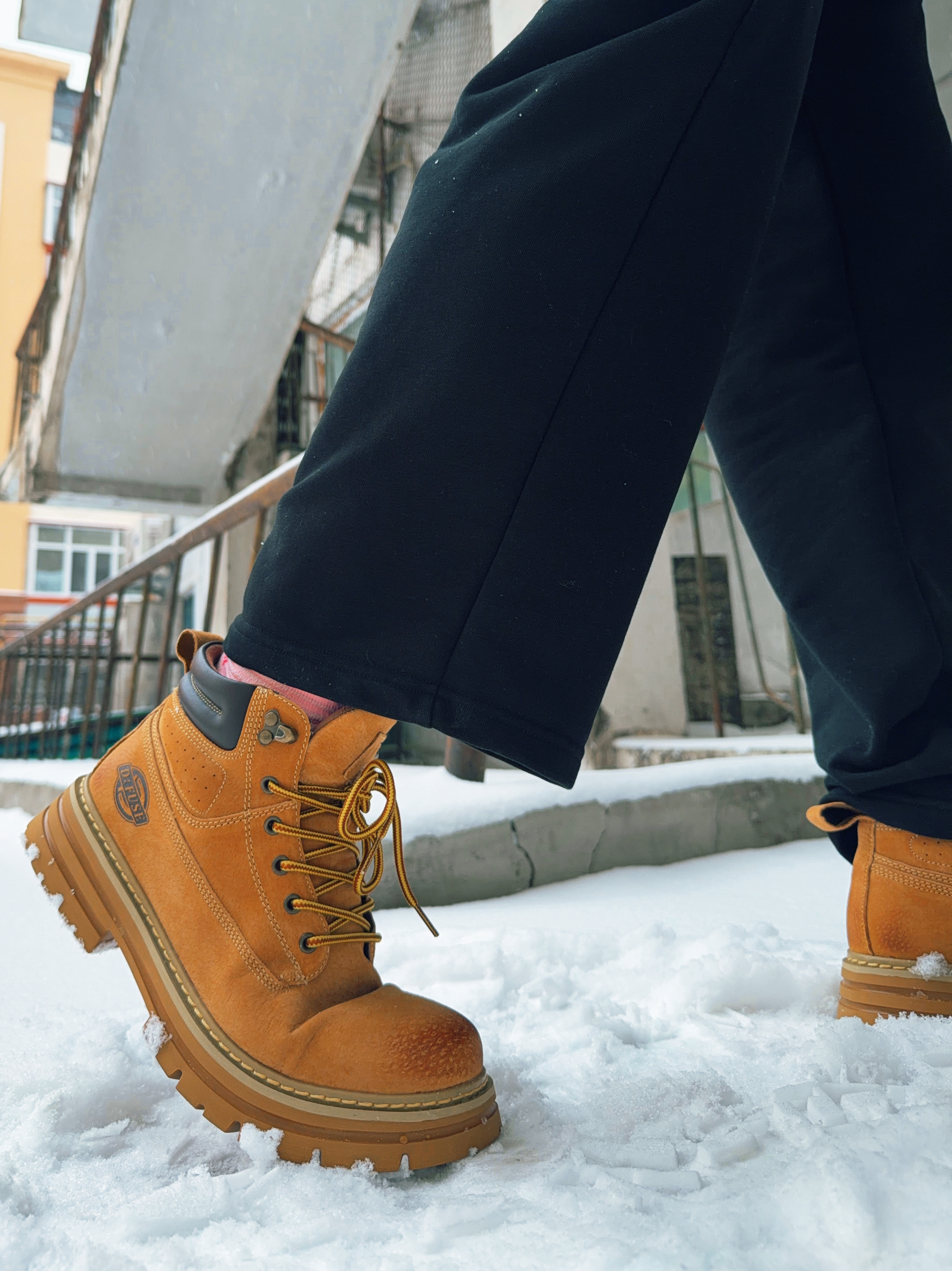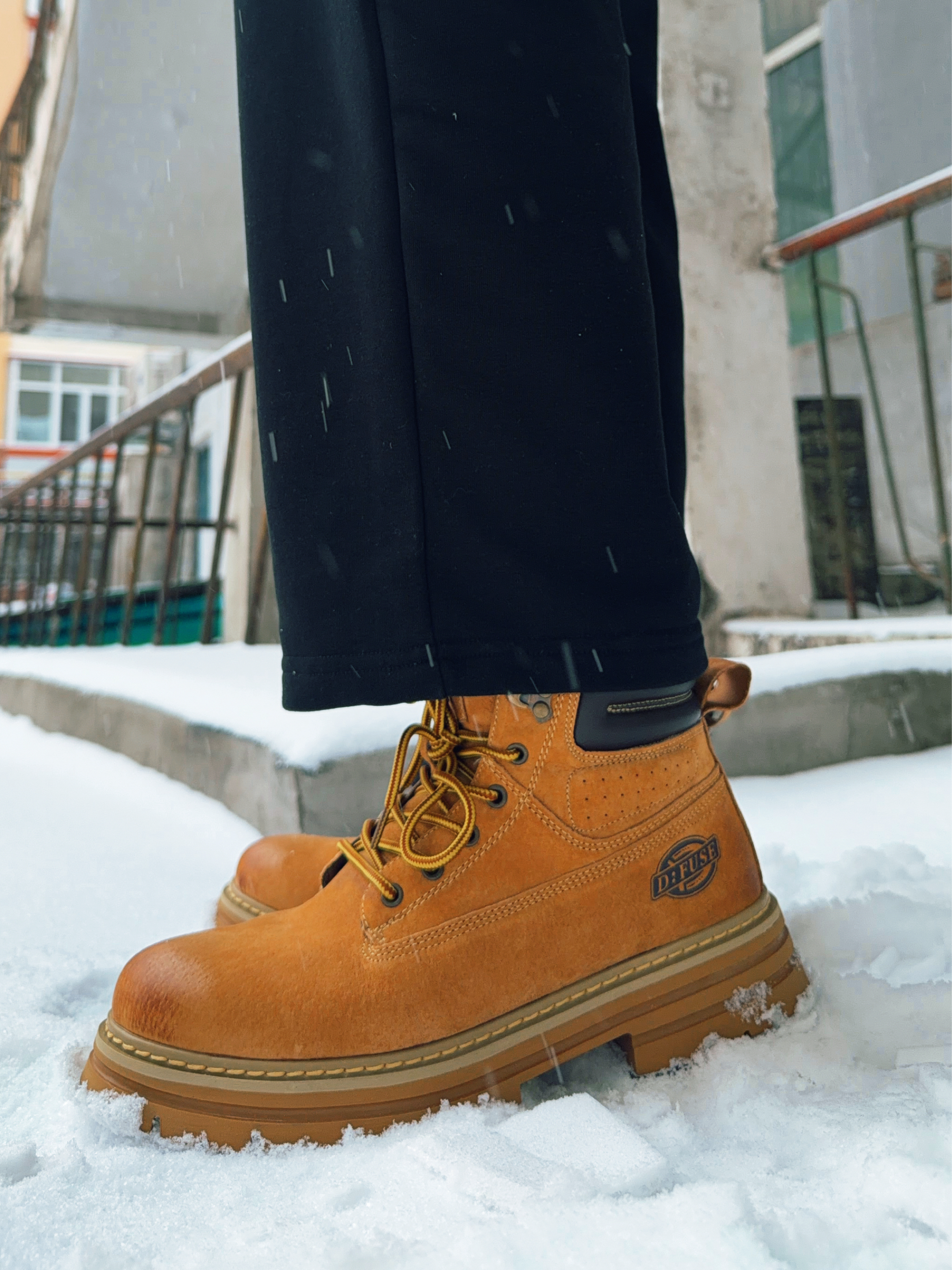 知道大黄靴踩在雪地上的感觉吗❓最近入手 DFUSE迪芙斯的复古大黄靴 非常经典的黄棕配色 有一点渐变的效果 很有质感 复古感拉满 皮质很柔软 绒面质感的牛剖层革拼接 穿在脚上不会有磨脚的情况 很舒适 内里的填充也很厚实 中底比较厚 也没那么硬 既有一定的增高效果 还很好的隔冷 鞋底纹路雪地防滑也很不错 像我在东北的冬天上下班开车 穿着它完全够用 很百搭的样式 不论搭配休闲裤运动裤都不错 尺码也比较...