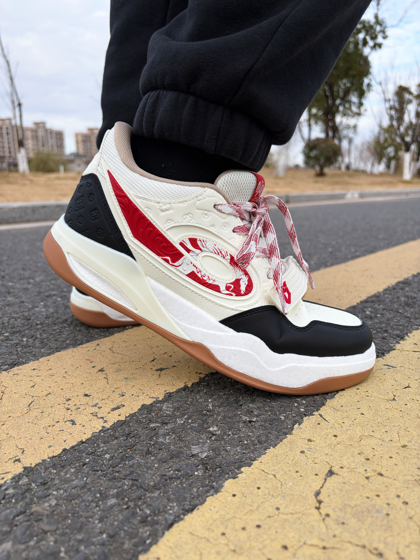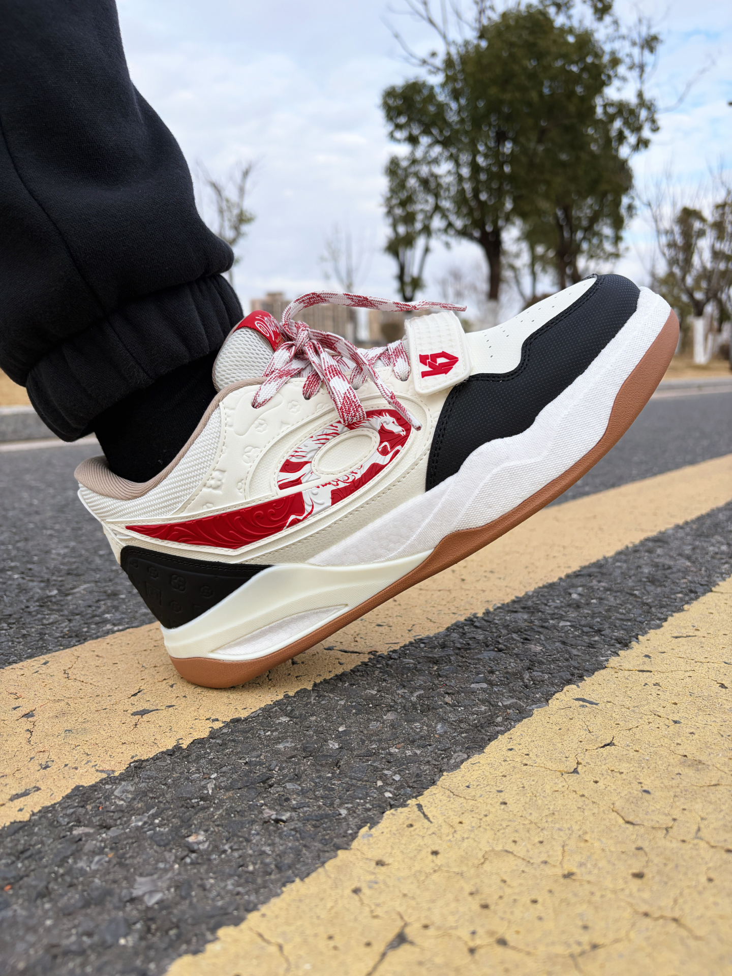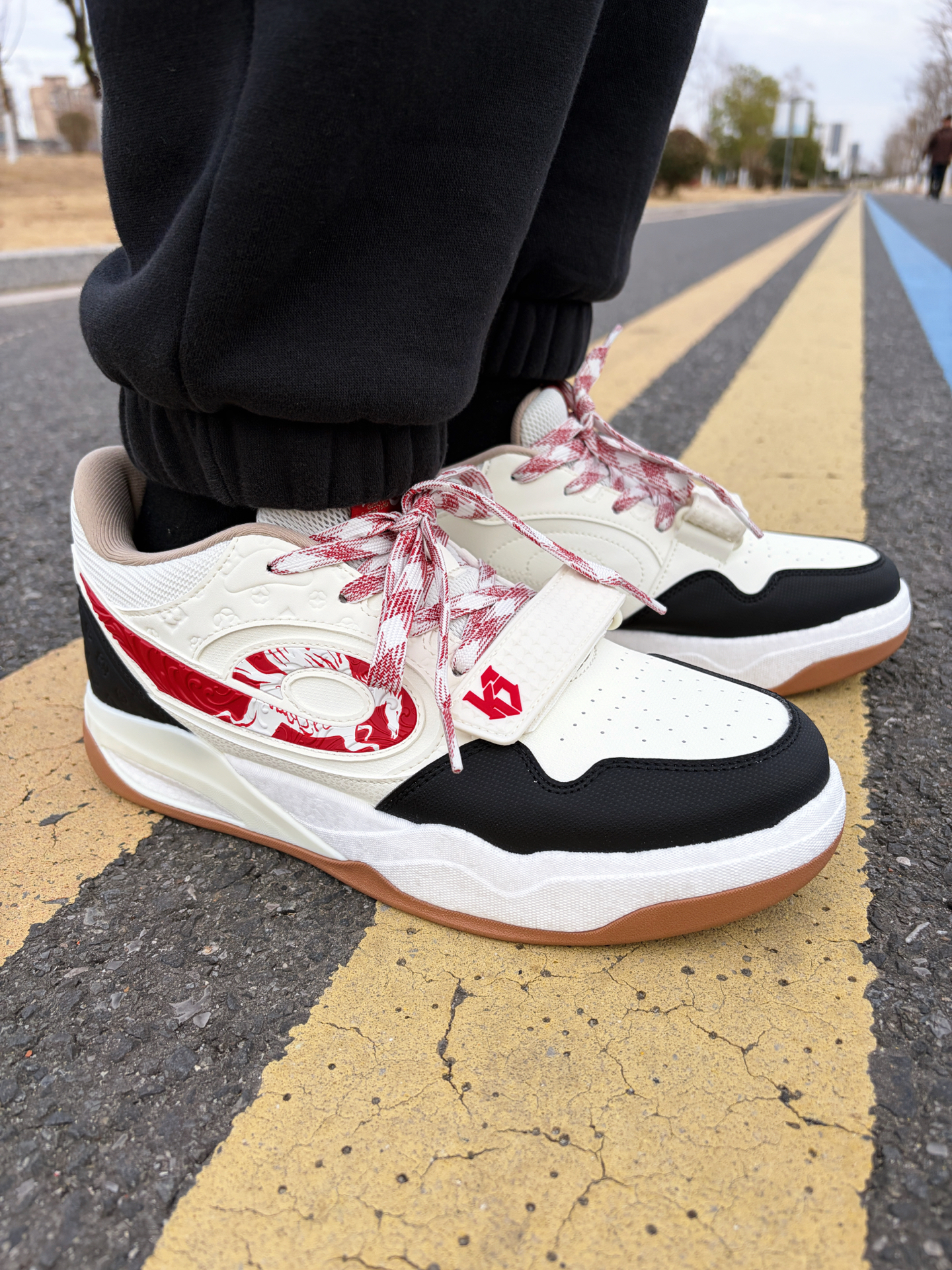 中乔传奇2.0测评分享 个人数据 👤平时穿的鞋子选的43,这双也是43,尺码不偏码。 ✅上脚感受 (1)静态反馈 板鞋的设计造型,外加魔术扣,鞋口宽松,很好穿搭。配色是马年限定配色,而且鞋楦也是做了加宽处理不会板脚。 (2)做工设计 鞋面是用到了皮革材质,层次丰富,而且上脚也很保暖,中底橡胶材质脚感软弹并且鞋底带有纹路设计,平时走路带来很好的抓地力 ✅颜值穿搭 (1)板鞋的话还是很容易搭配的,日常...