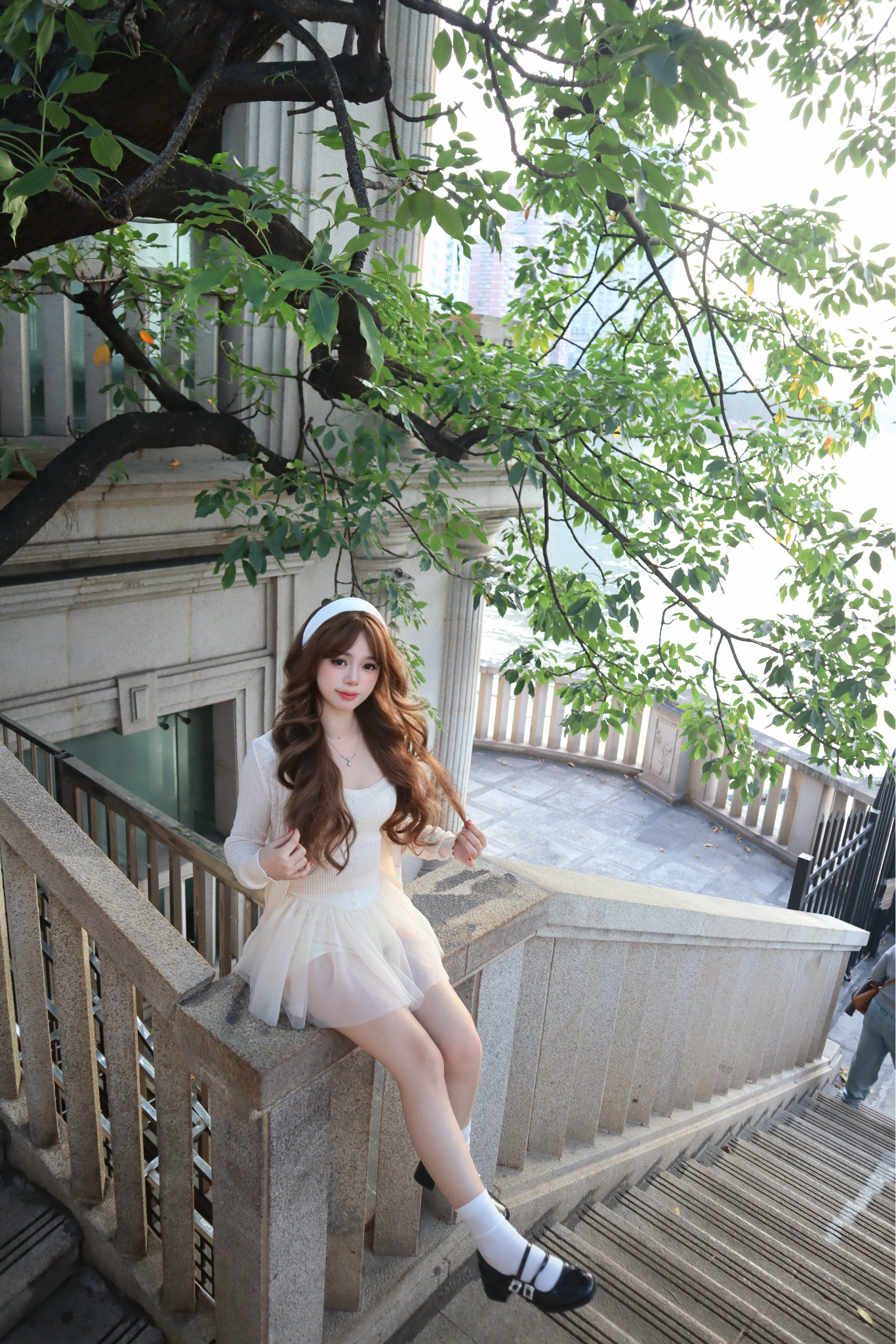 去广州玩啦~12月广州还是热热的 穿这一套仙仙的套装都不会冷哦 里面是同色系吊带,开衫也是同色系 穿上好显瘦!!裙子里面做的内衬灯笼裤,外面是一层纱裙~ 这一套日常穿也好贵气 打卡机位在人民桥🌉