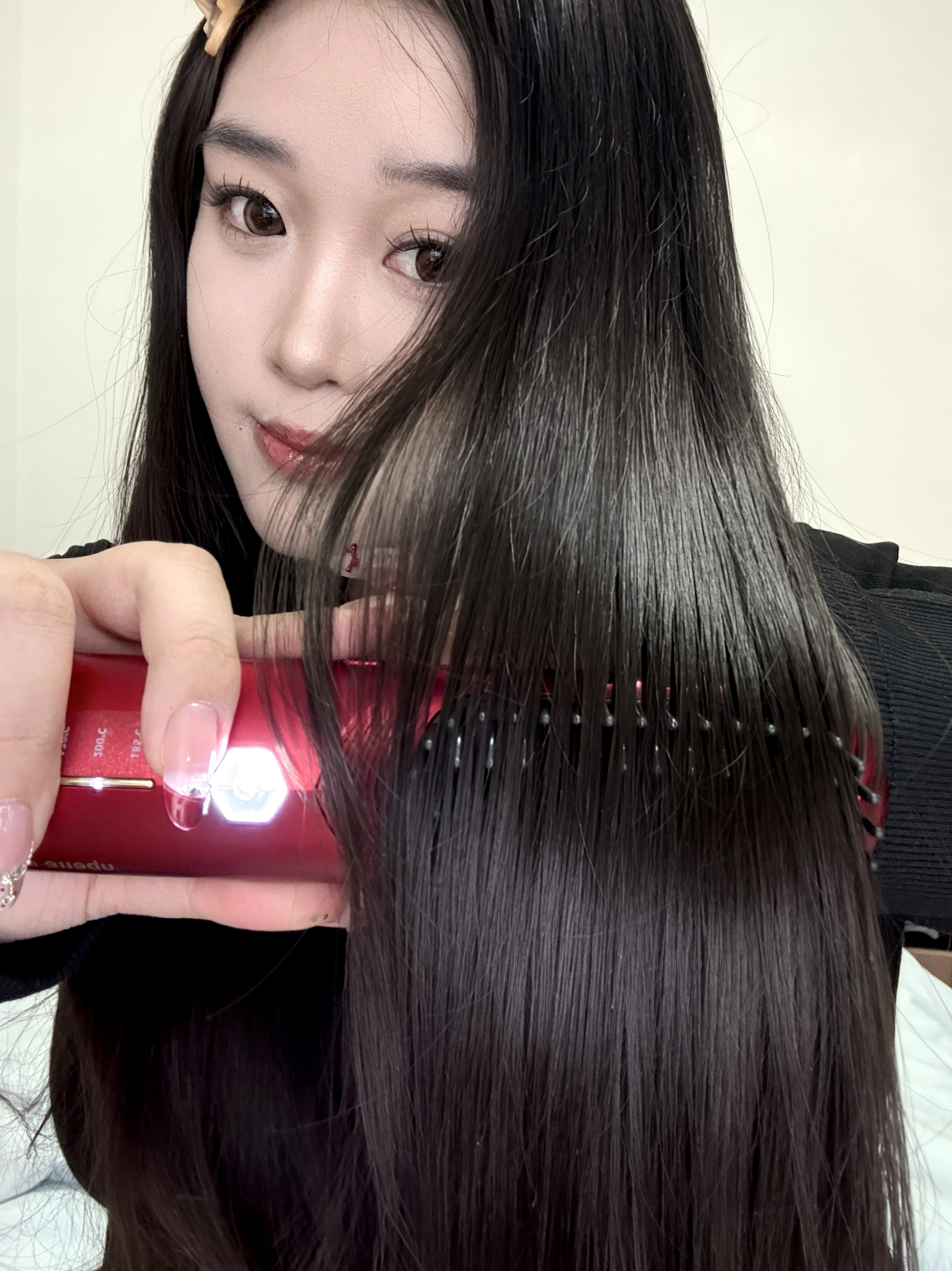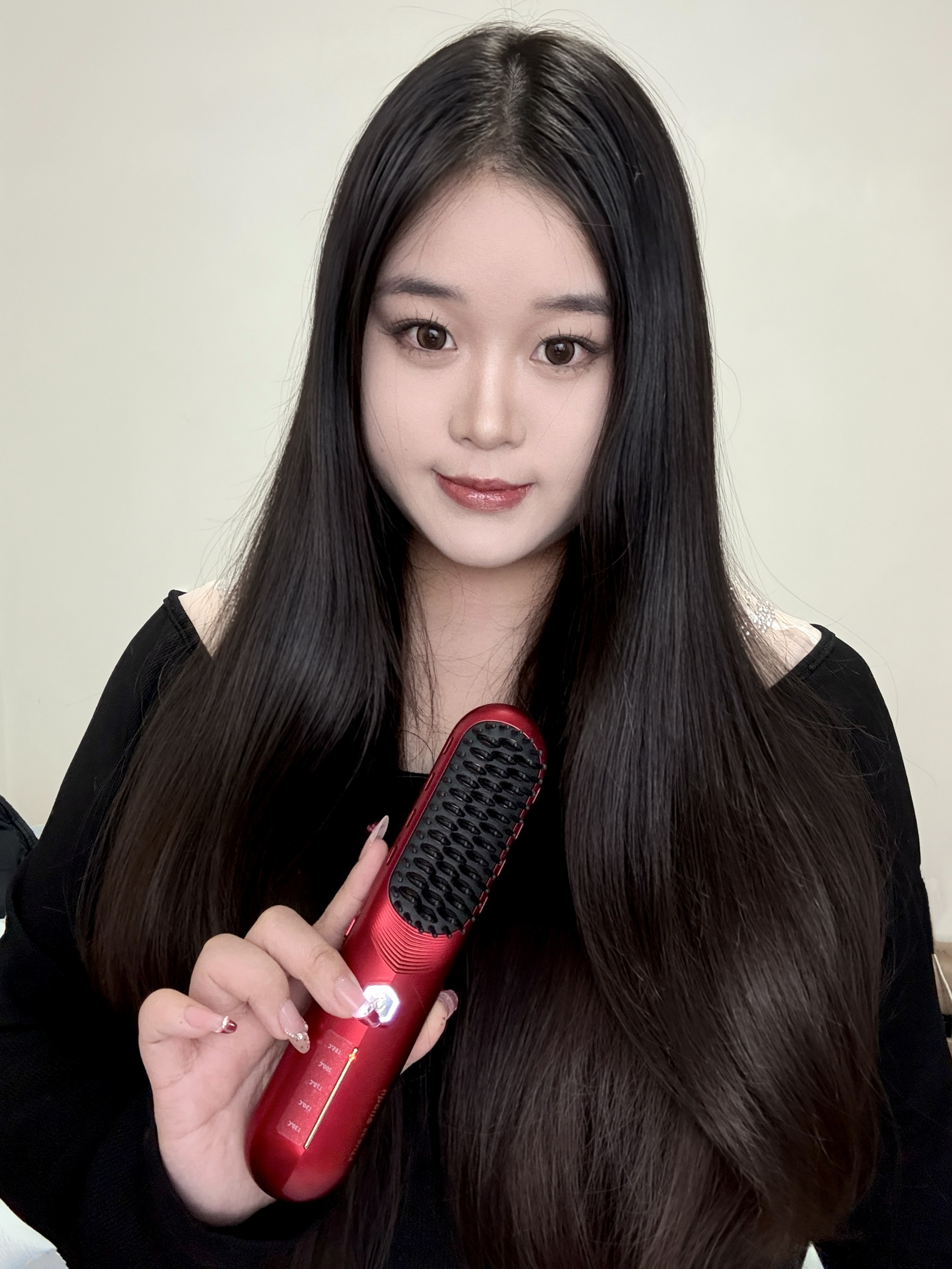 咱就是说长头发真的很难打理 我头发顺溜全都靠这直发梳 梳完的头发hin顺滑还有光泽 而且不用担心它会伤头发哦~ 无线的设计用起来也敲击方便 喜庆的礼盒包装看起来非常精致 一梳百顺 仪式感这块直接拉满啦!