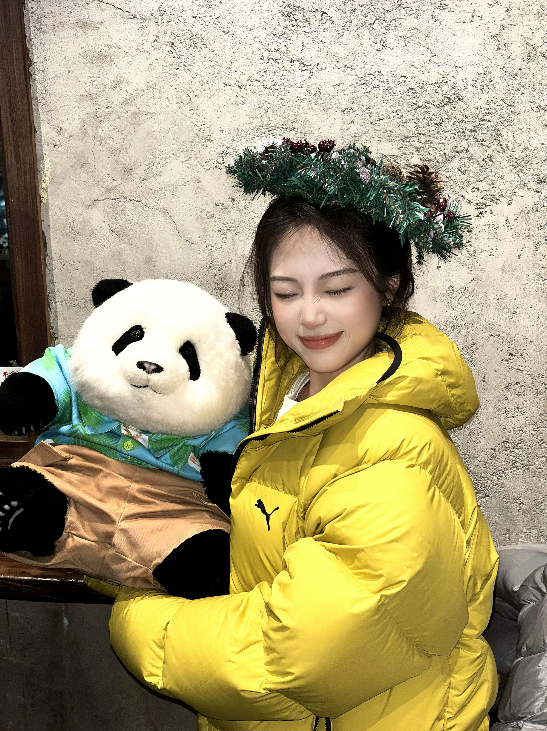 今天穿的是PUMA亮黄色连帽羽绒服 哑光面料+蓬松充绒,保暖又不显得臃肿,亮黄色在冬日里超吸睛,瞬间提亮整体气色 简约的拉链连帽设计,休闲感拉满,搭配帽子围巾都很适配 内搭选了基础款白色打底衫,清爽又能中和黄色的跳脱感 配饰搭了圣诞风的松枝发箍,和熊猫玩偶同框还多了点可爱感,日常出街或者游玩穿都合适
