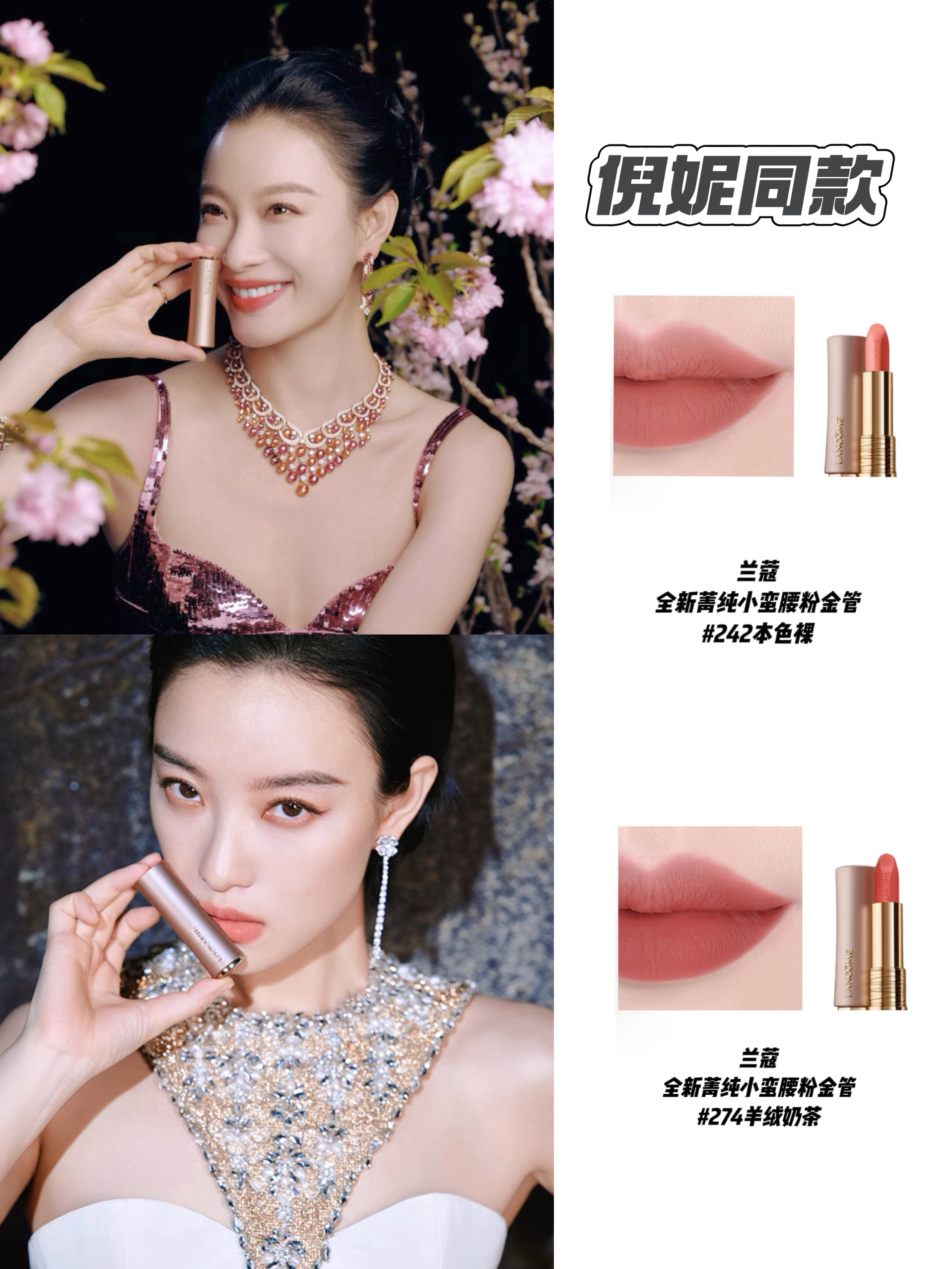 本篇笔记关联了Lancome/兰蔻 全新粉金管小蛮腰菁纯口红 半哑光款柔雾 3.4g 274 羊绒奶茶、【2025圣诞限定】Lancome/兰蔻 90周年幸福邮戳菁纯小蛮腰唇膏 雾面哑光易上色 3.4g 296上瘾红等商品,为用户提供真实的使用体验和购买参考。