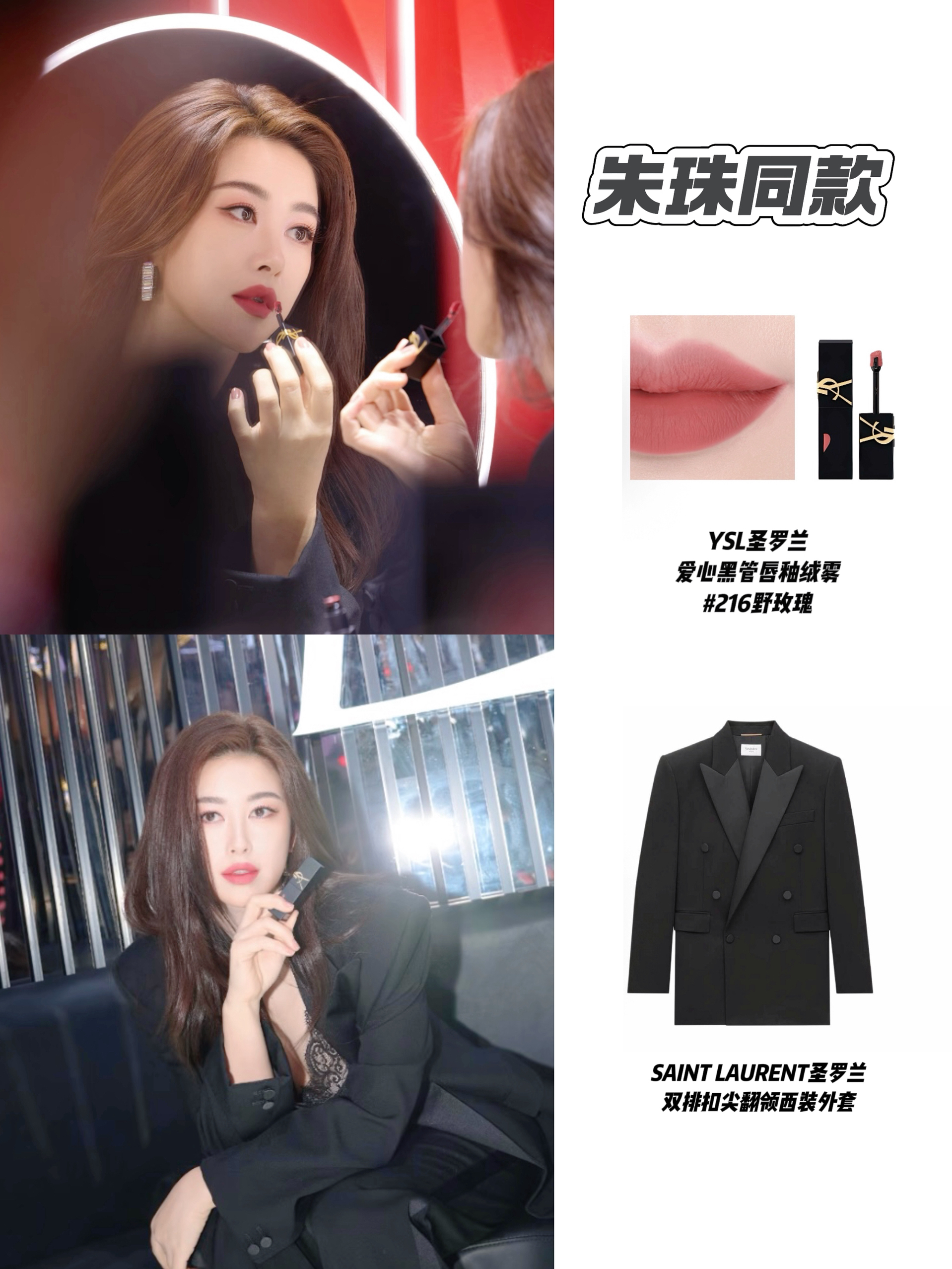 朱珠同款这支YSL216野玫瑰是秋冬气质挂唇釉首选之一☝🏻 低饱和粉棕调裹着绒雾质地,上唇是清冷又温柔的氛围感。搭配黑西装自带贵气,配大衣则添了松弛感。薄涂伪素颜提气色,厚涂是秋冬独有的冷柔气质,是适配各种风格的秋冬万能唇色。