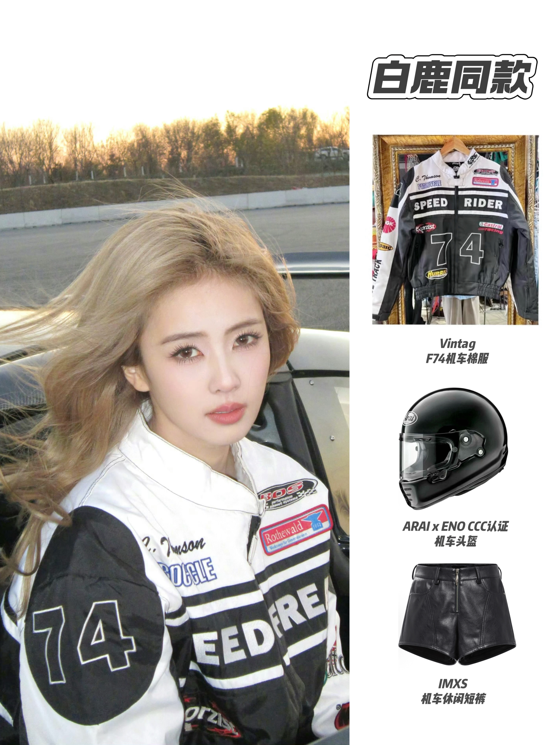 白鹿的赛车手妆造搭配一头金发,又酷又美😻这身真的好适合她,内娱导演赶紧递本子📒 黑白赛车服印满赛道元素,自带机车热血感;黑背心+皮短裤衬出利落线条。ARAI机车头盔直接拉满赛车氛围,又酷又飒热血感满满,这一身谁能不爱🤩