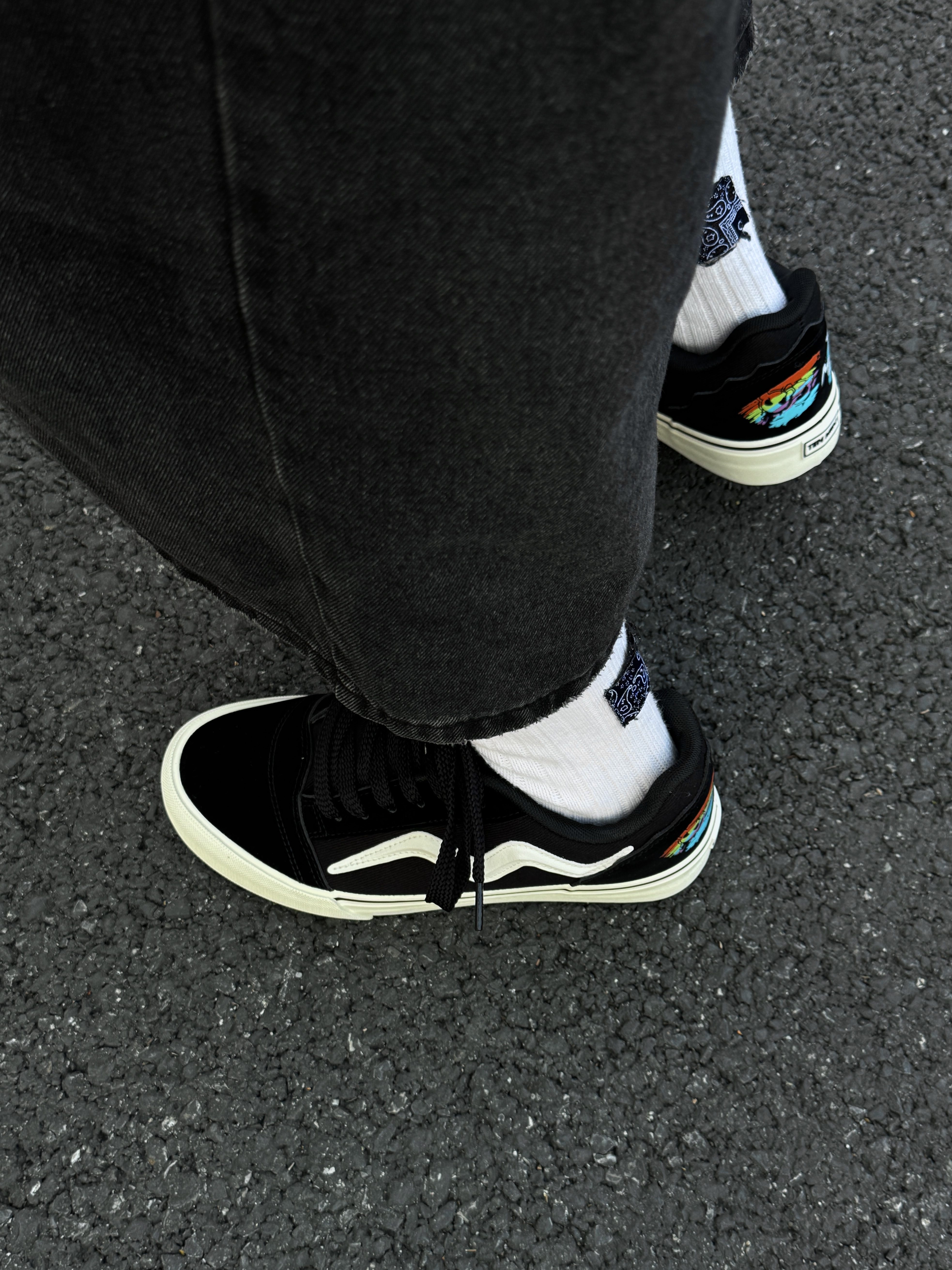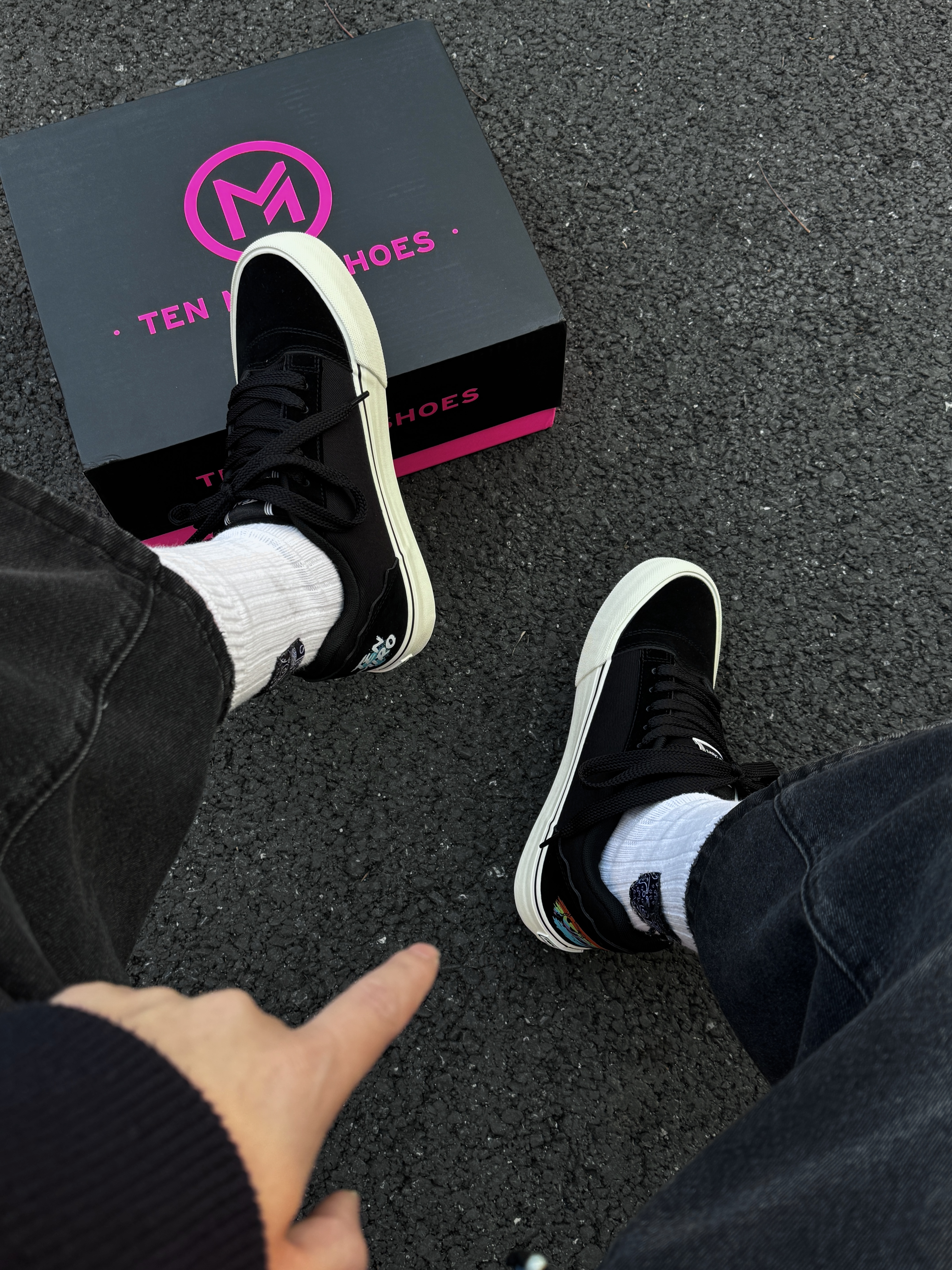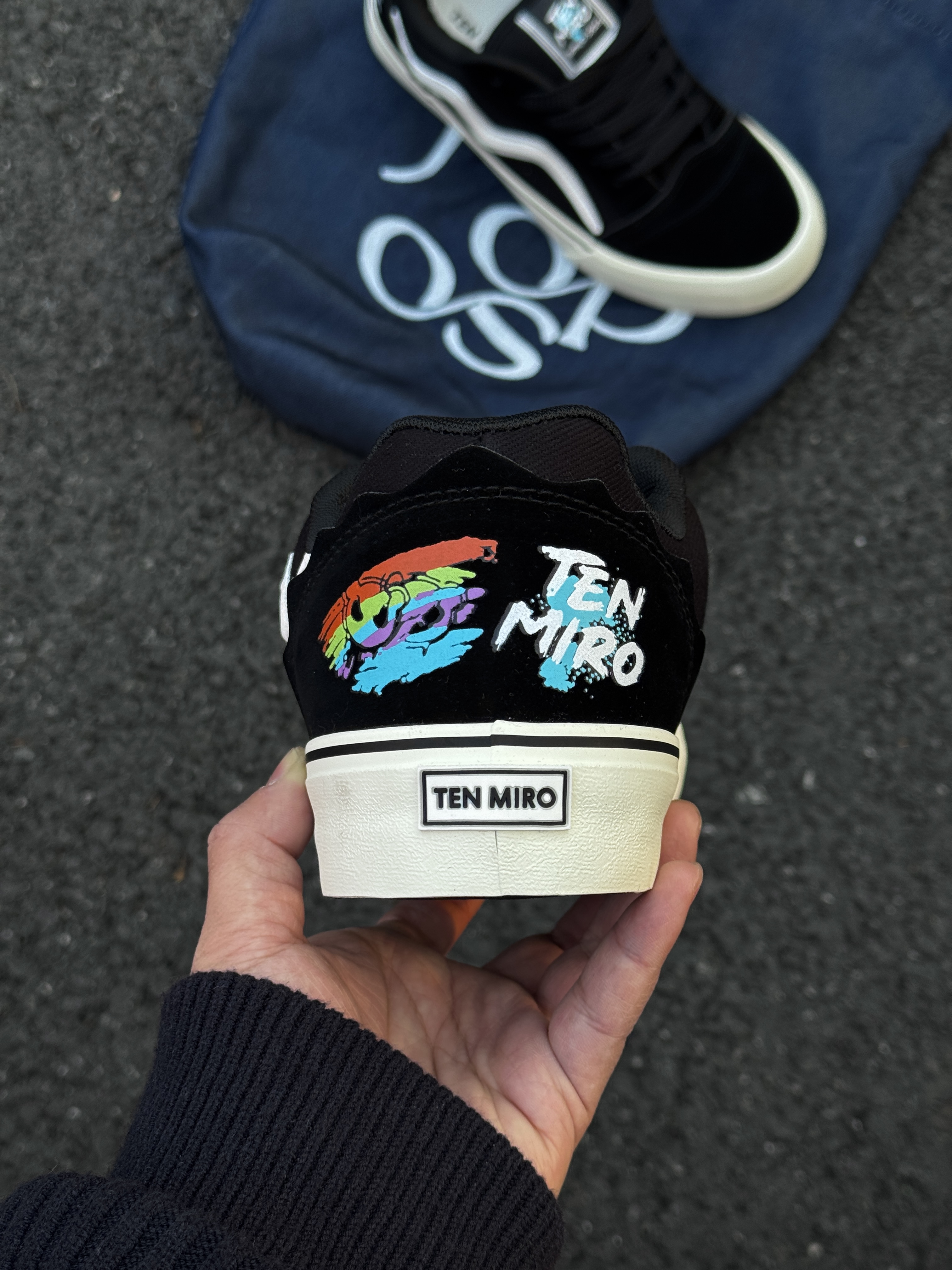 ~ 给大家分享一双 #TEN MIRO 的黑白板鞋👟 这双的特色就是鞋后跟的位置做了彩色的图案 黑白的板鞋就是特别百搭和耐看的款 搭配牛仔裤👖特别有街头og的味道 他们家的鞋子就是港宝的位置都会做加固 穿起来不磨脚后跟😎 尺码小建议: 徐哥平常穿的40这双40的刚好合适‼️ #竟然被鞋抢了c位 #时髦蜈蚣精 #分享神仙運動板鞋 #2025年年度鞋王 #被这双鞋帅到