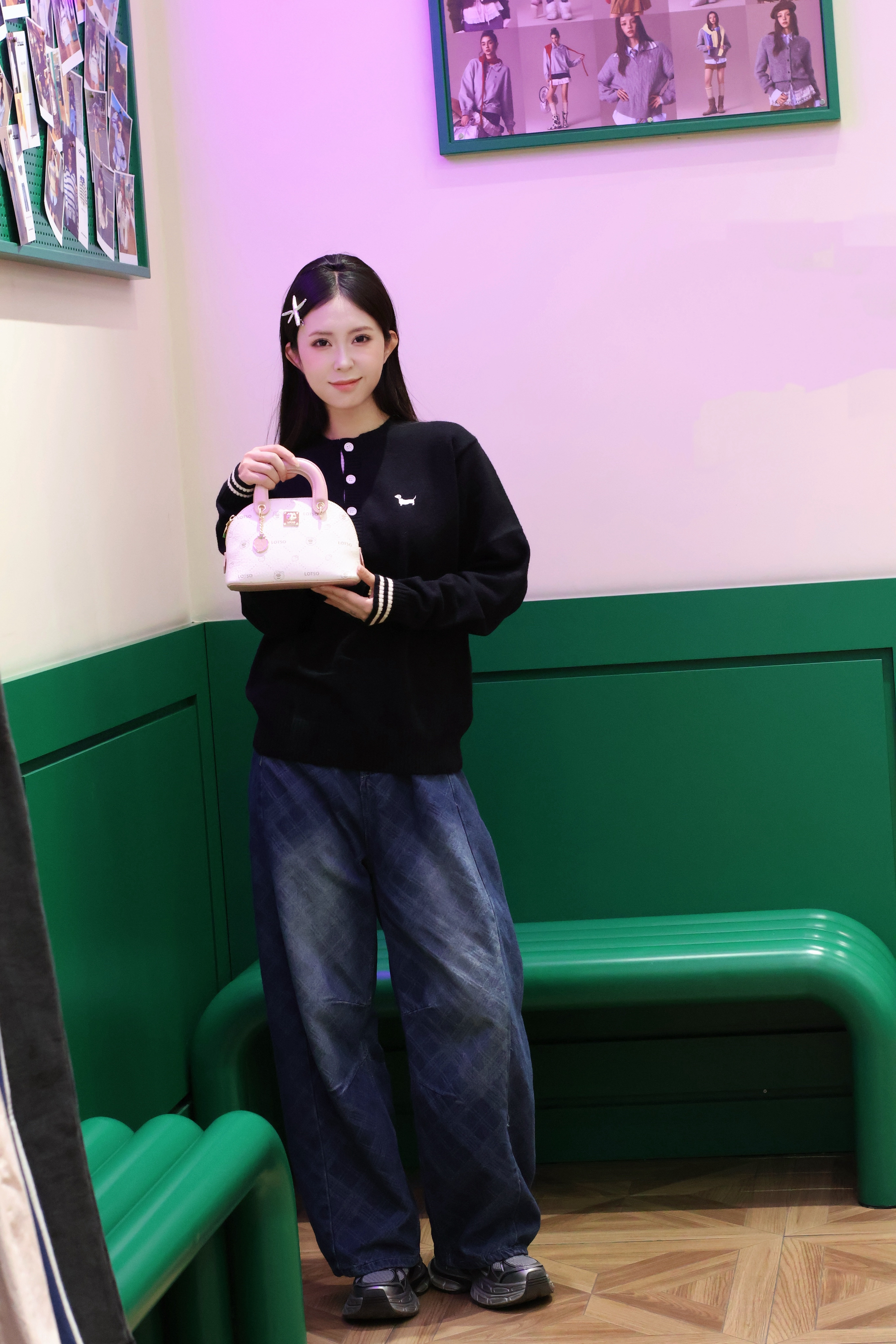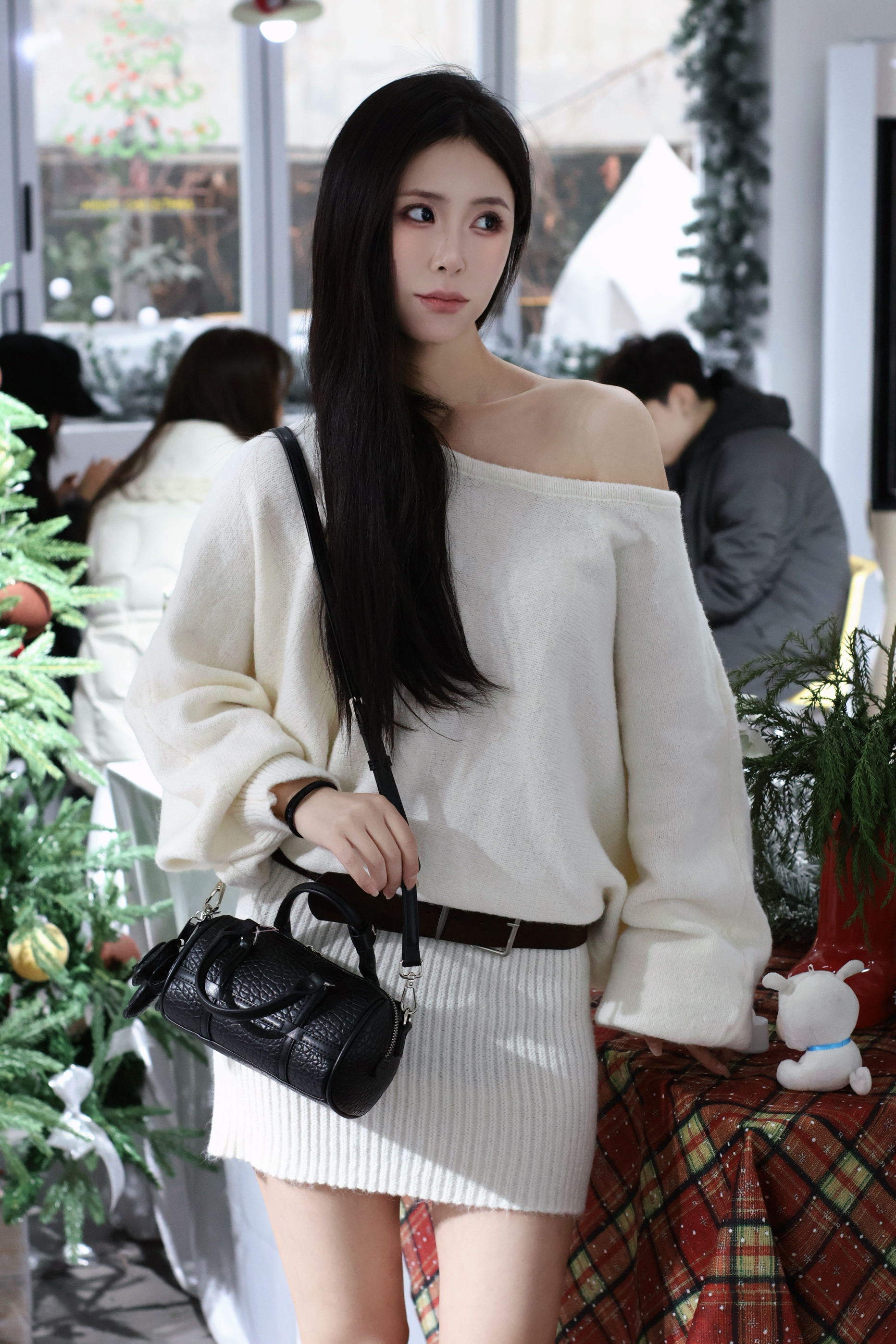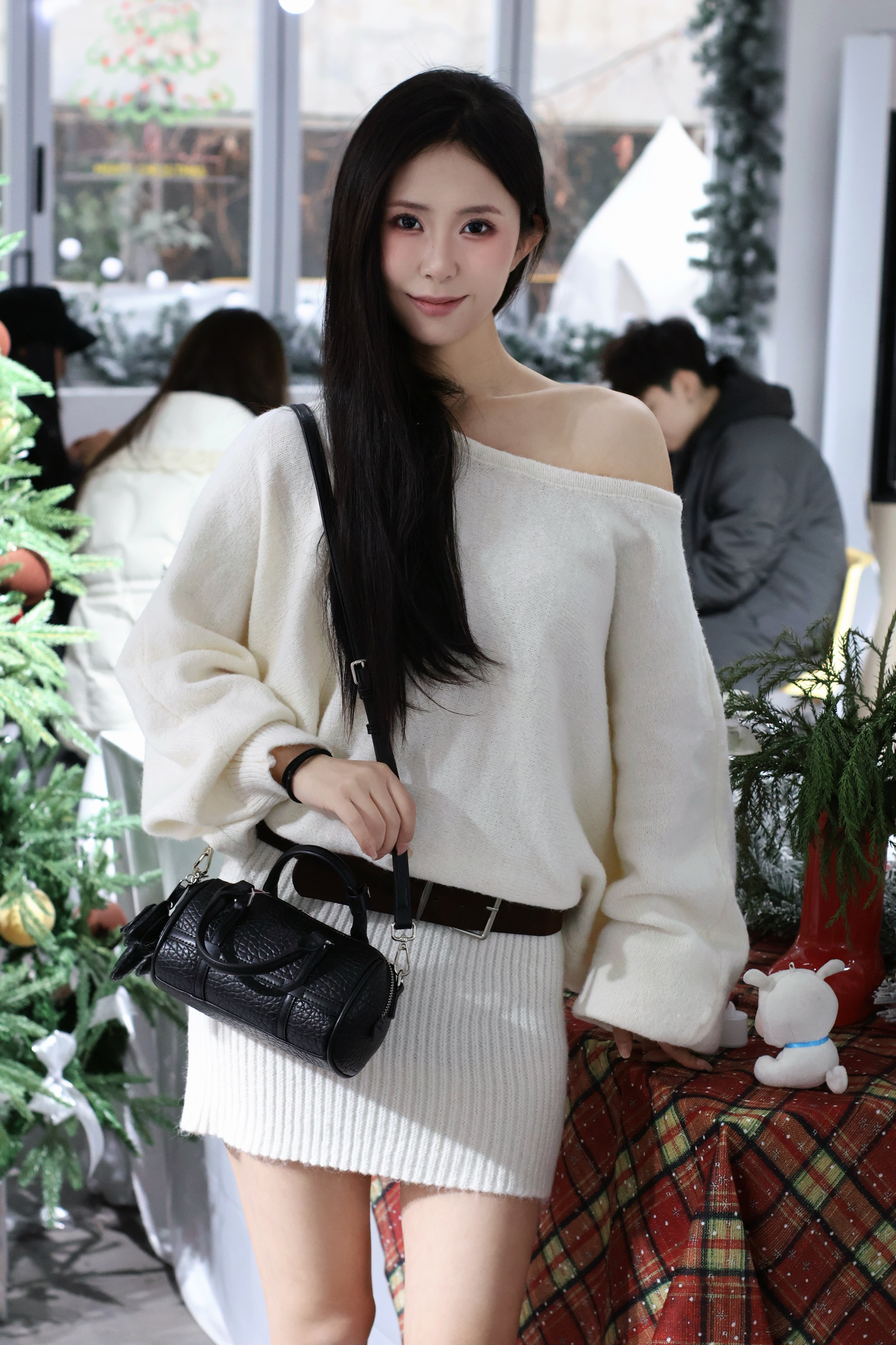 新入的黑色圆筒包真的戳中我! 鳄鱼纹皮质摸起来超有质感,迷你尺寸装下口红、钥匙这些小物件刚好,手提斜挎都好看。#甜妹美女孩宝藏包包分享 搭配白色露肩毛衣,甜酷感直接拉满,细节处的挂饰还能拆,小众不撞款~