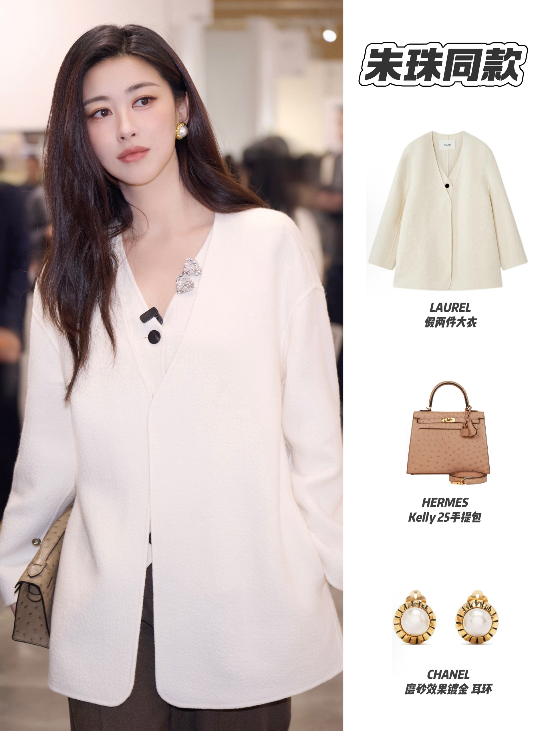 朱珠新剧《他为什么依然单身》正在热播中,“顾医生”跨界开穿搭班好像也不是不行😂私下穿搭真的是行走的“老钱风”模版~ LAUREL假两件大衣的奶白质感衬出温柔氛围,HERMES鸵鸟纹Kelly包自带奢华滤镜,CHANEL珍珠耳环则是精致点睛之笔,整体配色柔和、单品质感上乘,既得体又显贵,很适合正式场合
