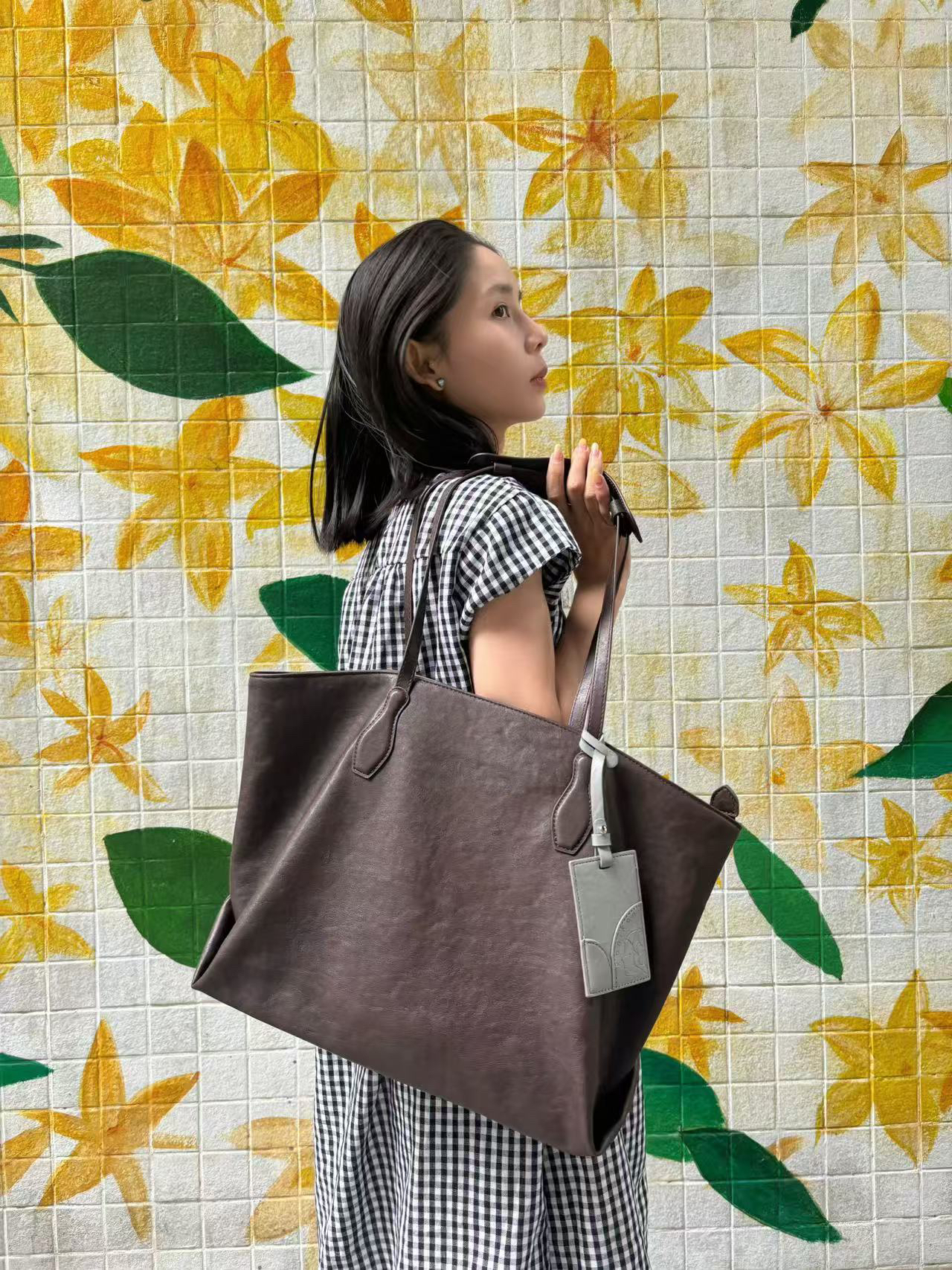 最近入手的这款托特包真的太合我心意了~皮质防脏耐磨摸有质感还百搭 最让我惊喜的是它的容量,真的超大!保温杯、折叠伞、墨镜,还有一些小的美妆用品,统统都能装进去,再也不用为了带东西多而纠结背哪个包了 真的爱了爱了😍