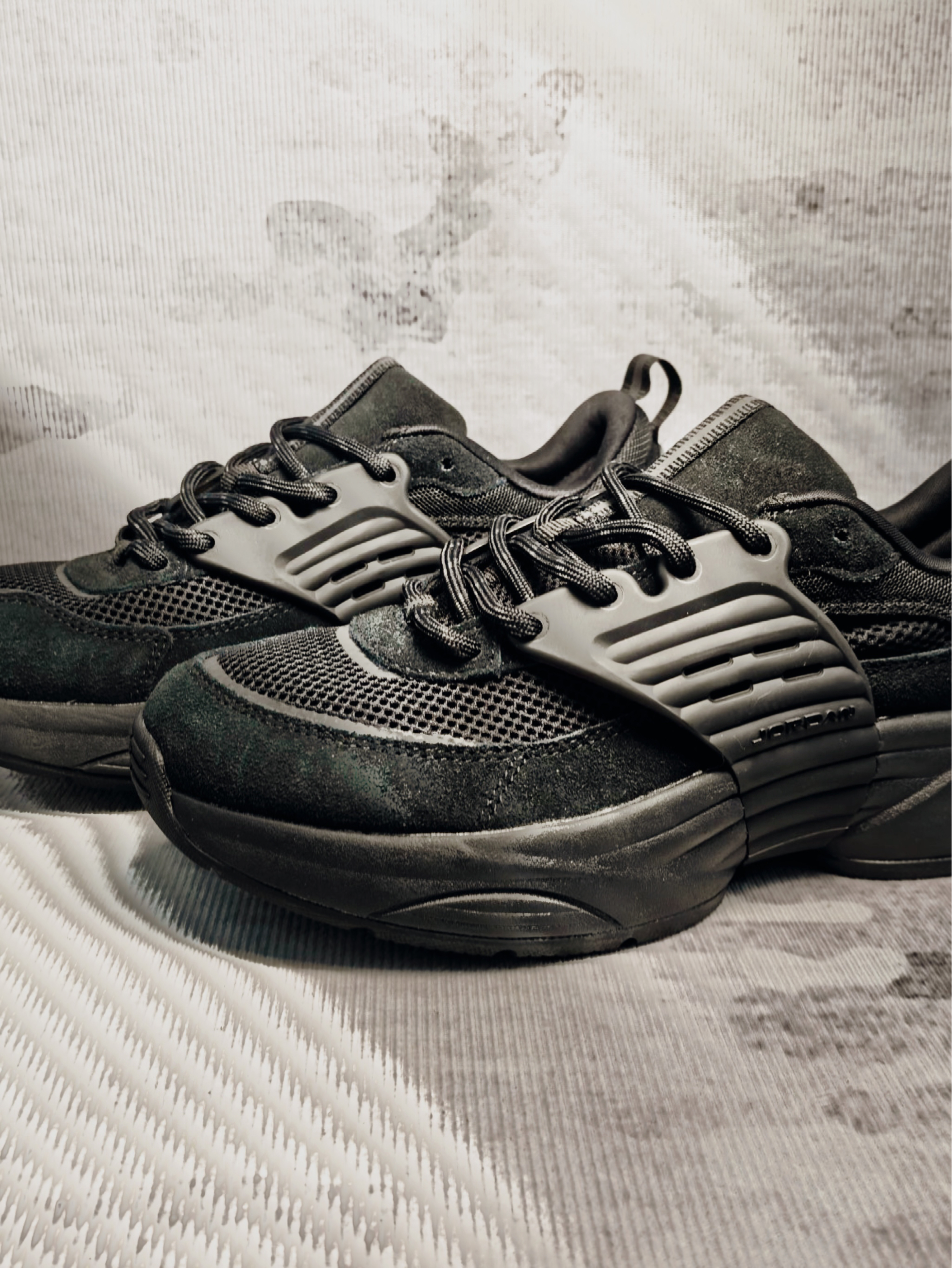 穿了这双 Jordan Trunner O/S 一段时间,最直观的感受就是“稳”。鞋面的网布和翻毛皮组合透气性不错,长时间走路脚不会闷。中底的 Cushlon 3.0 回弹比较柔和,日常步行的脚感挺舒适。 侧边的支撑翼能感觉到给中足带来一定包裹感,不过鞋身偏厚,夏天穿会稍微热一些。整体更适合城市通勤和日常出行,风格也比较容易搭。⚫👟