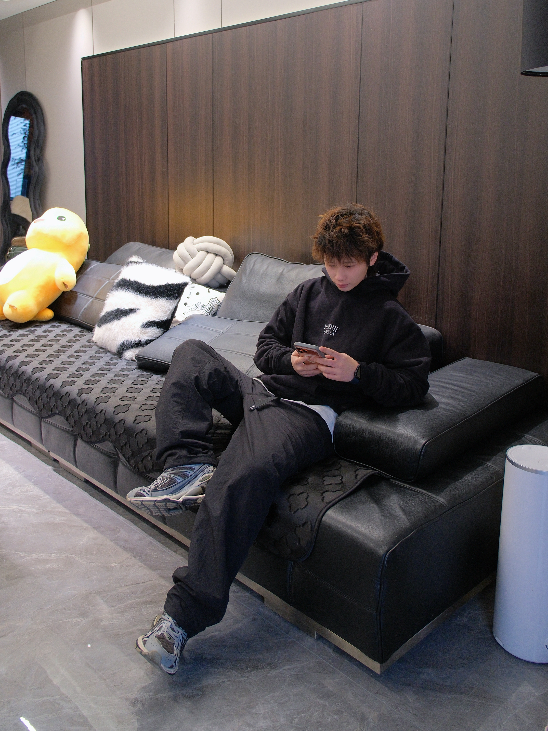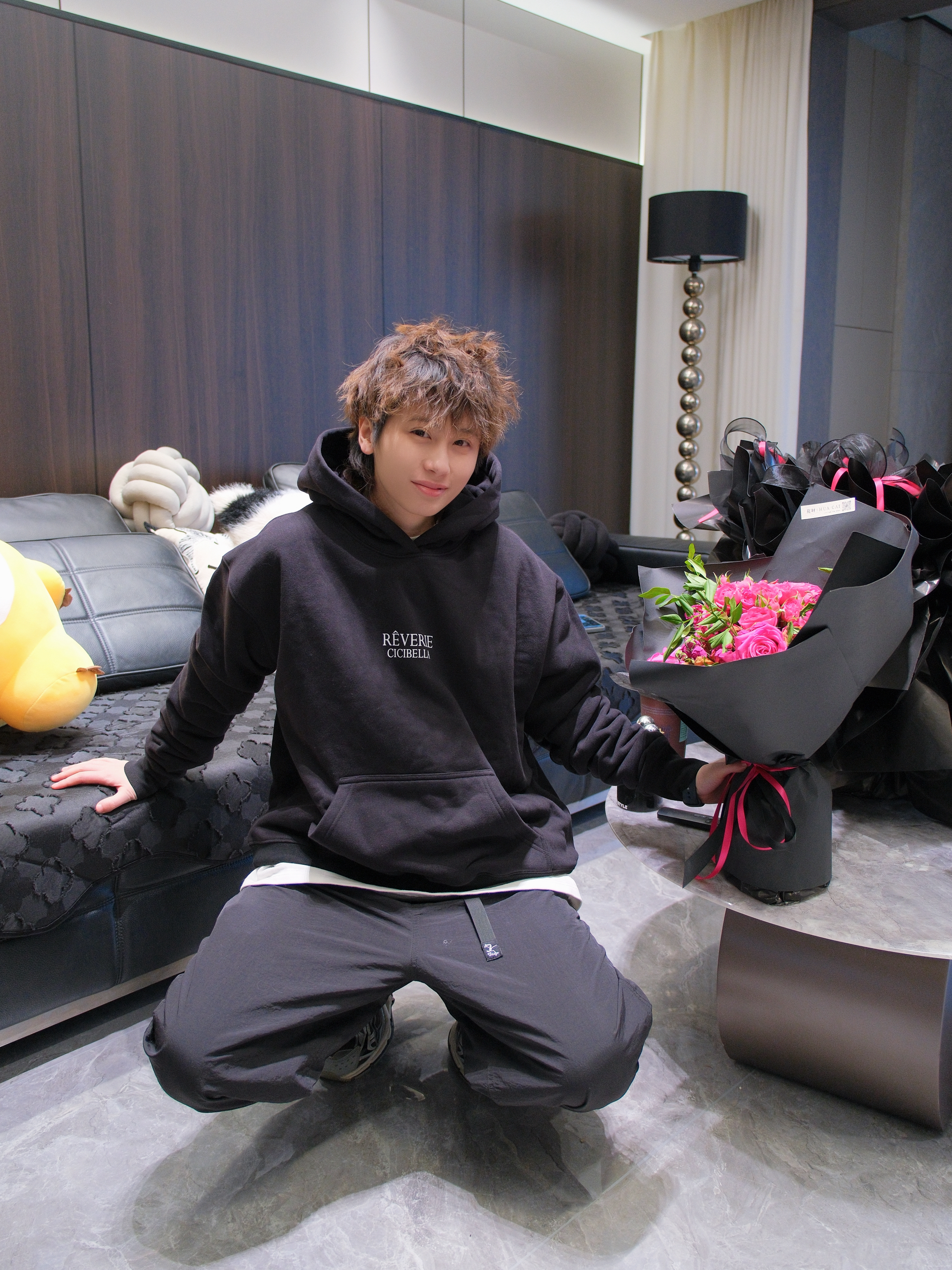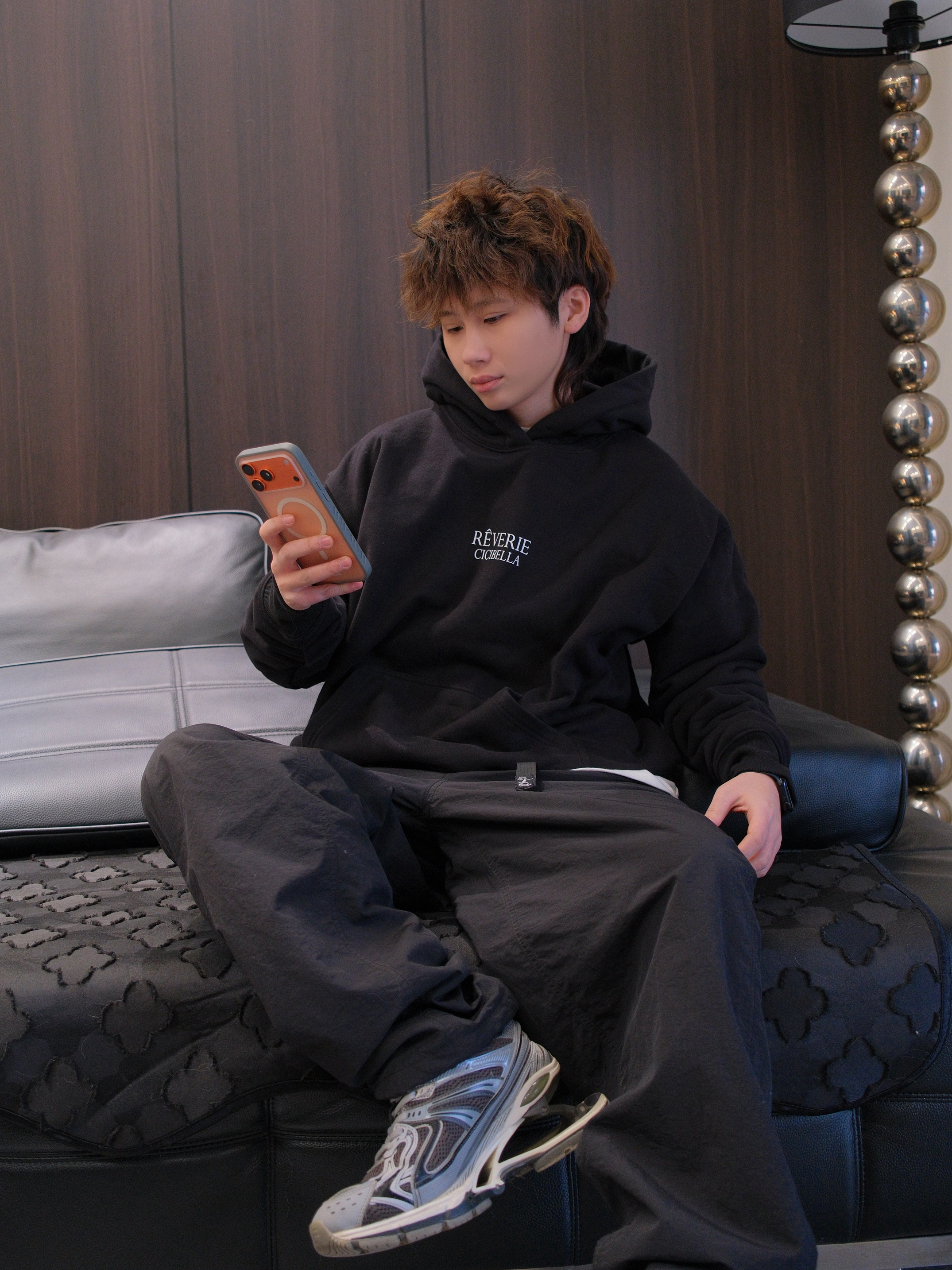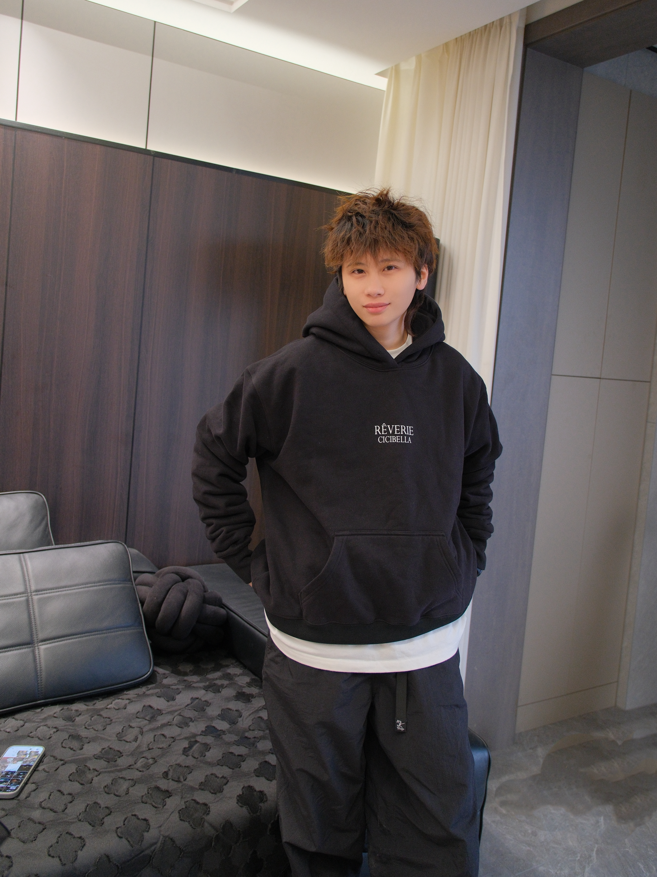 搞笑男突然营业,有一说一新发色太适合他了 今天来一套他的同款allBlack风格穿搭 黑色连帽卫衣搭配黑色运动裤和老爹鞋 胸口字母logo图案 给人一种简单干净的少年感 内里加绒设计也比较保暖 我这里叠穿了件白T,增加下层次感 尺码参考:163cm/46kg 上身S码