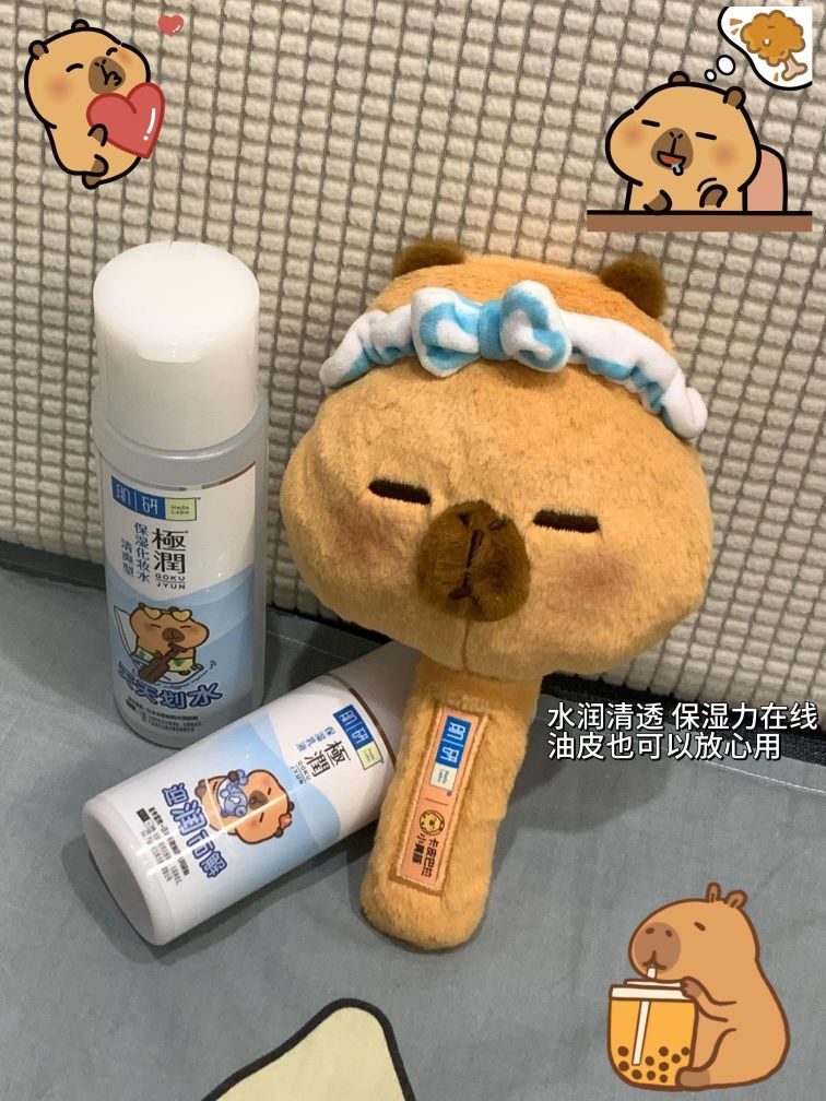 是谁拥有了肌研x卡皮巴拉小黄豚联名,原来是我🥰🥰🥰 我是混油买的清爽温和型的保湿水乳,抹开吸收很快,成分也很简单,痘敏肌也无压力。 还记得高中第一套护肤品就是肌研,那个时候每天做一些基础保湿,皮肤水润润的。现在用肌研还是很喜欢的程度,而且联名款的周边也太可爱了吧🥺🥺 简直是时代的眼泪,学生党福音,平价之王😭本来为了可爱的联名周边买的水乳