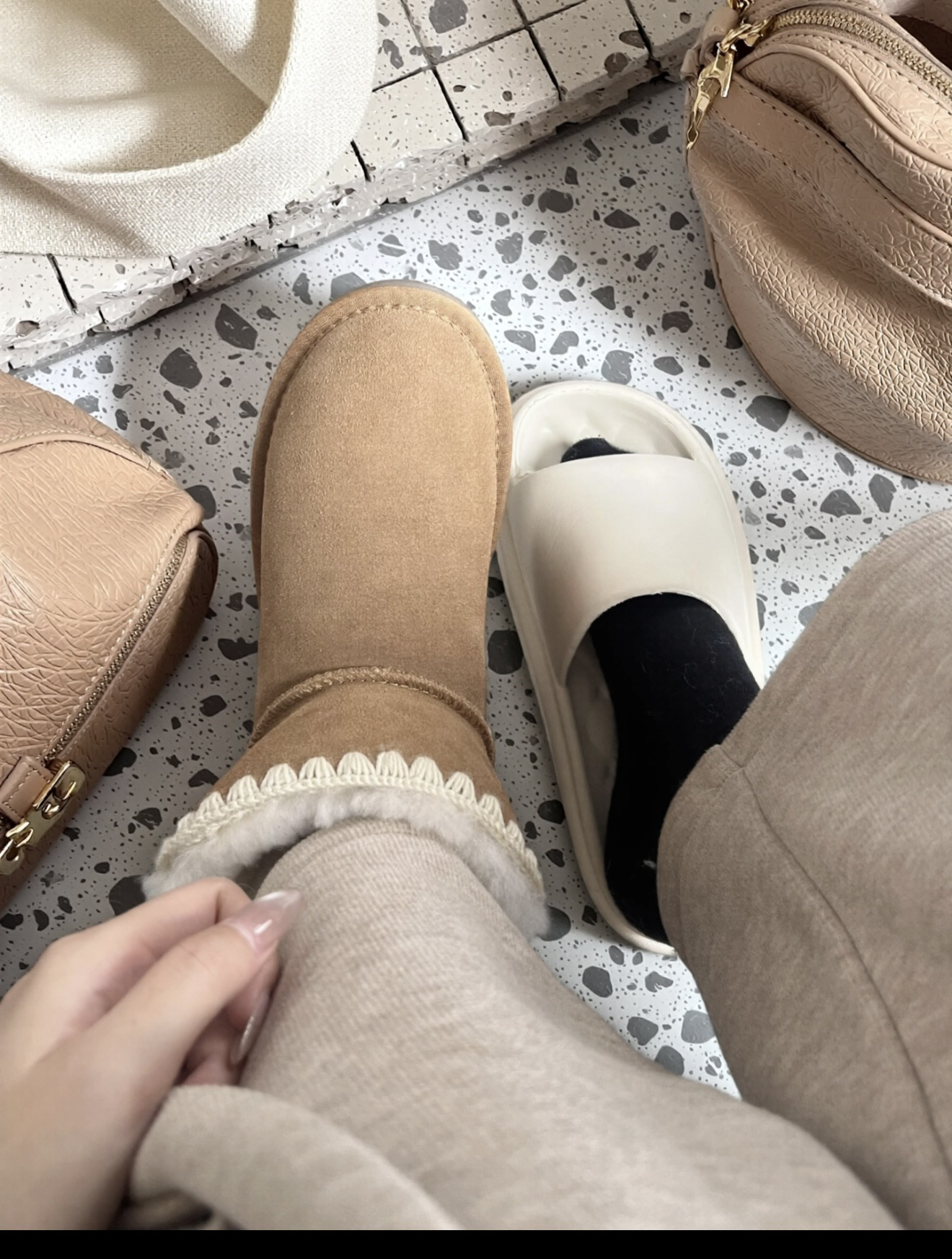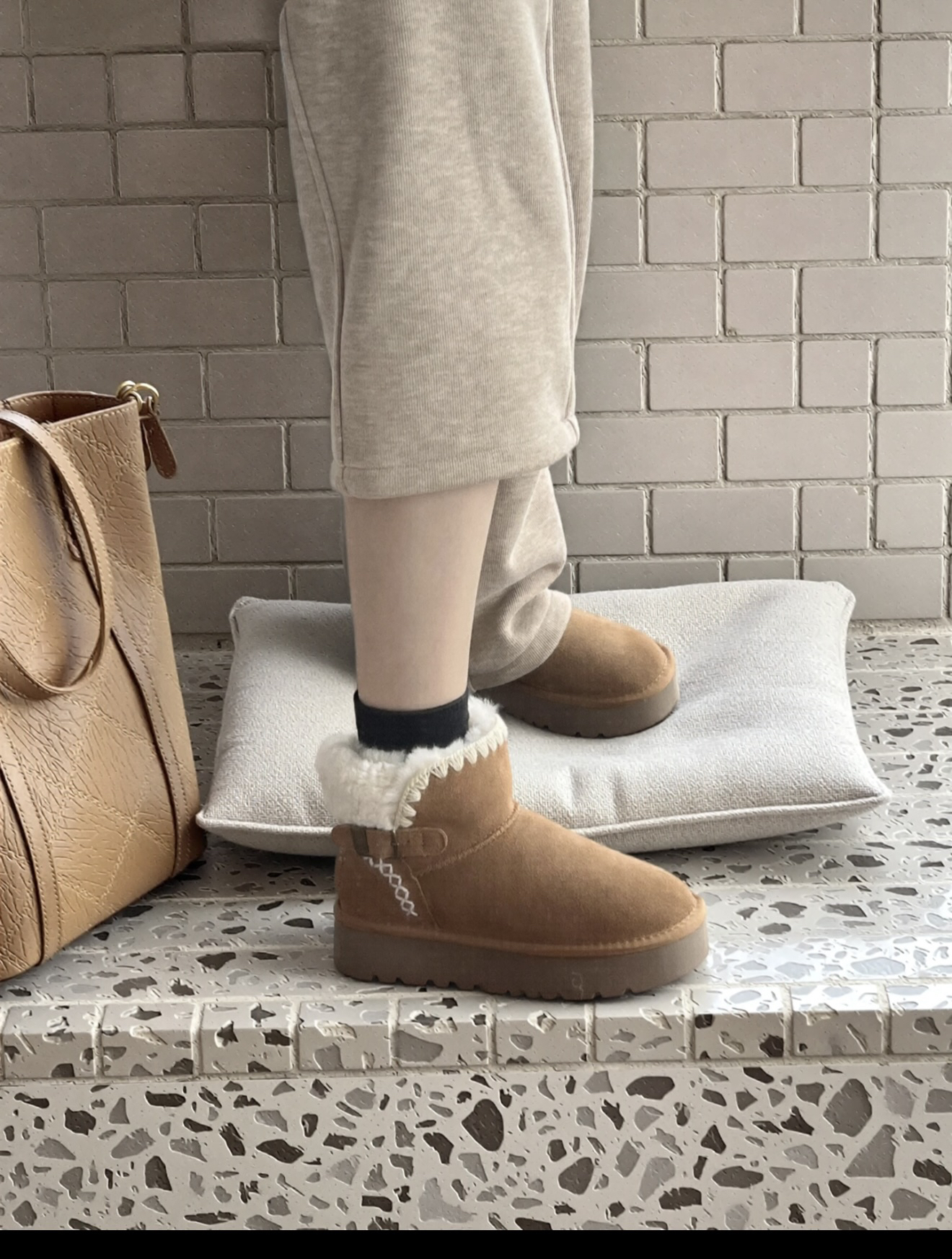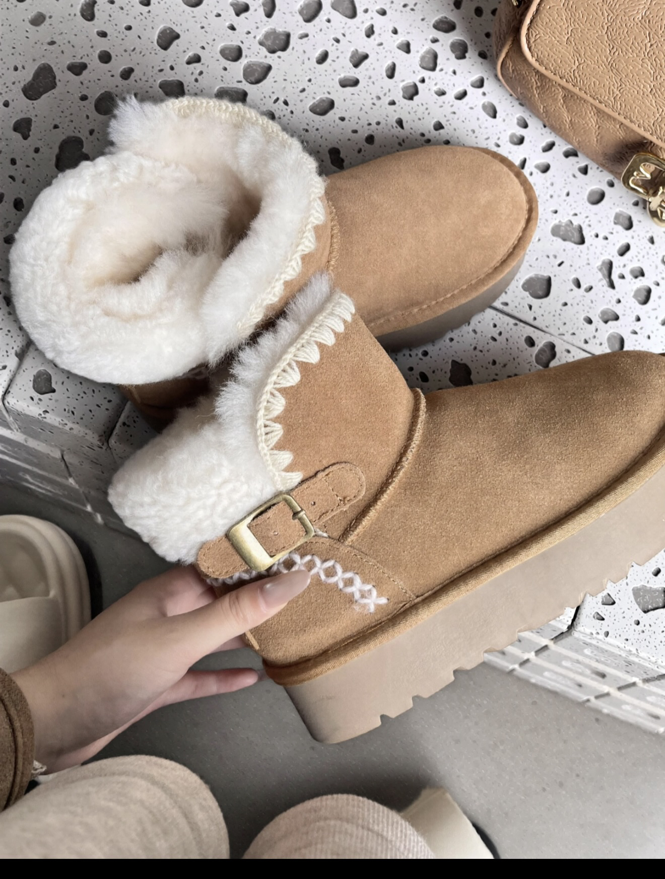 #今日份穿搭 #我的宝藏单品 #潮流生活记录 偷偷分享我俩的御寒小心机~ 我们入手了这款加绒短靴,软乎乎质感+毛茸茸的内里,脚踩进去像裹了团小太阳,金属扣和缝线细节满满!#冬季宝藏百搭雪地靴 快@你的闺蜜,一起解锁这份冬日暖系的默契穿搭,做寒风里的温暖搭子!#冬天不能没有雪地靴