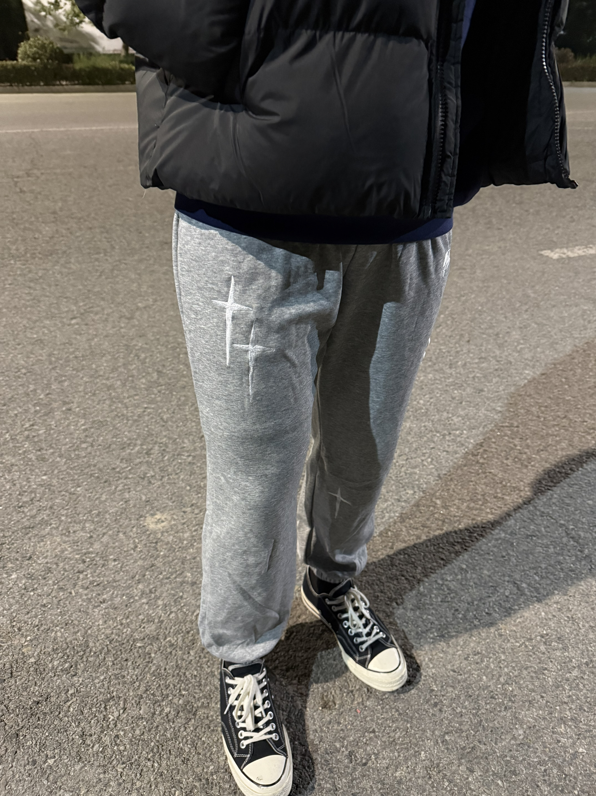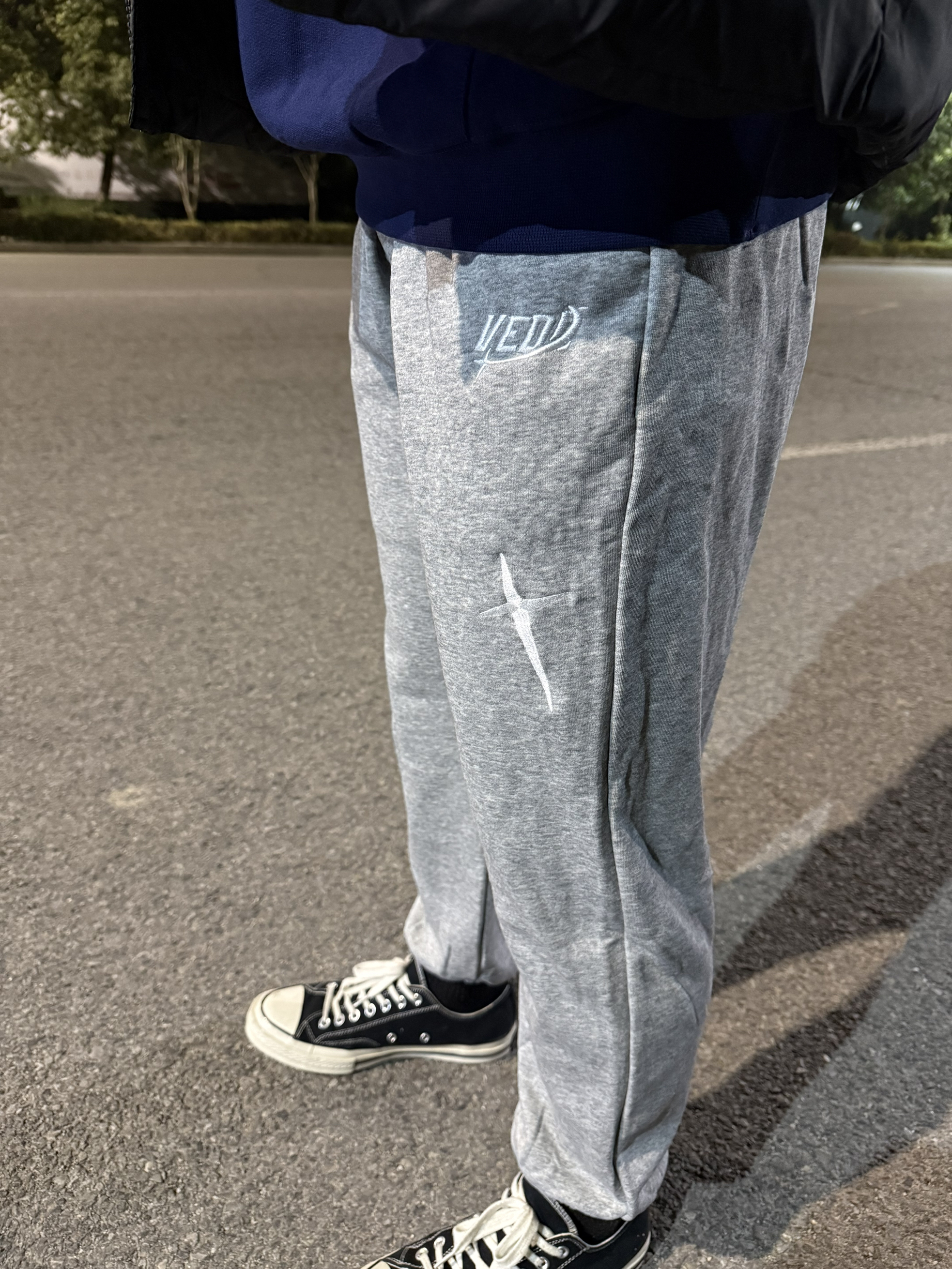 维动 VEIDOORN 耀影系列灰色卫裤,宽松直筒+束脚设计 包容腿型超显瘦! 棉质面料柔软透气,日常休闲或运动都OK 大腿白色十字架刺绣超有辨识度 细节满分松紧腰+容量口袋能装能塞 而且还是百搭款不挑人舒适又实用 搭配卫衣或者运动外套都很好看 日常通勤or运动都能穿🏃♂️ 美式街头风满满,性价比超高的一条裤子!
