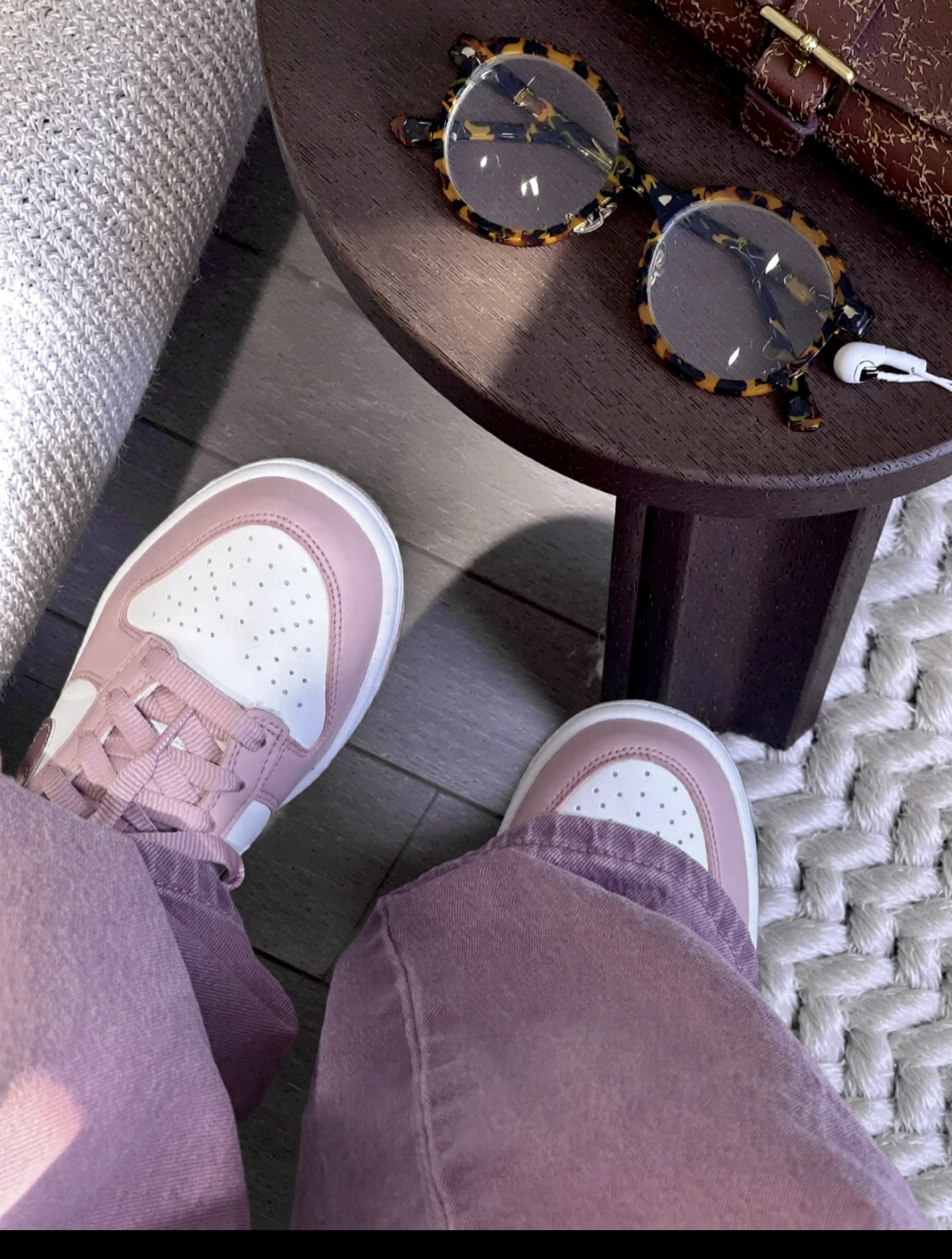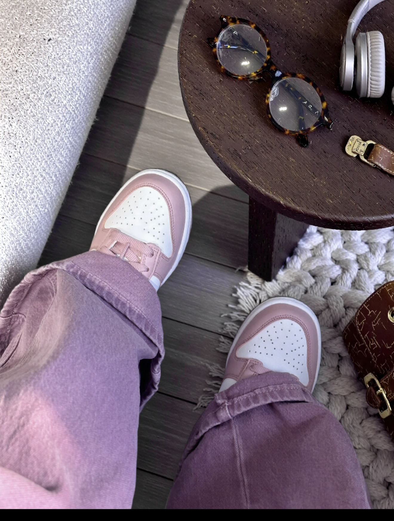 穿了半月的复古板鞋,粉白撞色越看越温柔,皮质鞋面质感在线,春秋单穿适配度拉满,搭配同色系紫粉阔腿裤,显腿长还能搭出层次感。鞋底软弹度刚好,日常逛街暴走也不累脚。要注意浅粉色容易留划痕,得小心别剐蹭~鞋舌的红色 Nike Logo 复古又吸睛,是细节控一眼爱上的点。 #甜妹板鞋就穿这双 #Nike开箱 #粉色系鞋子yyds #Dunk低帮板鞋 #甜妹板鞋就穿这双
