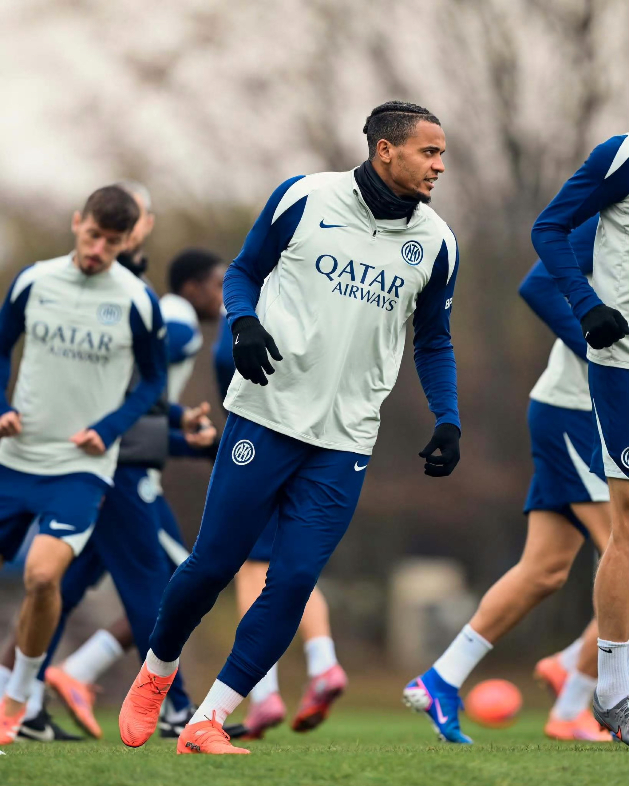 国际米兰球员身着蓝白拼接训练服展开备战,球员射门时的摆腿动作干脆利落,热身跑时的团队阵型整齐,对抗冲刺环节更是拼劲十足,哪怕是戴着绒线帽的射门训练,也尽显蓝黑军团对细节的打磨。蓝白训练服在绿茵场勾勒出球员的飒爽身姿,每一个训练瞬间,都是国米冲击意甲和欧冠荣誉的铺垫~#国际米兰 #国米训练 #意甲备战