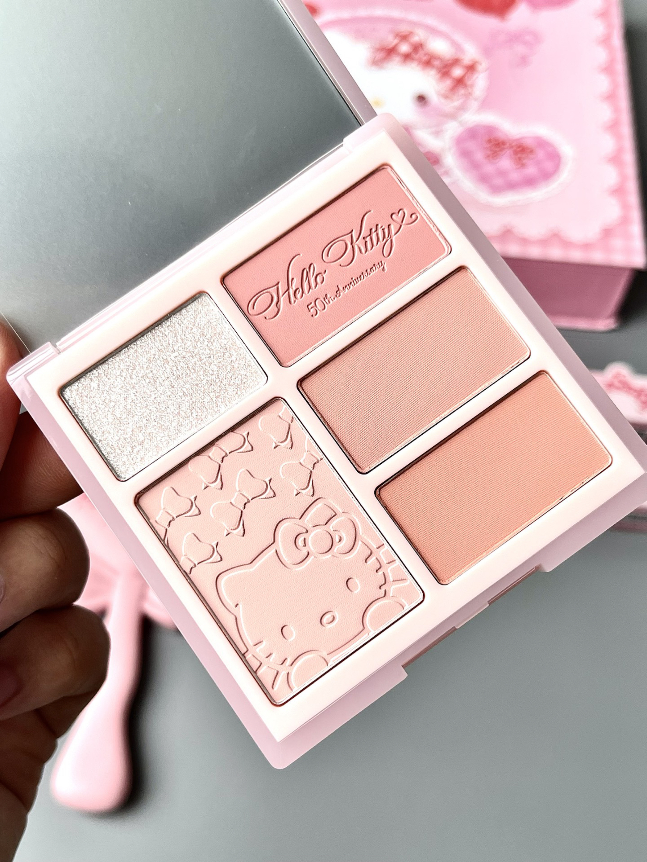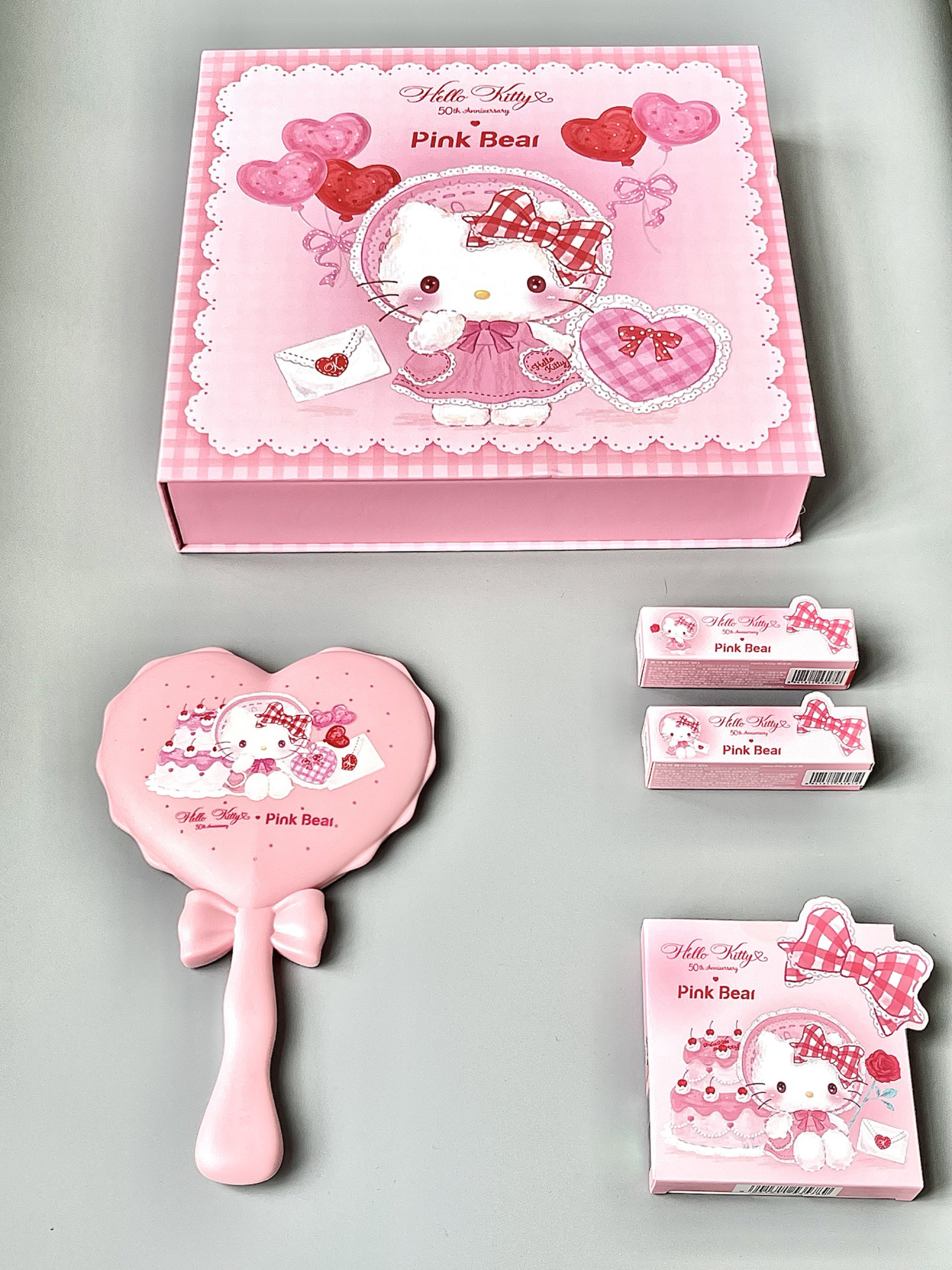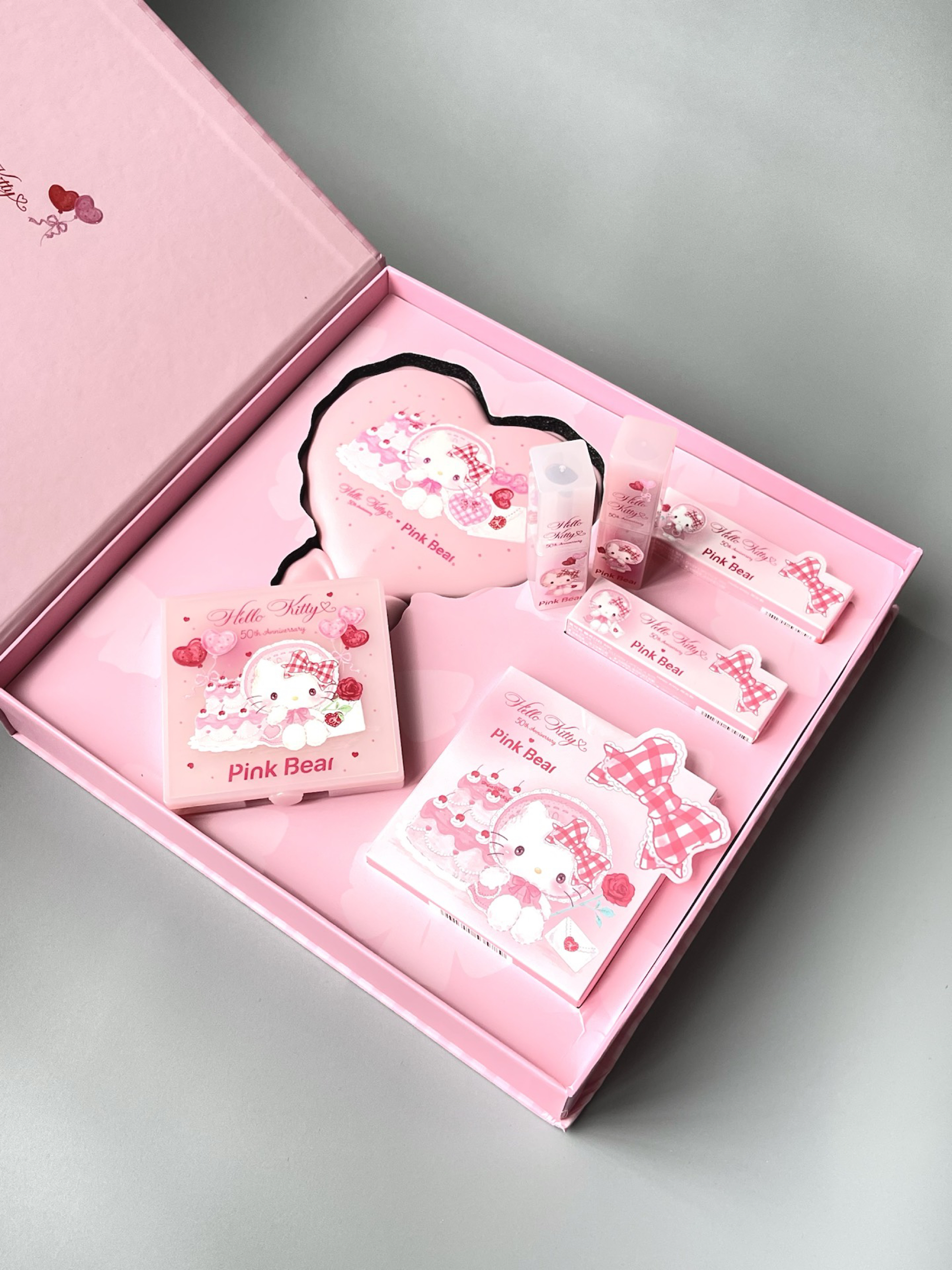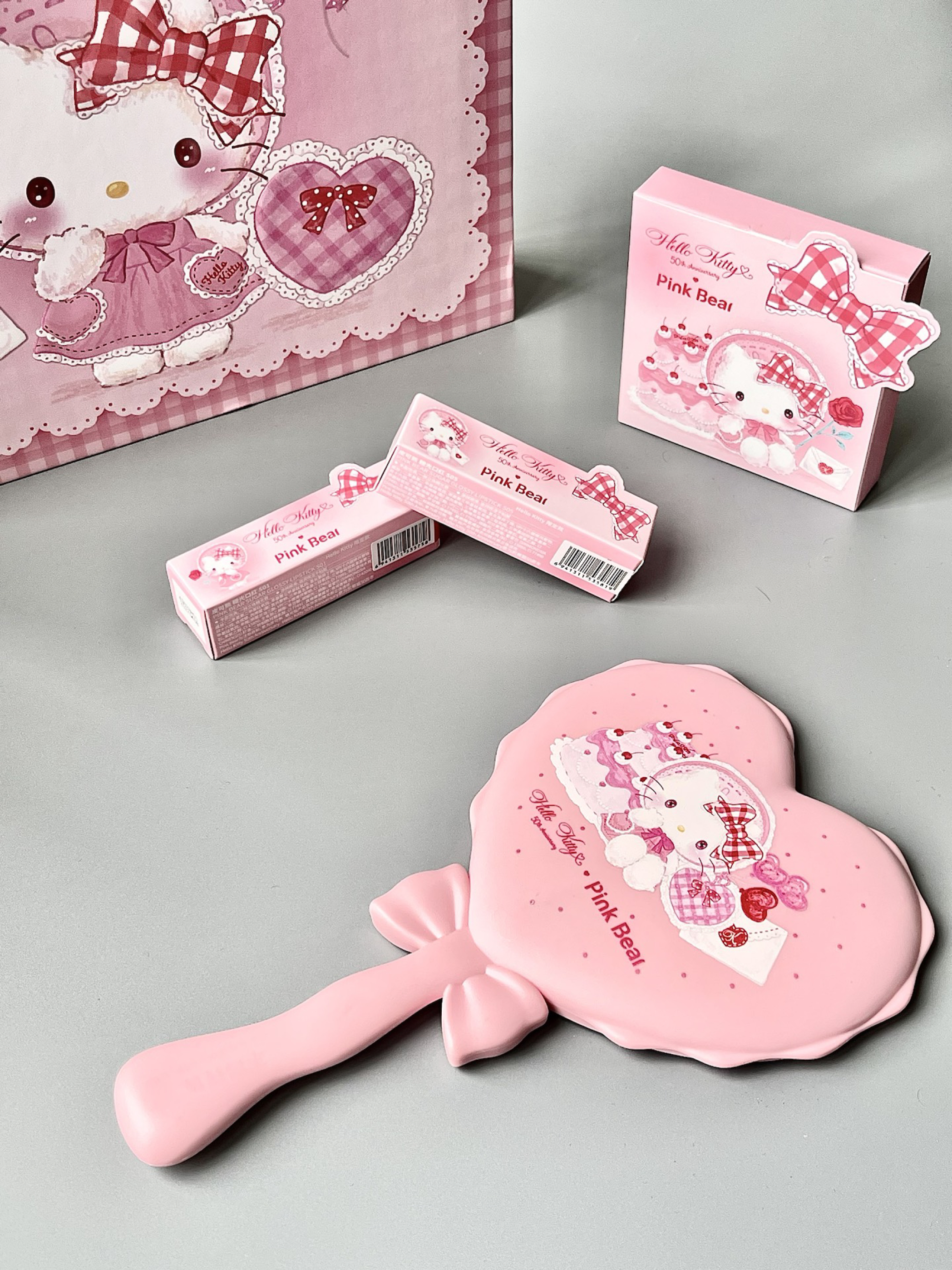 pink bear ✖️ Hello KItty联名礼盒真的太懂女孩子啦 一个跟魔仙棒一样的“小”呃...“大”化妆镜真的太赞啦 blingbling的眼影盘 和QQ润润的口红 女朋友来了都得立正 端午提粽子我提Hello Kitty