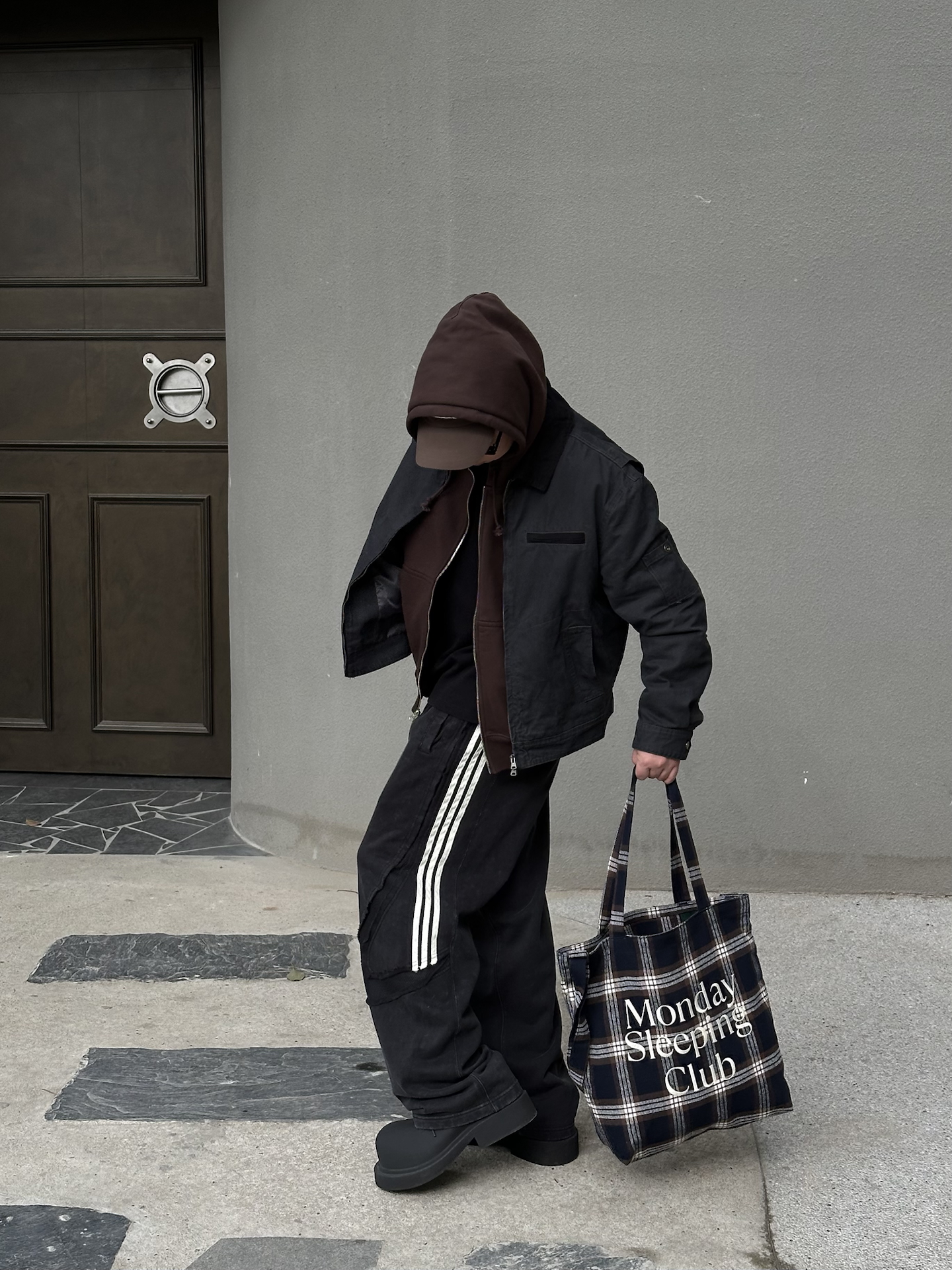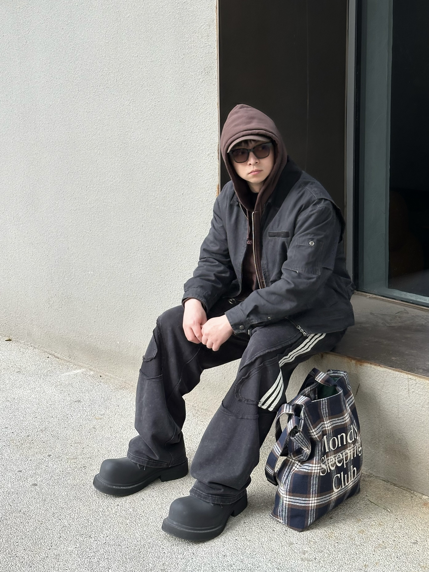 哈喽👋🏻大家好哇 这里是🪨石地夫的穿搭小日记📝 - 今天出门穿了 #MADE EXTREME 黑色底特律夹克 叠穿了适合秋冬配色的nike x styssy棕色卫衣☕️ 不仅保暖有了,层次感也max✨ 短款版型➕thug x adidas的阔腿裤,上短下长 身材比例一下子被拉长了👏🏻 脚上搭配 #Balenciaga 德比米奇马丁靴酷感十足🆒 #再冷也要搞穿搭 #冬日叠穿法则 #一件摆脱路...