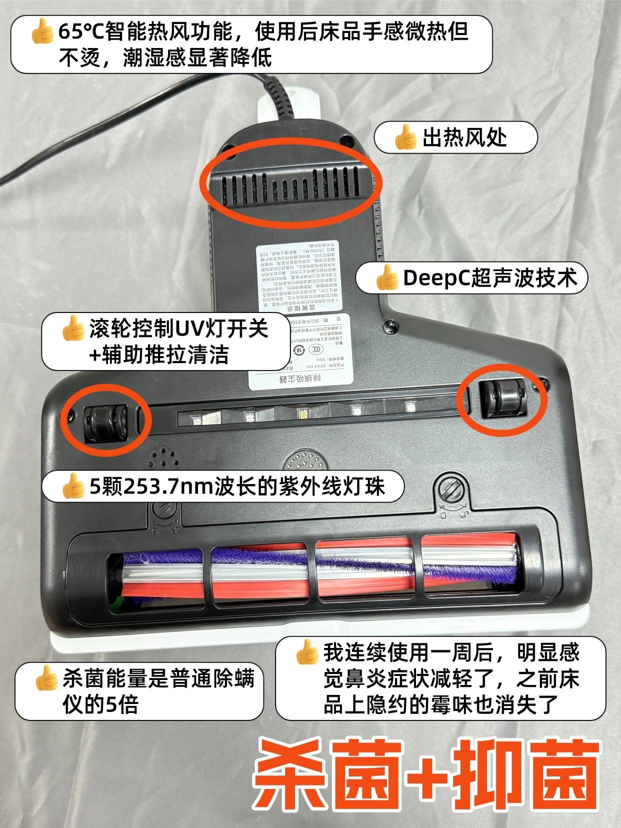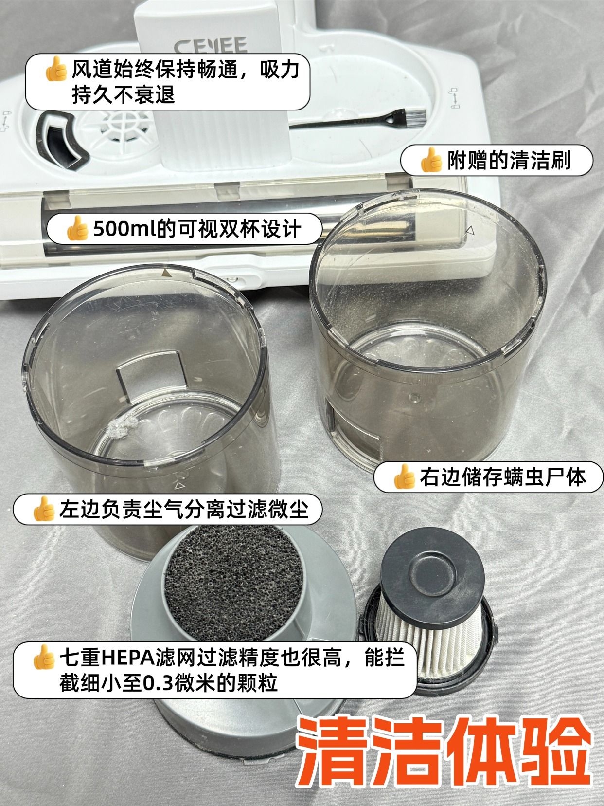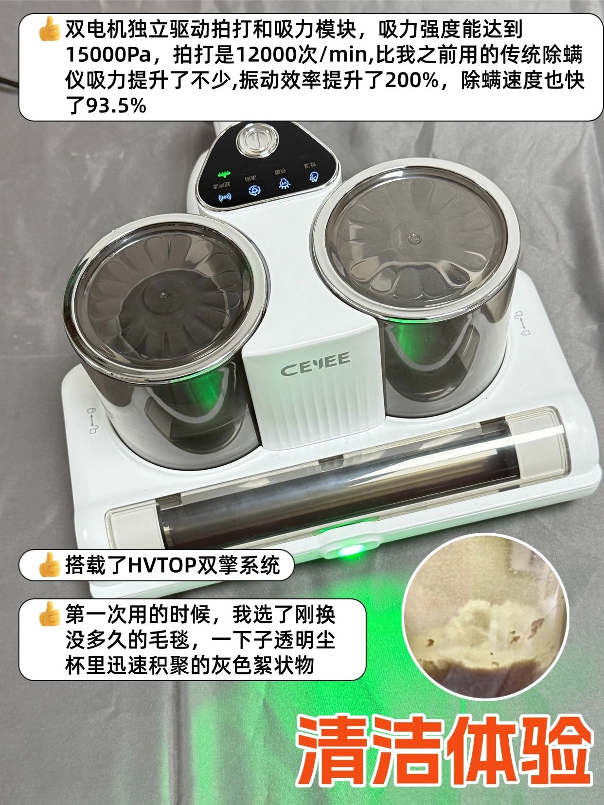 家里有猫的真的懂,床上、沙发上每天都是毛+看不见的螨。之前也试过普通吸尘器,说实话,吸毛还行,但除螨效果很一般。后来换了希亦 RM1 除螨仪,才发现差别真的挺大。 先说最直观的,吸力是真的猛。每次吸床垫,尘杯里那一层灰絮和细粉,看着就头皮发麻,说明以前是真的没吸干净。拍打力度也够,不是走个过场那种,床垫按下去能明显感觉到震动,螨虫更容易被拍出来。 再一个是用着不累。机身不算重,单手操作没压力,来...