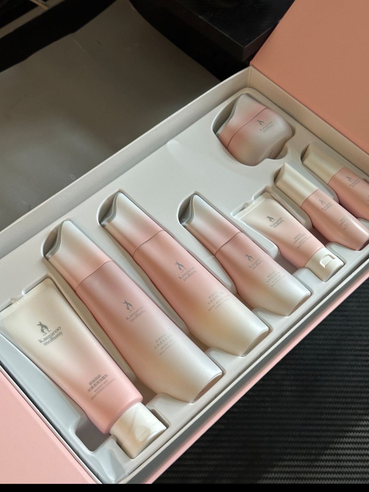 熬夜皮肤暗沉 真的很需要一套适合自己的护肤品 自己也是minmin 肌这个一套 里面有水,乳液,精华和面霜 还有小样 水乳真的吸收很快 没有黏腻感 用完皮肤真的会提亮很多 连续用几天感觉脸颊透亮不少 熬夜后的黄气也淡了~ 是那种从皮肤底子里透出来的干净光泽 现在素颜出门都敢出门了 而且这个袋鼠妈妈是为孕妈妈准备的 成分很安全放心 礼盒包装高级又精致 趁着圣诞和新年送给女孩子真的不错 ...