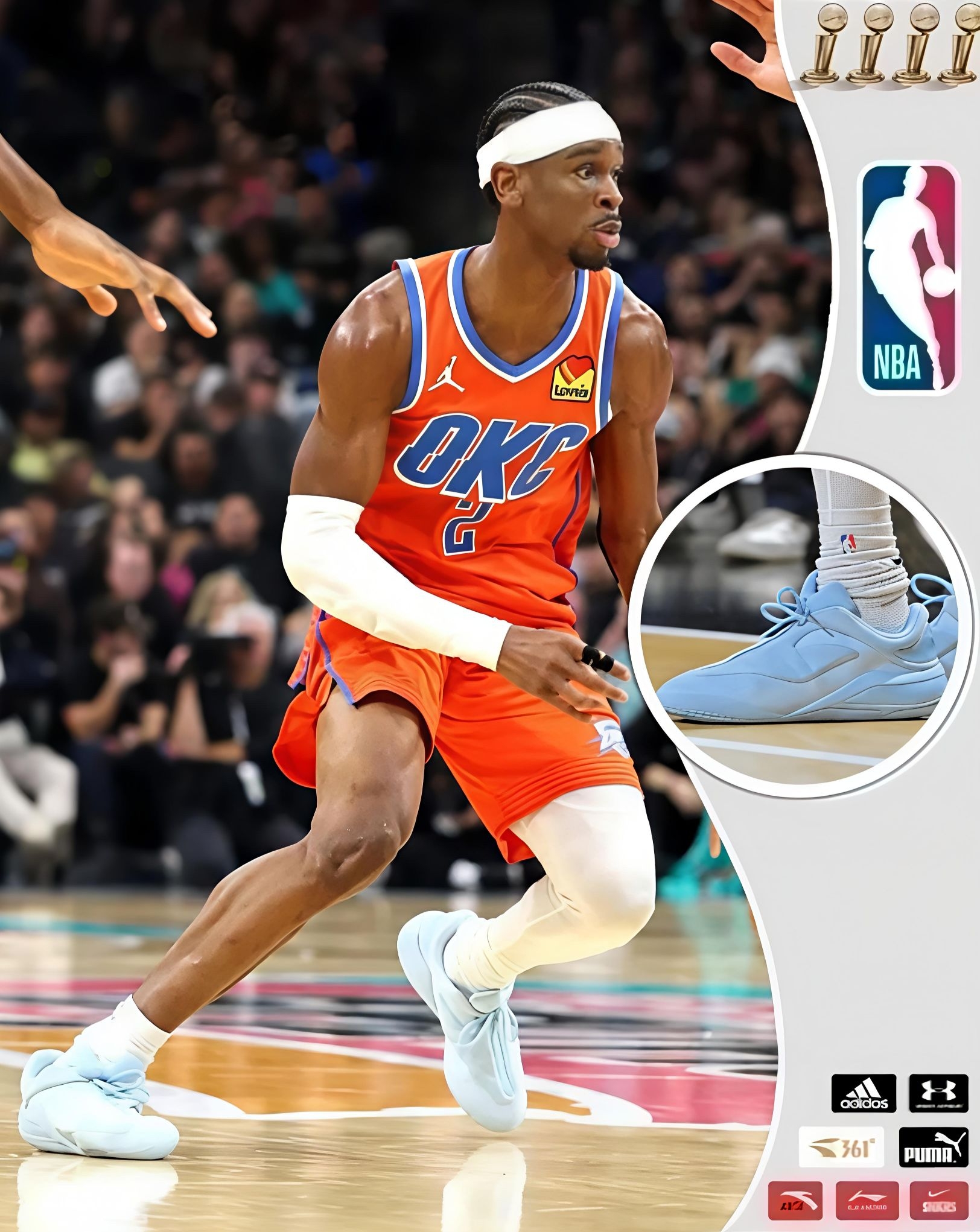 本篇笔记关联了Jordan Brand/乔丹 霍姆格伦 俄克拉荷马雷霆队 7号球衣 橙、Converse/匡威 Shai001 SGA一代 亚历山大 后卫 实战 耐用 篮球鞋 蓝色等商品,为用户提供真实的使用体验和购买参考。