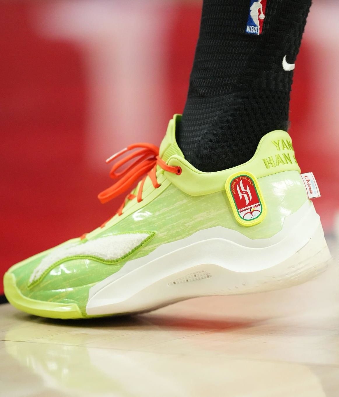 开拓者对魔术的常规赛,106-110惜败有点可惜,不过杨瀚森替补登场的8分钟里,1投1中还罚进2球,拿下4分2篮板2助攻1抢断1盖帽的全能小数据,作为新秀算是稳扎稳打了。 场上第一眼就被他脚上这双圣诞配色的李宁驭帅20吸引住了,设计灵感是平安果也太有巧思了!鞋面用精油印刷做出的苹果质感很逼真,毛绒的logo又透着节日的软糯感,后跟“Hansome's Fruit Shop”的标签更是把专属感拉...