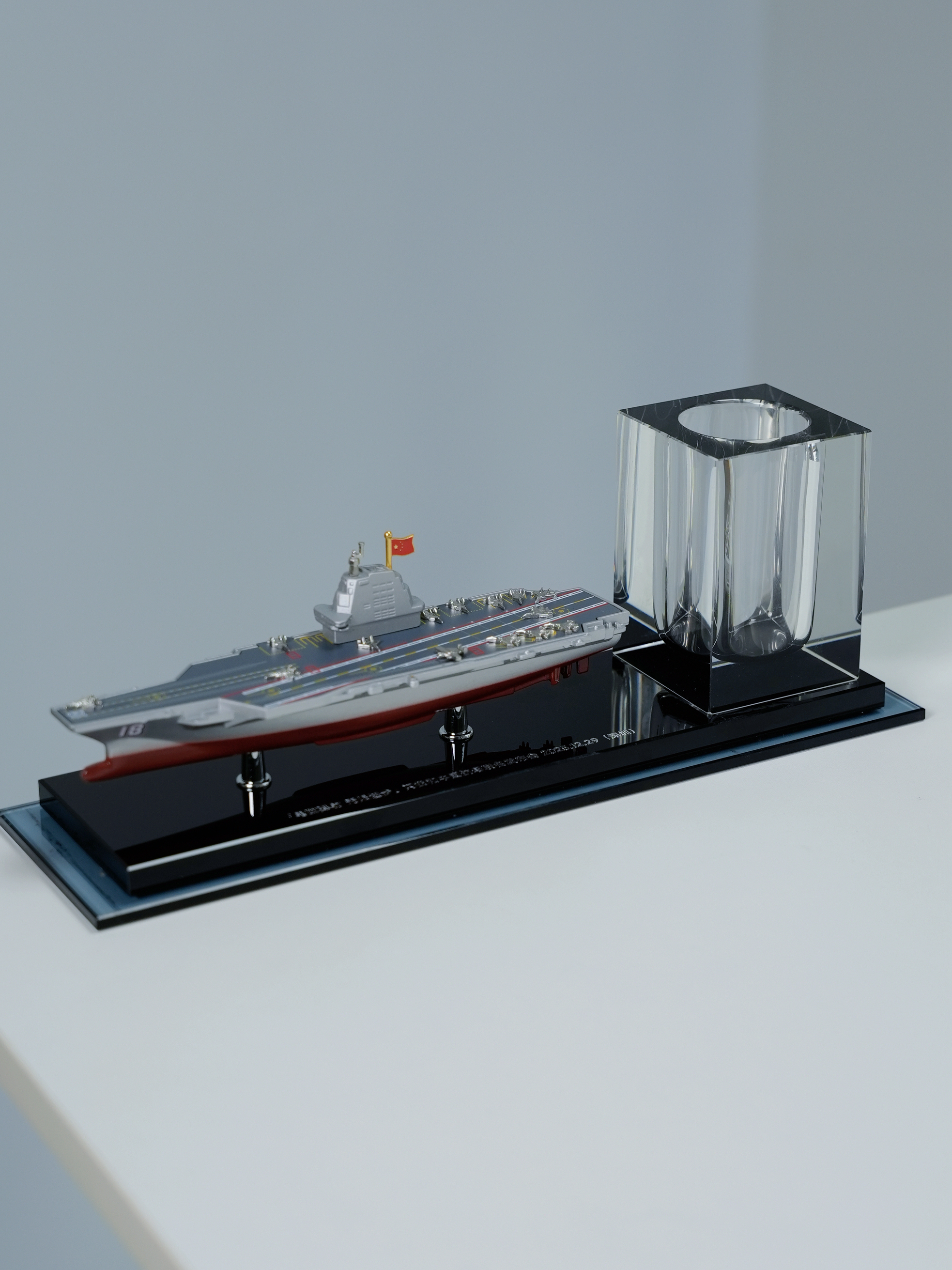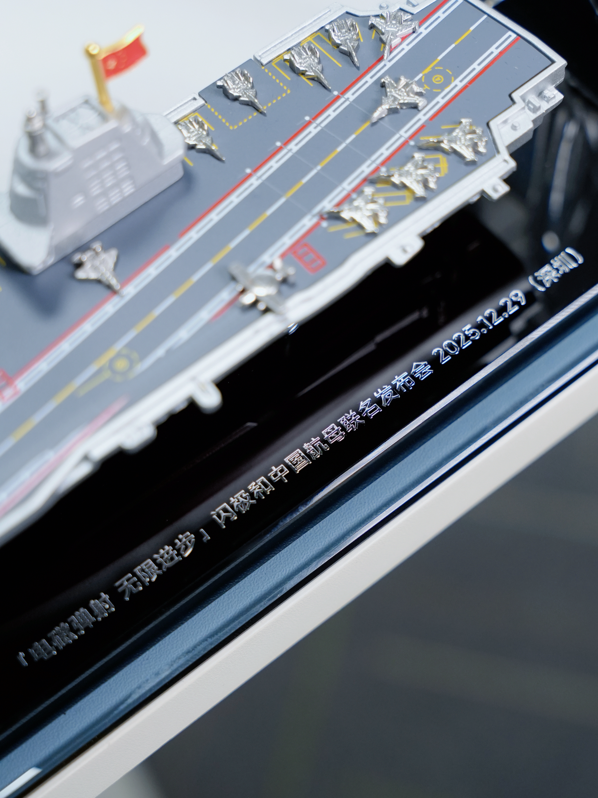 闪极这个发布会邀请礼盒真的很硬,这是我们的国产航母福建舰队,末端有一个笔筒,真的很有创意。 还有名字既然叫电磁无限,弹射进步,我猜测磁吸充电宝要上新,而且据说还会有新AI眼镜,值得12月29日线上发布会好好看看。
