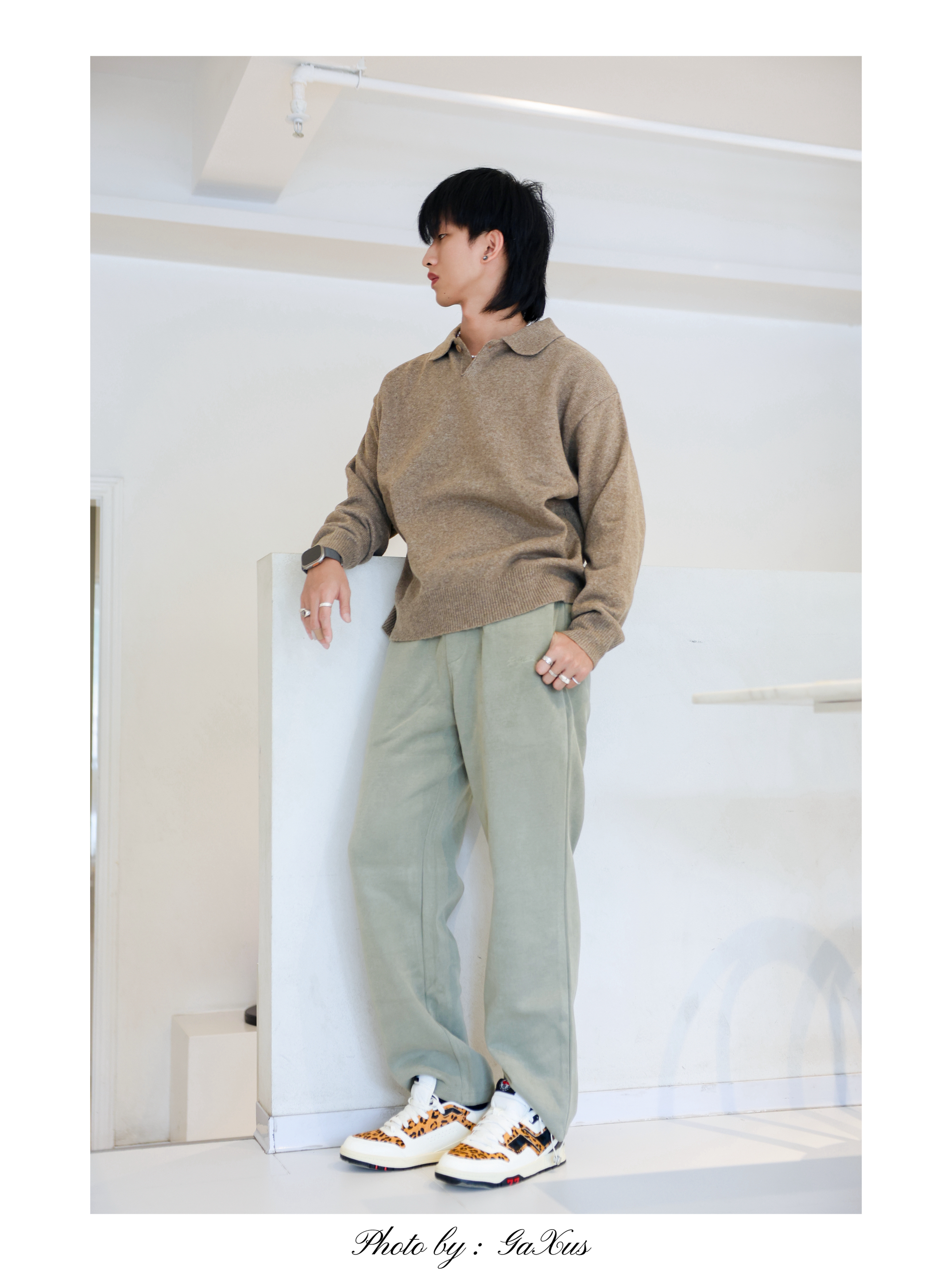 Yo wassup🤞🏻 这里是希望世界和平的Ga🕊️ bodydream翻领毛衣,拿捏老钱风静奢调调。 高智落肩袖版型,polo领设计衬出宽松休闲的松弛感。 下身搭同牌美式伞兵裤,直筒工装剪裁 裤型宽松不压身,和毛衣的古早质感呼应得刚好合拍 脚下踩双豹纹板鞋点缀,细节处盘活整套穿搭层次 老钱风穿搭这么搭,古早味的腔调拿捏得相当到位