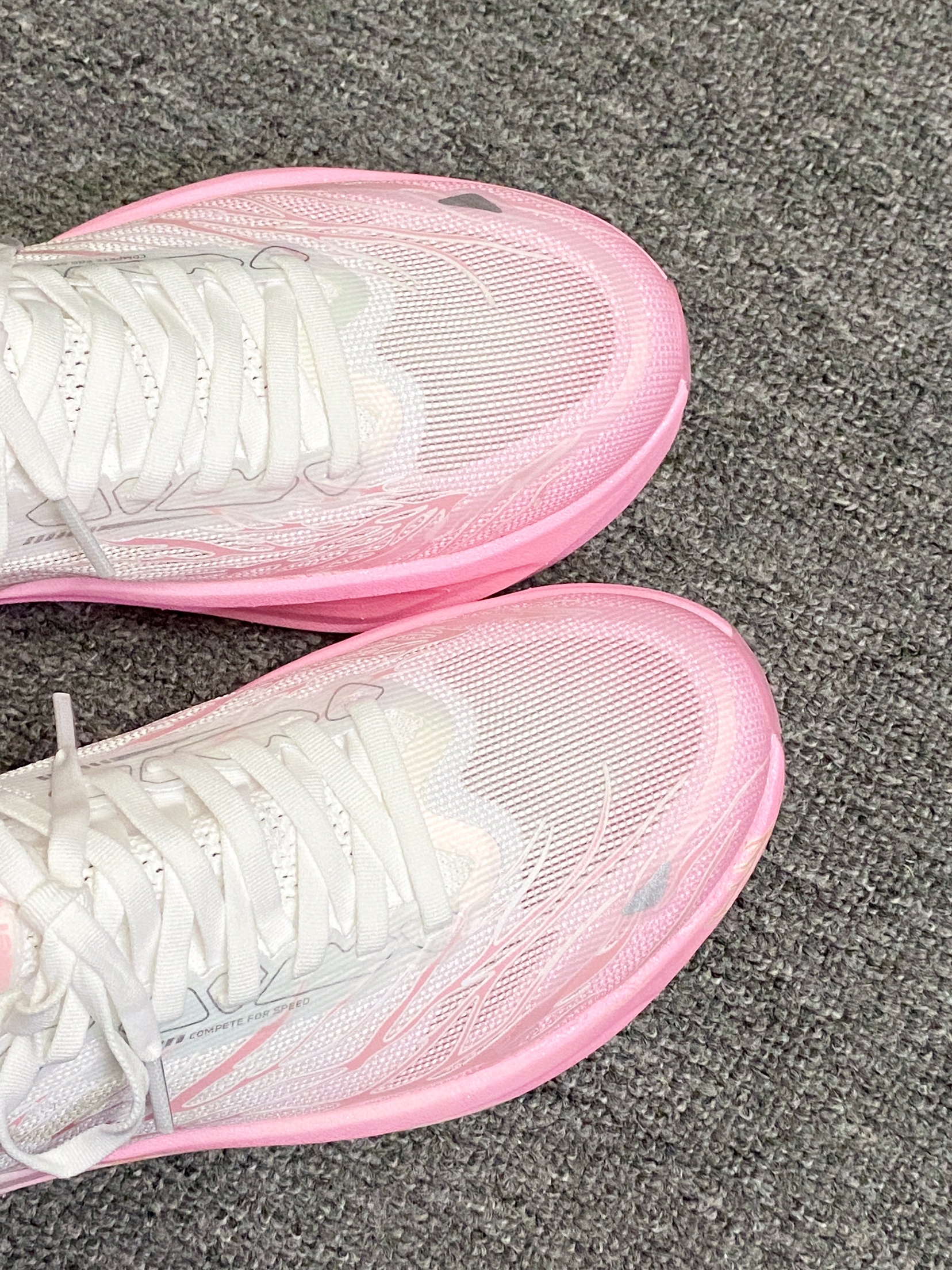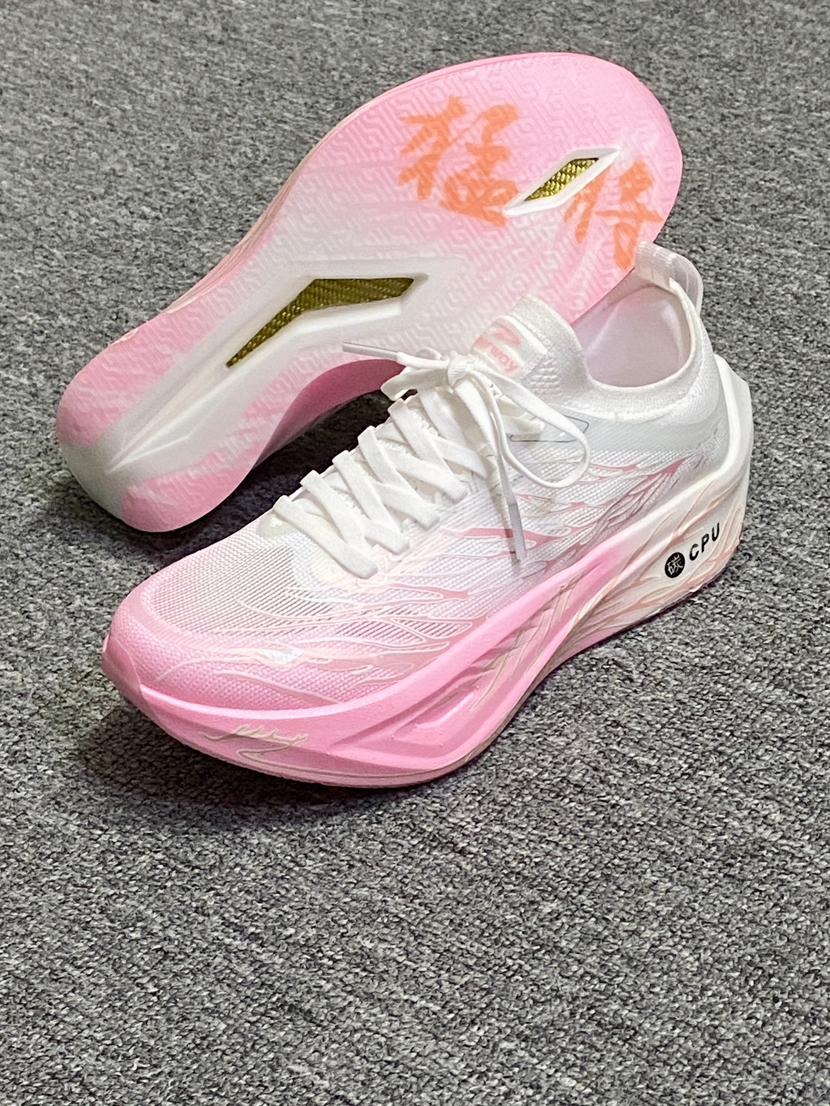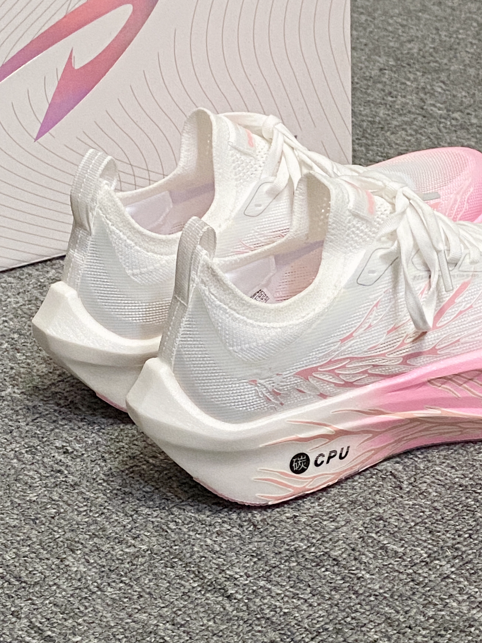我宣布!!秋冬跑鞋就选这双了~ 渐变粉白是心动的配色!蛮吸晴✨ 上脚的初脚感偏韧弹 跑了几次踩开后脚感会好些 大厚底的缓震踩着觉得很弹 内置的黄金全掌碳板 起跑蹬地的推进力感觉蛮强 自带夜光设计✨✨酷炫的嘞!! 日常跑步🏃🏻♀️还是体考体测都可以!
