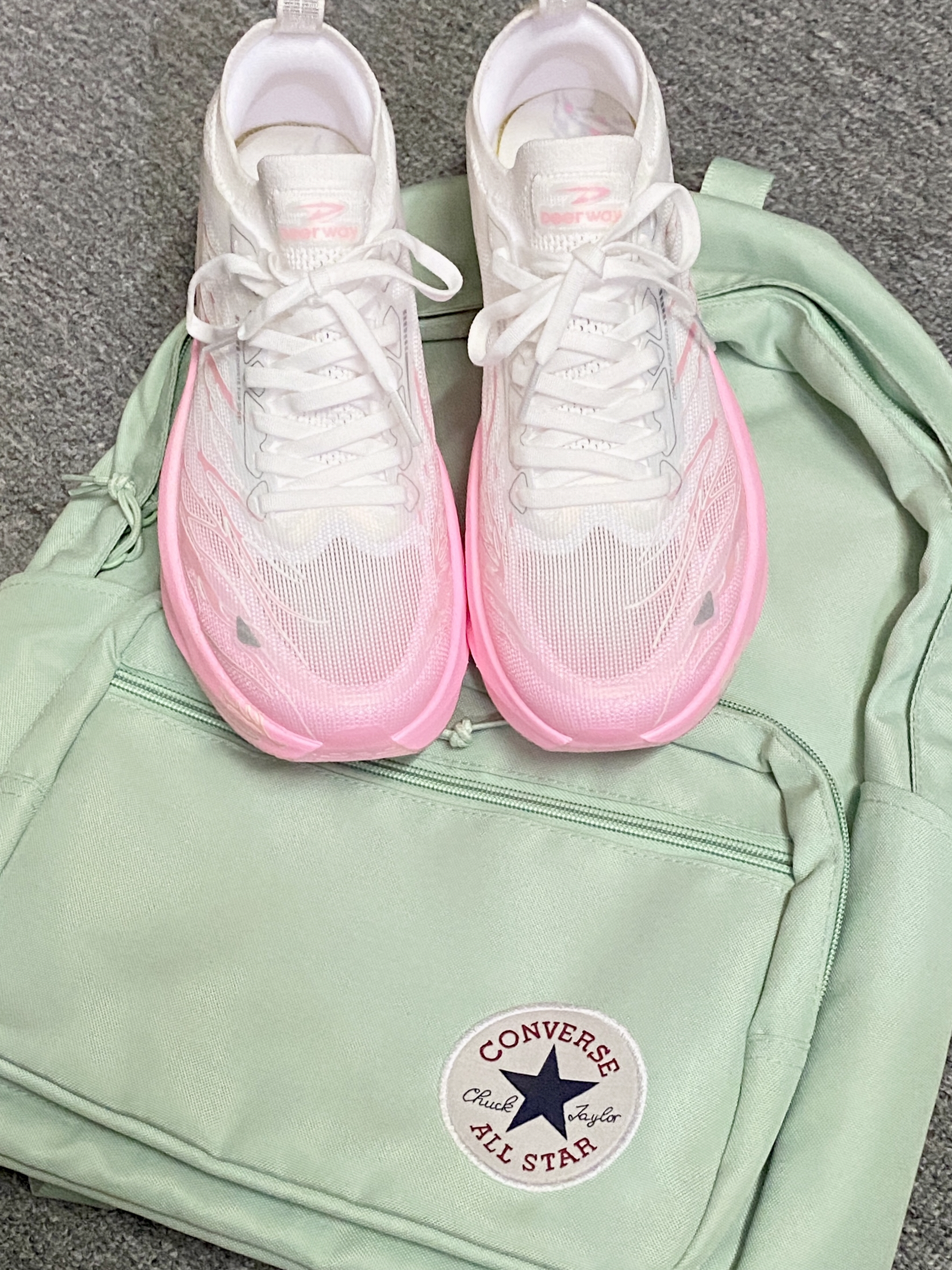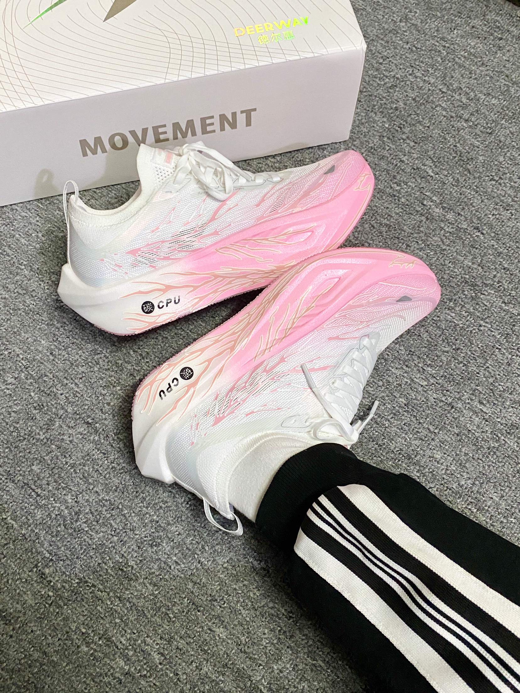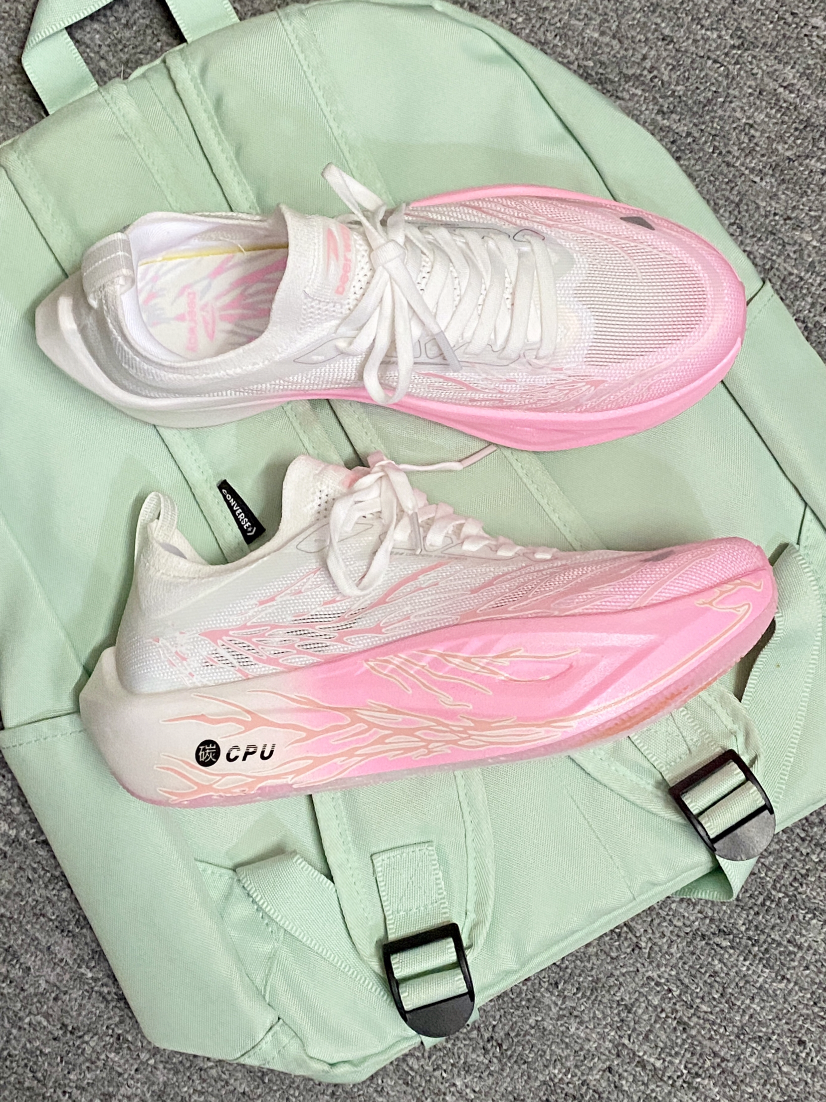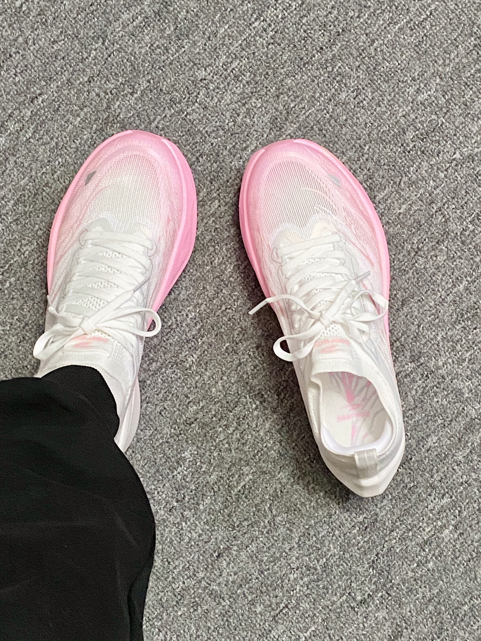 我宣布!!秋冬跑鞋就选这双了~ 渐变粉白是心动的配色!蛮吸晴✨ 上脚的初脚感偏韧弹 跑了几次踩开后脚感会好些 大厚底的缓震踩着觉得很弹 内置的黄金全掌碳板 起跑蹬地的推进力感觉蛮强 自带夜光设计✨✨酷炫的嘞!! 日常跑步🏃🏻♀️还是体考体测都可以!
