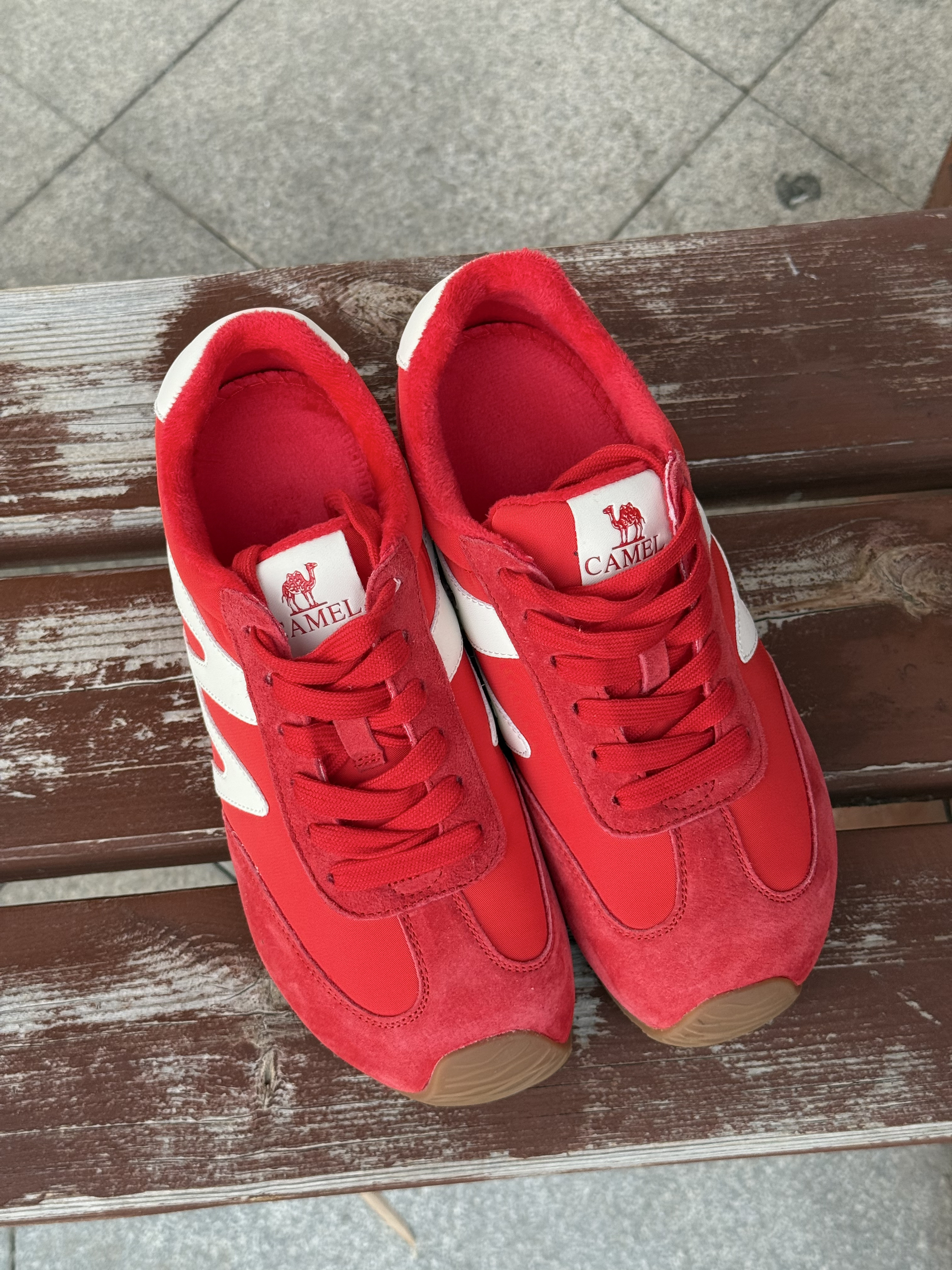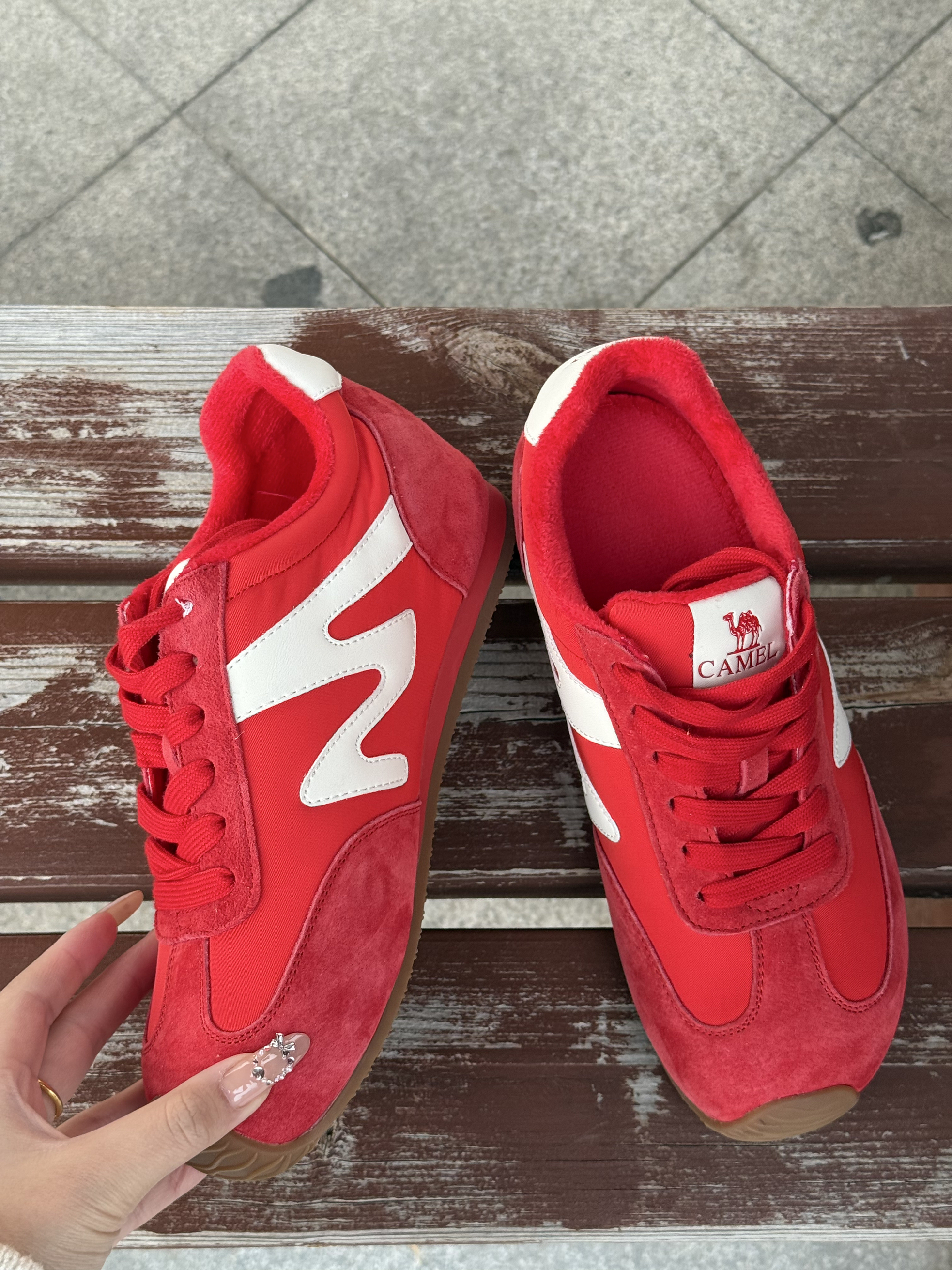 红色超正!上脚巨显白,厚底设计悄悄增高还不累脚,秋冬搭卫衣、裙子都超好看,骆驼这款德训鞋真的挖到宝了! 实物比图片还惊艳的红鞋,加绒款保暖又舒服,鞋型很秀气,走路一点不磨脚,已经安利给闺蜜啦~ 真的喜欢!!