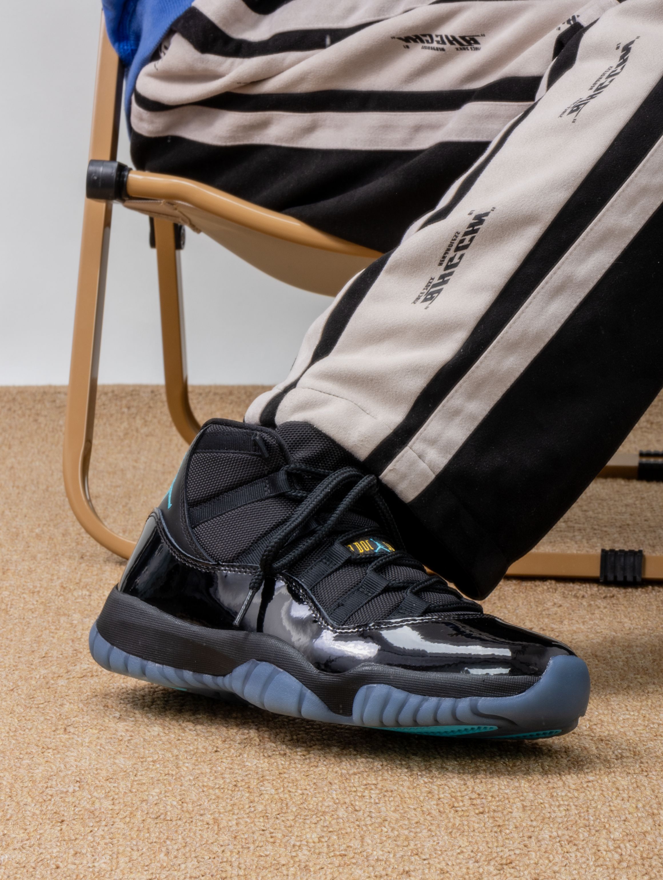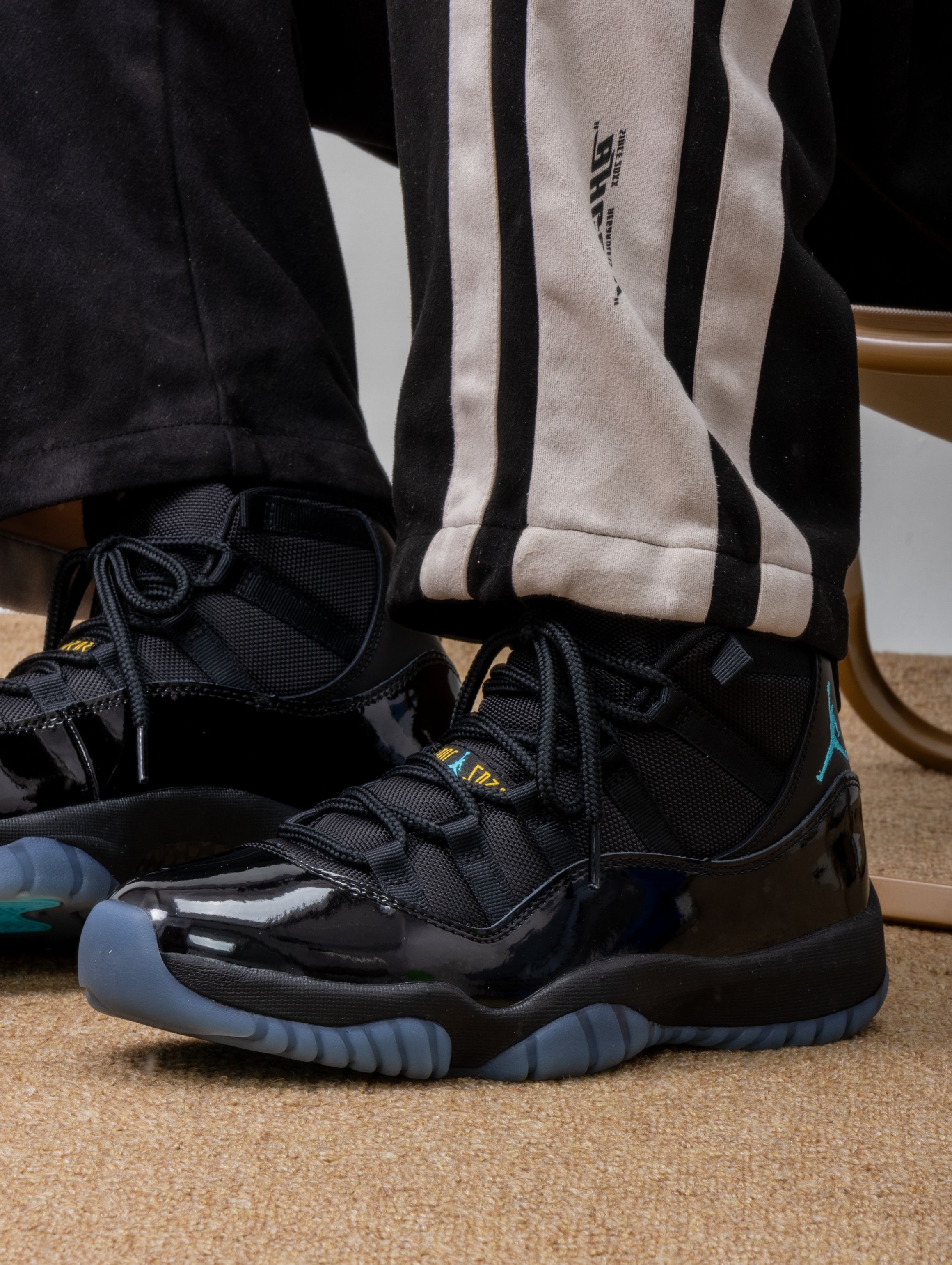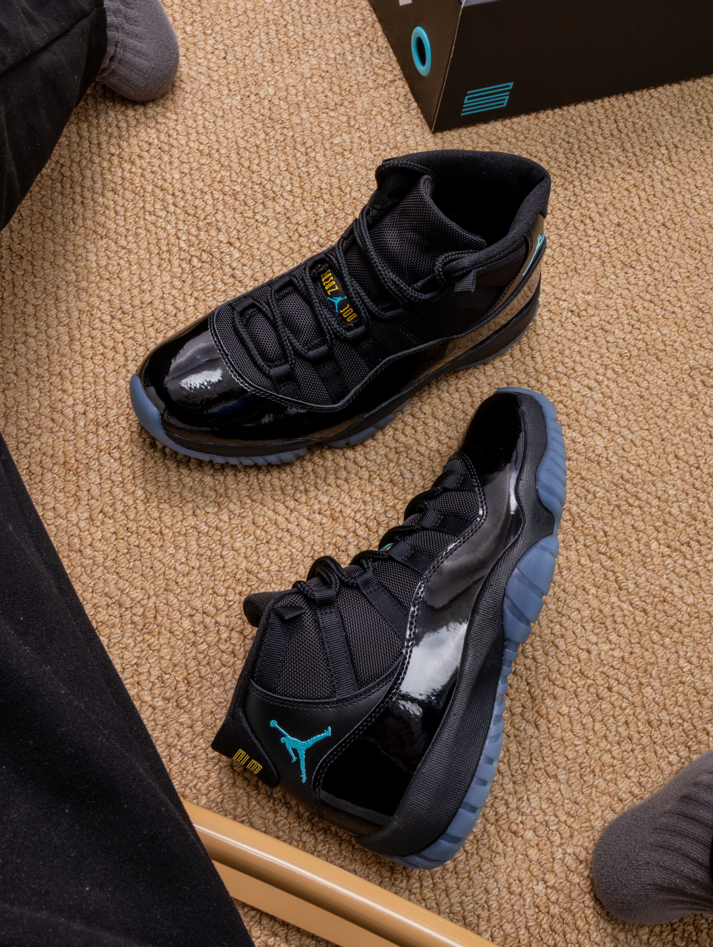 这双伽马蓝AJ11复刻到手,感觉握住了2013年的整个深夜球场。黑蓝漆皮在光下泛着幽暗的流光,冰蓝水晶底像凝结的午夜寒霜。 上脚瞬间被全掌气垫的软弹感征服——仿佛踩进一片深邃的星河,走路时脚下带着细微的呼吸感。漆皮意外地柔韧,没有初代那种生硬的束缚,后跟的碳板依旧稳妥地锁住每一次转向。 如今更多是穿着它压马路。配黑色束脚裤时,那抹暗蓝在步伐间若隐若现,像深夜战场的暗蓝刀锋,既保留着球场传奇的筋...