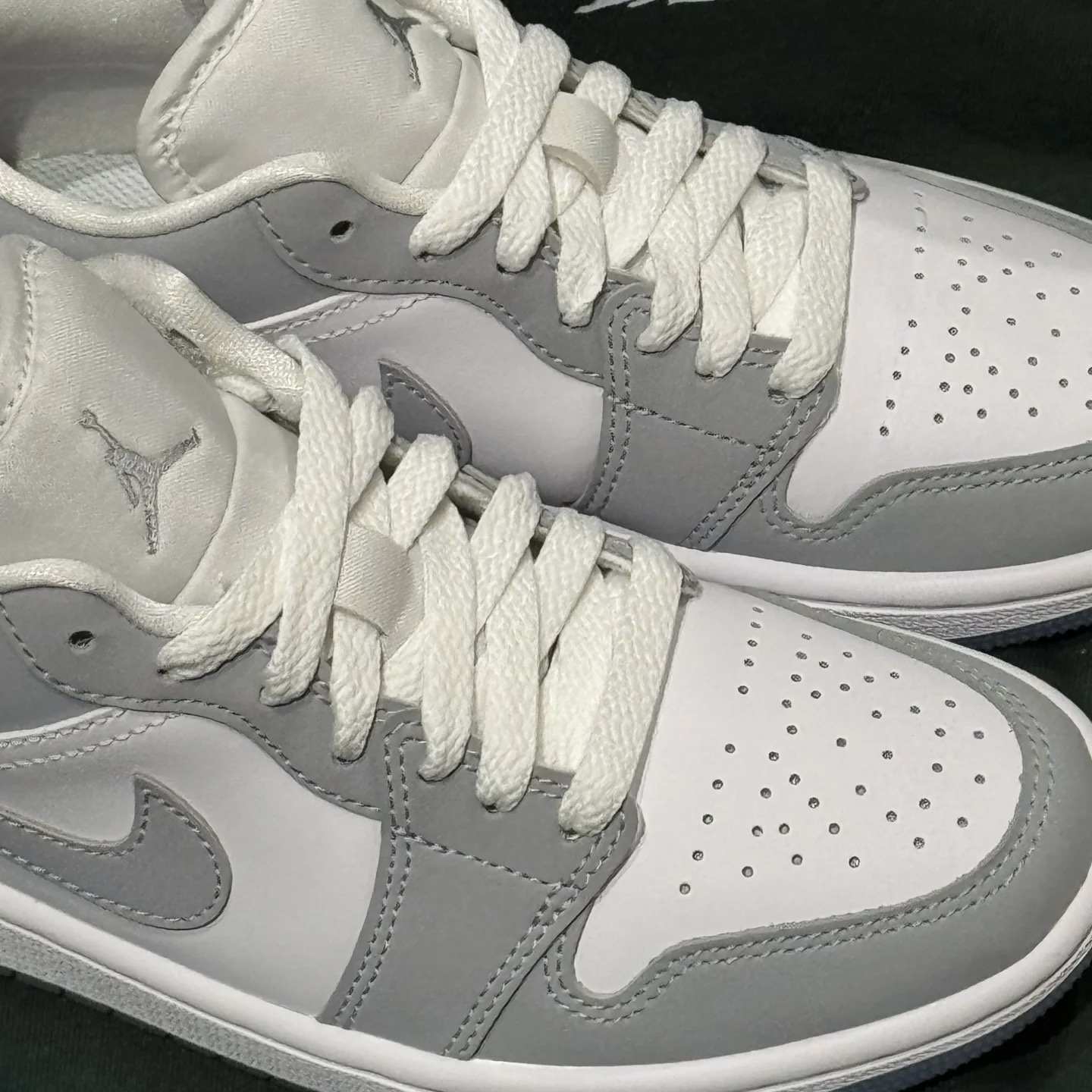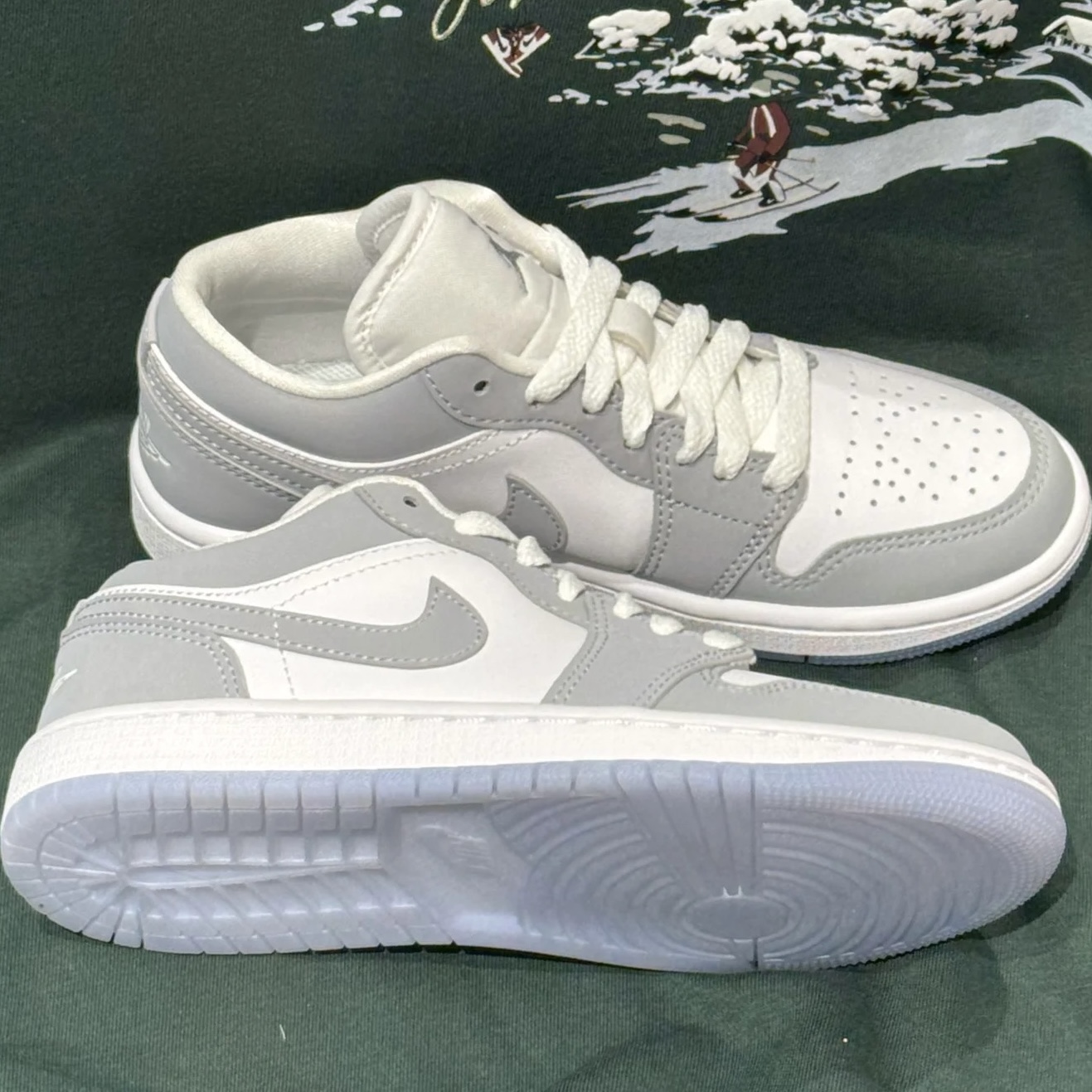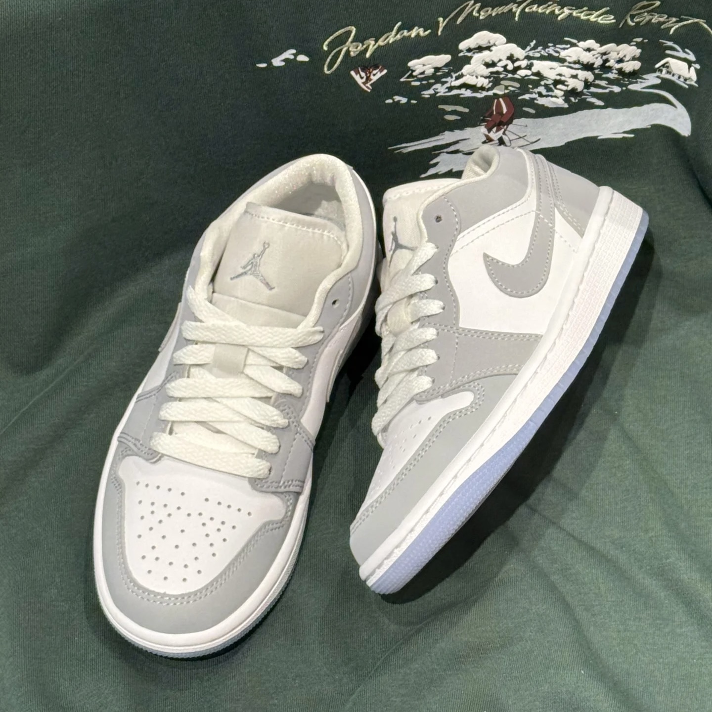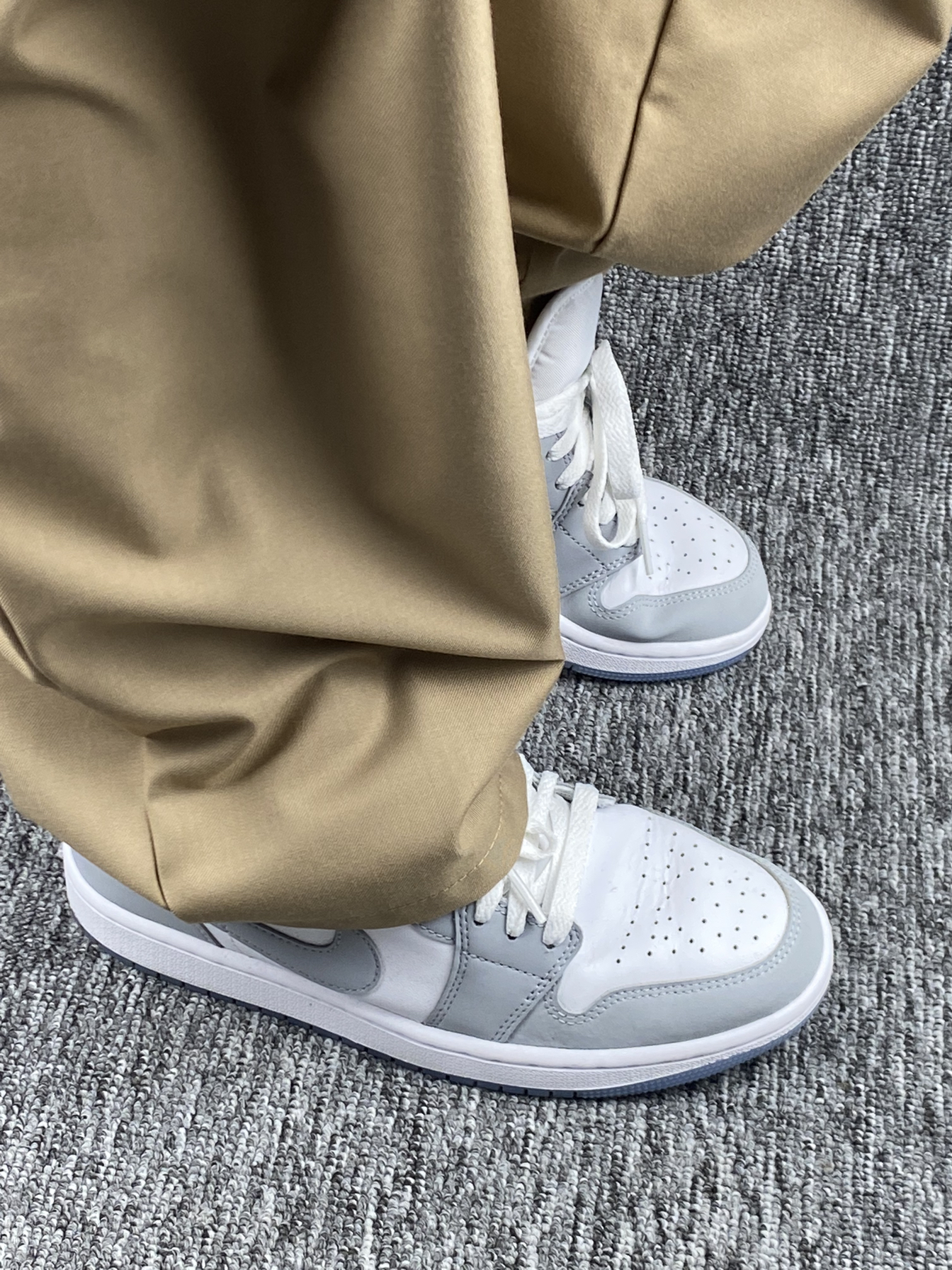 第一眼就被这高级灰白配色征服!优质皮革呈现出的细腻纹理与Dior联名款神似,冰蓝透明水晶底更是灵魂点缀,整体质感直接拉满。 上脚是经典的AJ1硬朗包裹感,安全感十足。新鞋皮质需要短暂磨合,但鞋型修长非常显脚瘦。脚感偏韧,适合日常穿搭,久走建议搭配厚袜。 搭配上堪称“六边形战士”。低调高级的灰白色调让它能驾驭任何风格:搭配西装裤是 smart casual,搭配牛仔裤是街头潮人,女生搭配裙装也能碰撞...