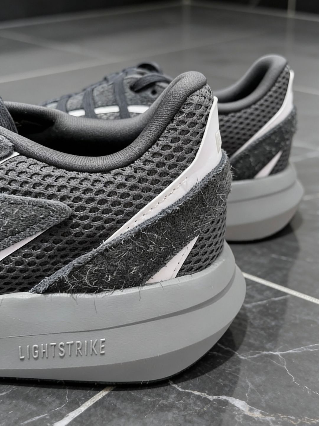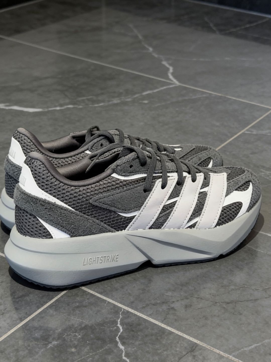 阿迪达斯Lightblaze流光跑鞋适配秋🍁冬季! 鞋面是网眼加麂皮拼接的,透气的同时也能保暖🔥,尺码和普通阿迪一样不偏码。 鞋底刚穿有点点硬,踩一天就好了,饭后散步🚶♀️都是穿它,脚不酸不累! 深灰色个人感觉高级感⬆️,颜值比较喜欢,日常通勤、轻运动穿都合适,搭休闲装、运动装都好看😎。