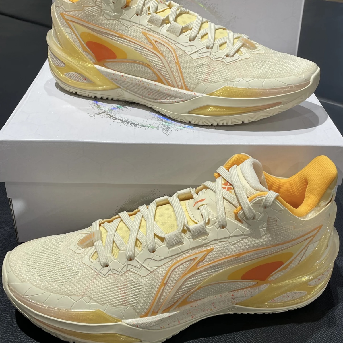 初见这双「溏心蛋」配色,便被其治愈感视觉吸引——橙黄渐变鞋身模拟溏心流淌的温暖质感,与半透TPU细节相映成趣,充满巧思与活力,球场辨识度极高。 实战体验则与外观形成反差:全掌䨻中底韧弹依旧,提供稳健的缓震与迅速的启动响应。鞋身锁定系统扎实可靠,侧向支撑在变向时给予充分安全感。外底抓地力表现均衡,能适应多种场地条件。 总结:这双鞋完美平衡了吸睛外观与硬核实战内核。它不仅是球场上的视觉焦点,更是一...
