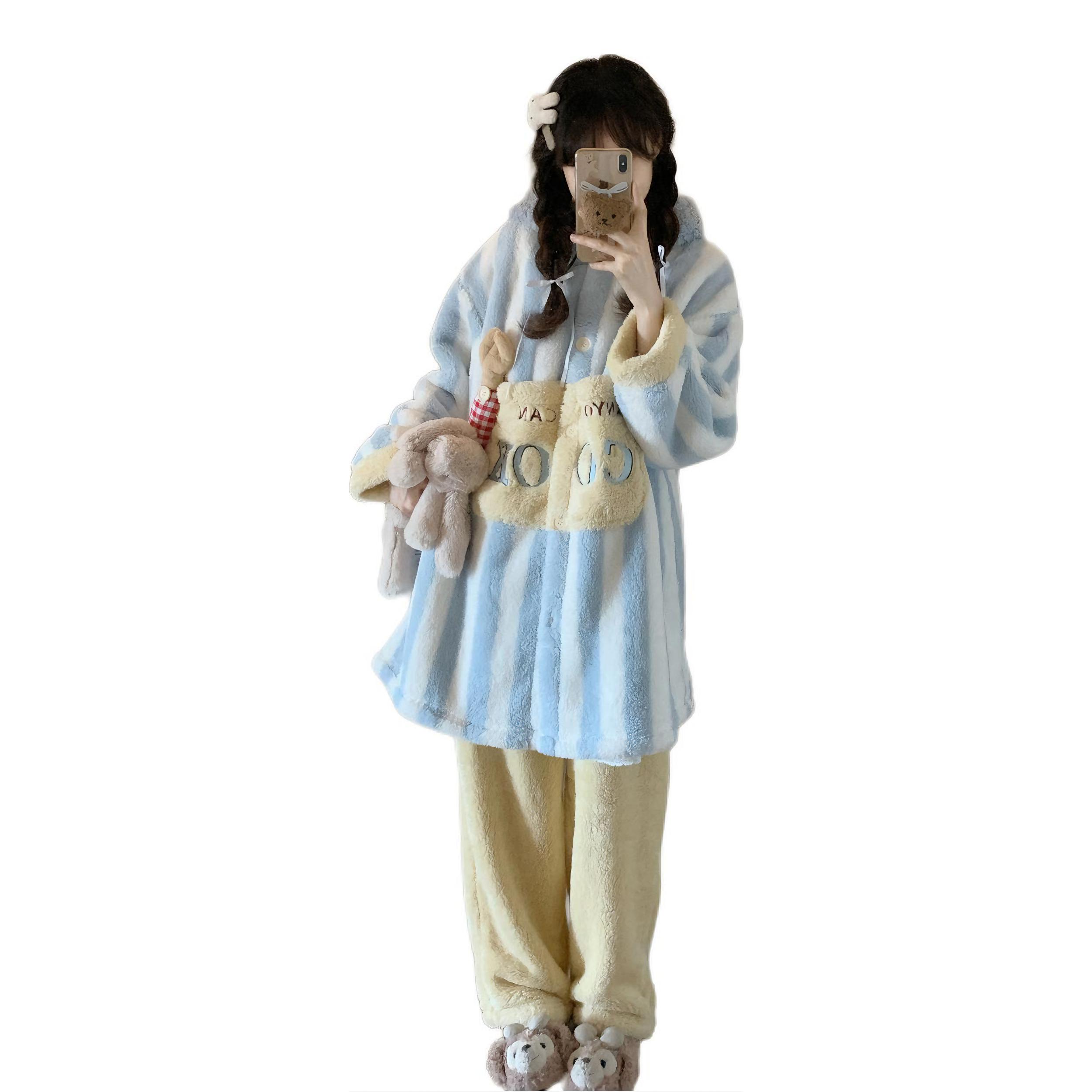 本篇笔记关联了GUKOO/果壳 x 料理鼠王 联名保暖珊瑚绒条纹长袖睡衣 女装 825426202205 冰蓝上装+浅黄下装等商品,为用户提供真实的使用体验和购买参考。