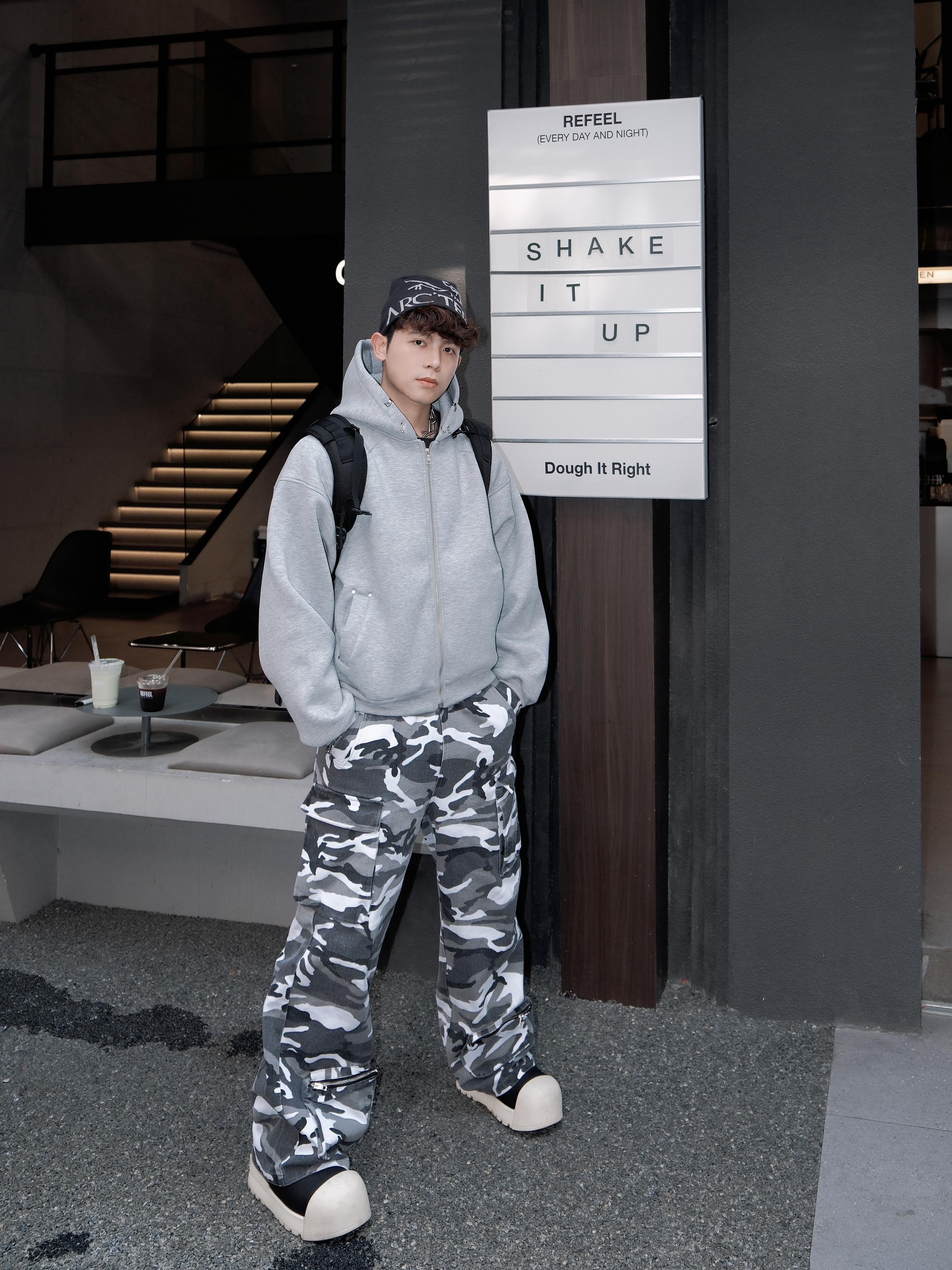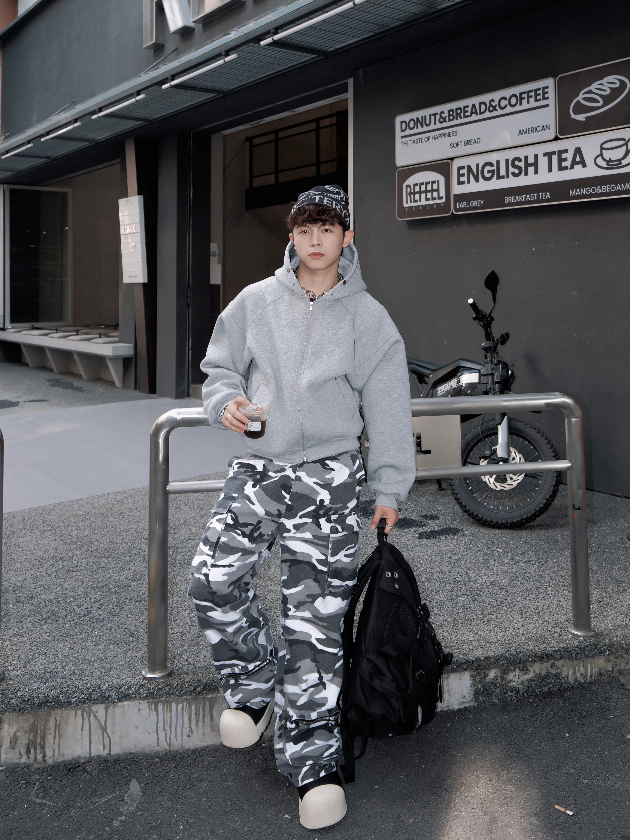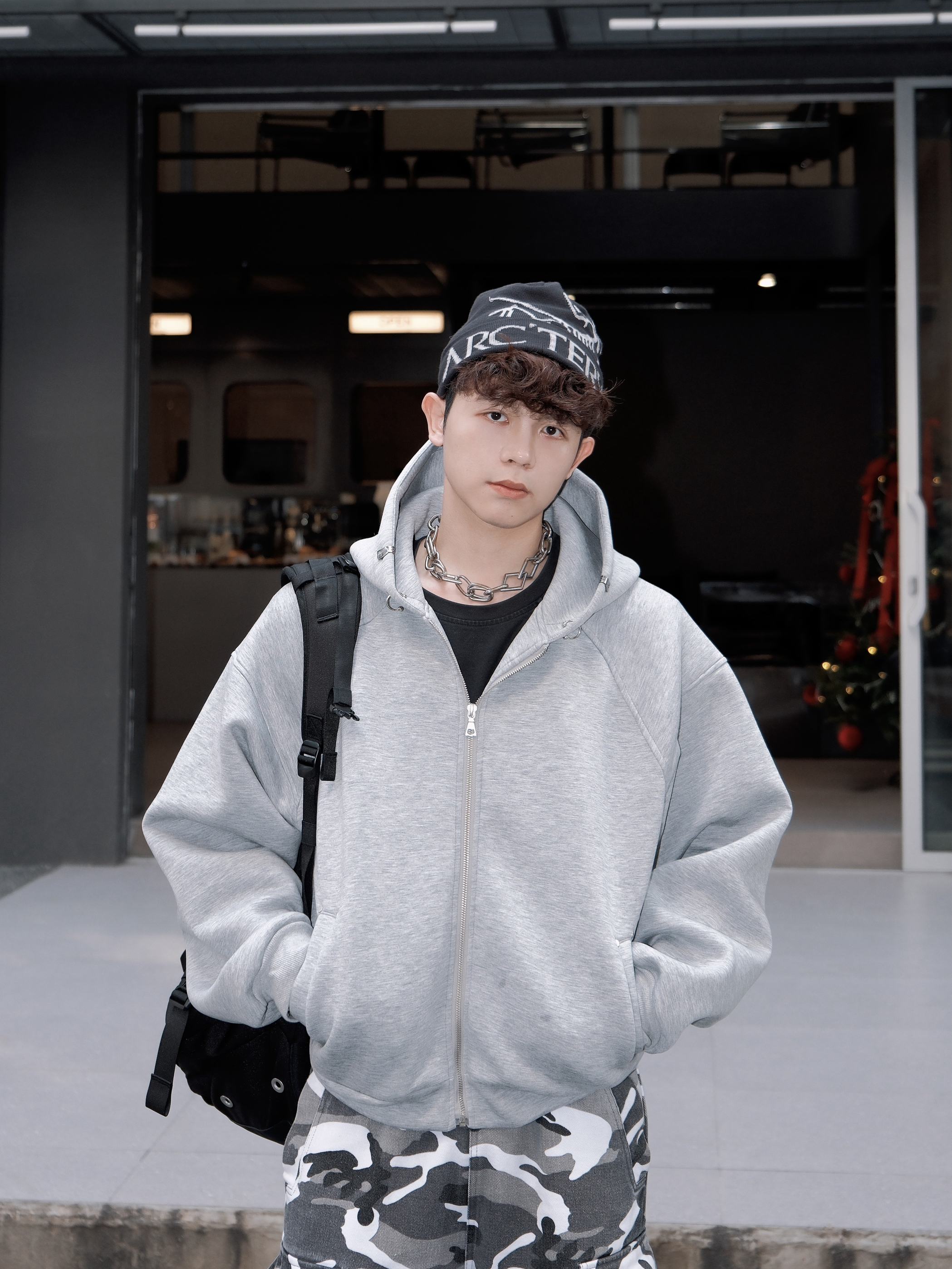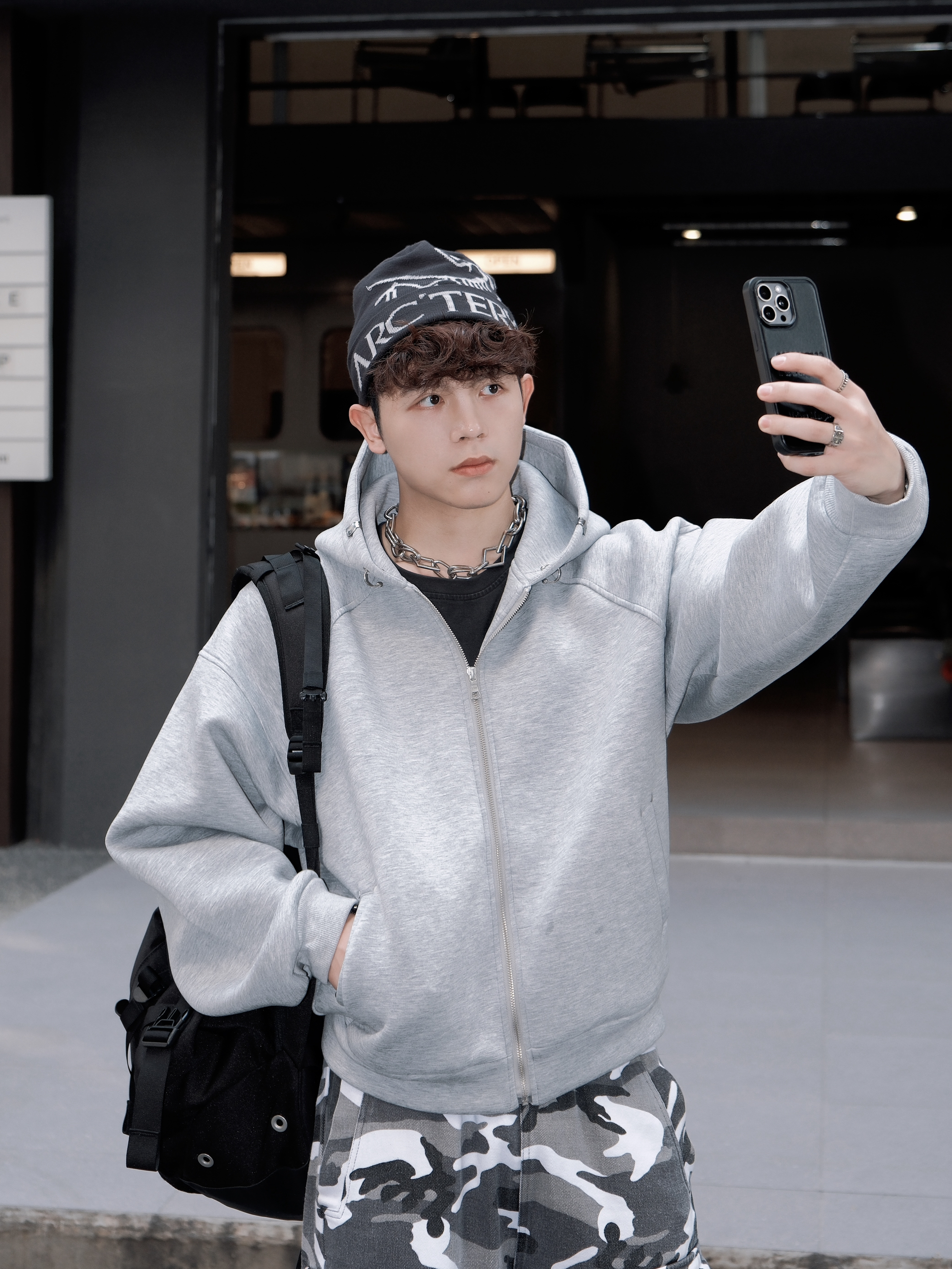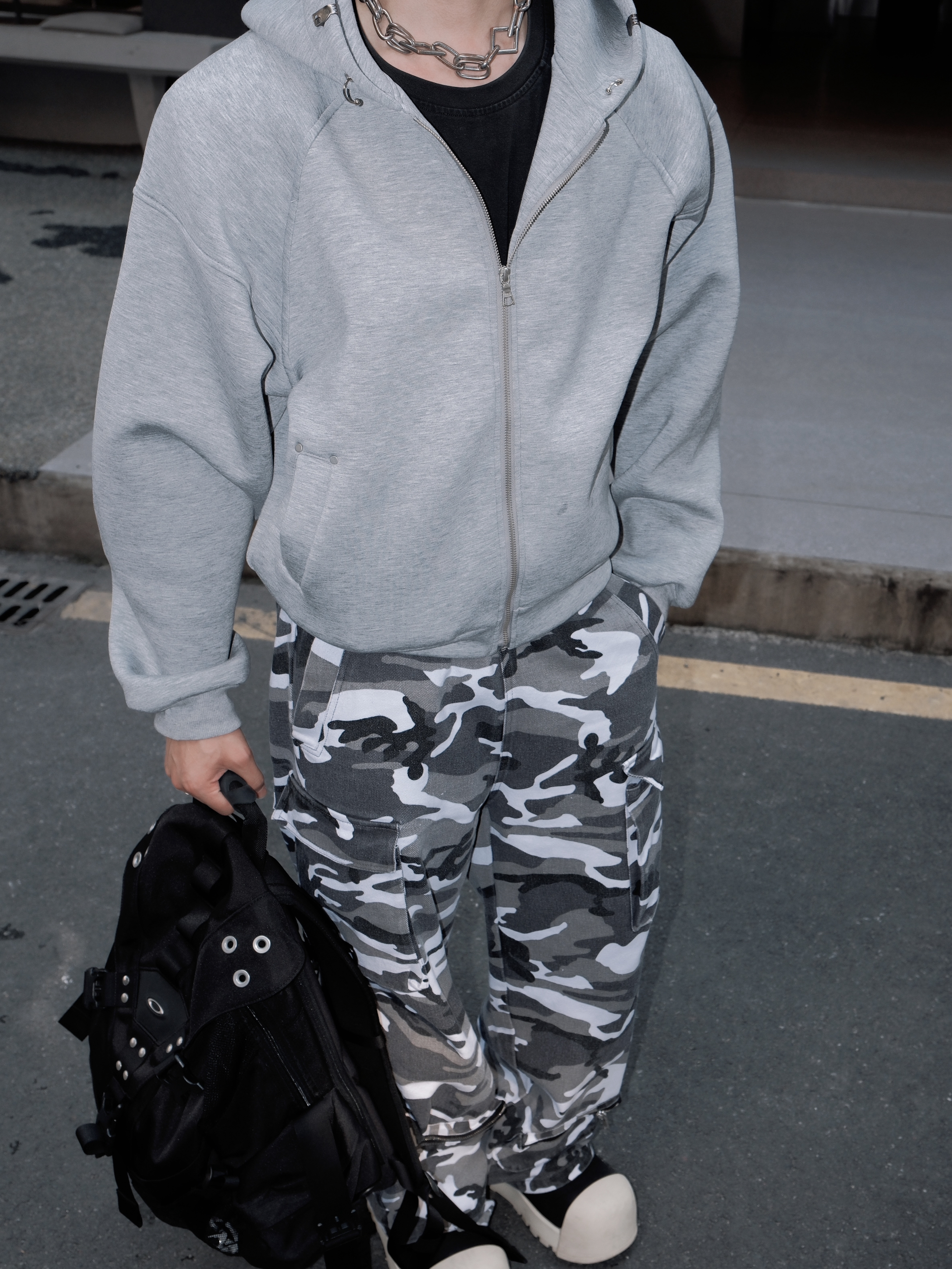 能一直留在衣橱里 必然是百搭适合常穿的款式😌 这款 made exteme的灰色连帽卫衣击中我的心巴了 短宽的版型很好的修饰身材比例😉 简约百搭灰的配色 能搭配多种风格 帽子领口处的金属设计 小细节突出特点🤩 搭配一条迷彩工装裤 帅得没边儿啦~
