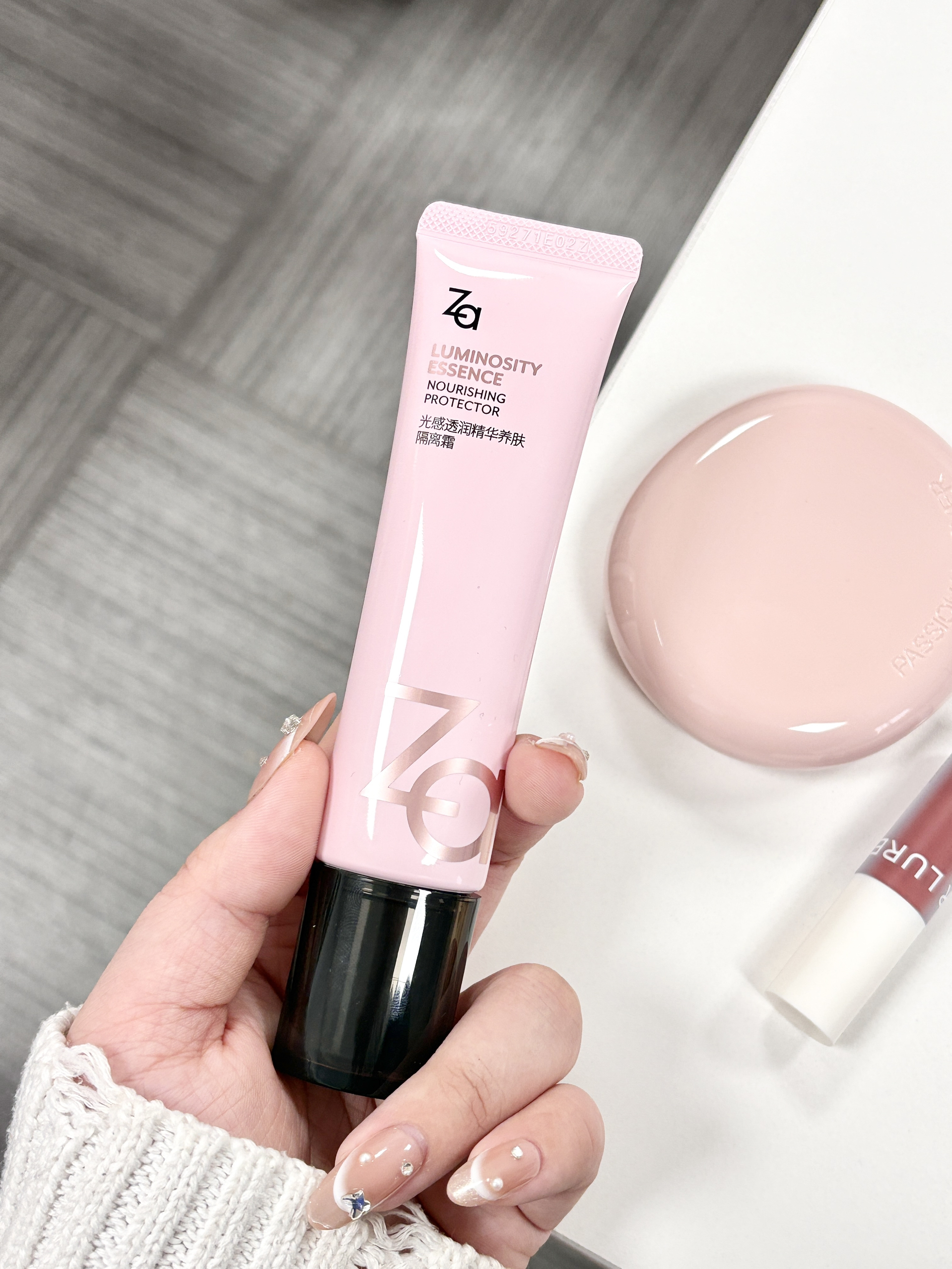 这仨搭配用轻松就能搞定伪素颜 我平时早八就用这是三个化妆 先用Za隔离 润到像涂了精华 推开是自然的提亮感 一点不假白 然后再用PL看不见粉饼定下妆 薄薄一层就能把痘印盖住 柔焦雾面的妆效 持妆力也可以 最后涂个低饱和奶茶色唇釉就好啦 这三件套就是早八人的天菜 随便画画都有素颜好皮的感觉
