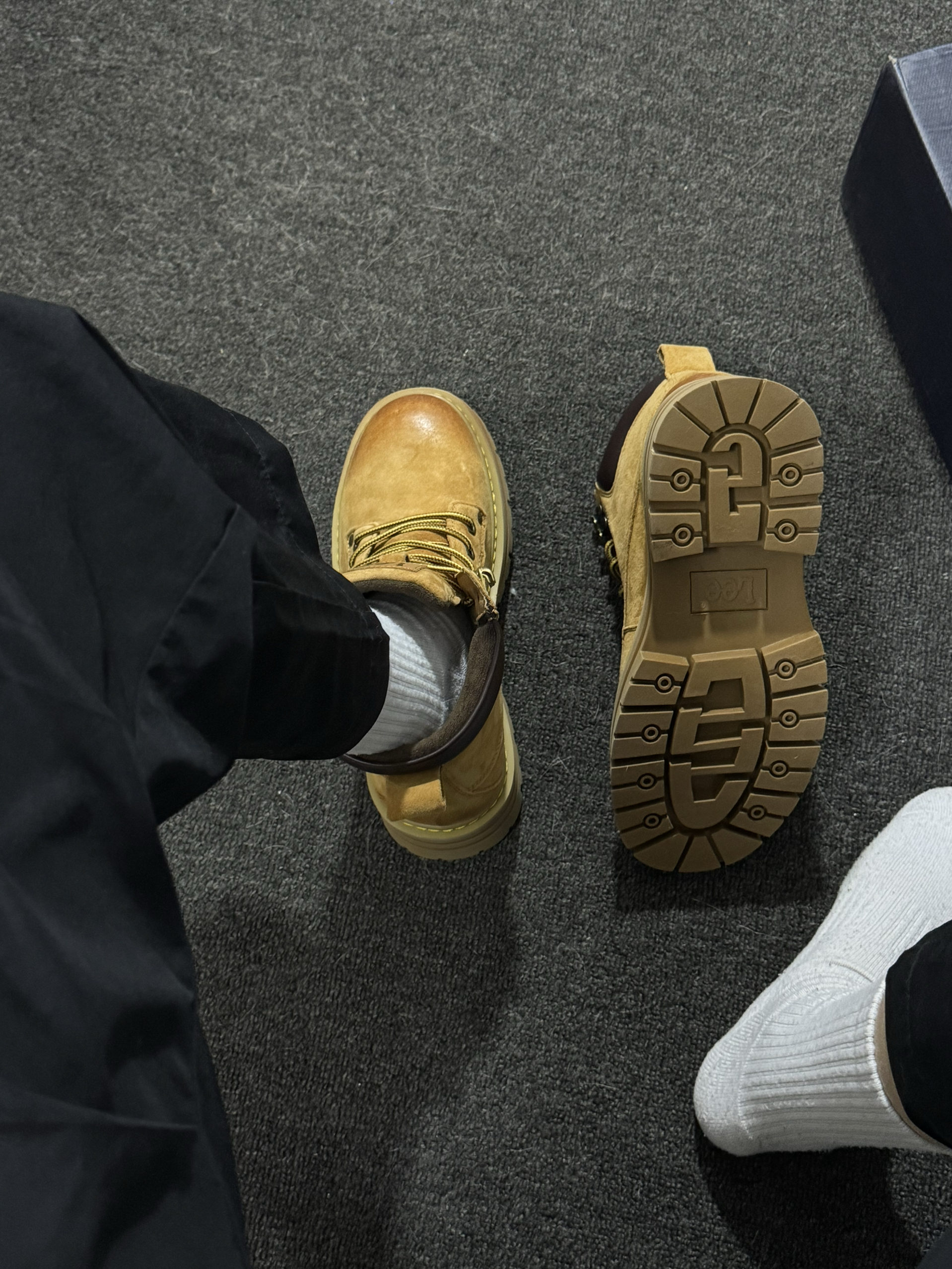 毋庸置疑!大黄靴就是秋冬必备单品🪵 Lee版的包帅.... 冬天的大黄靴又多了一双 焦糖色真的很有氛围感 而且大黄靴是真的百搭 不管搭紧身还是阔腿都很好看 高帮还能给脚腕防风 冬天必备单品就是它了
