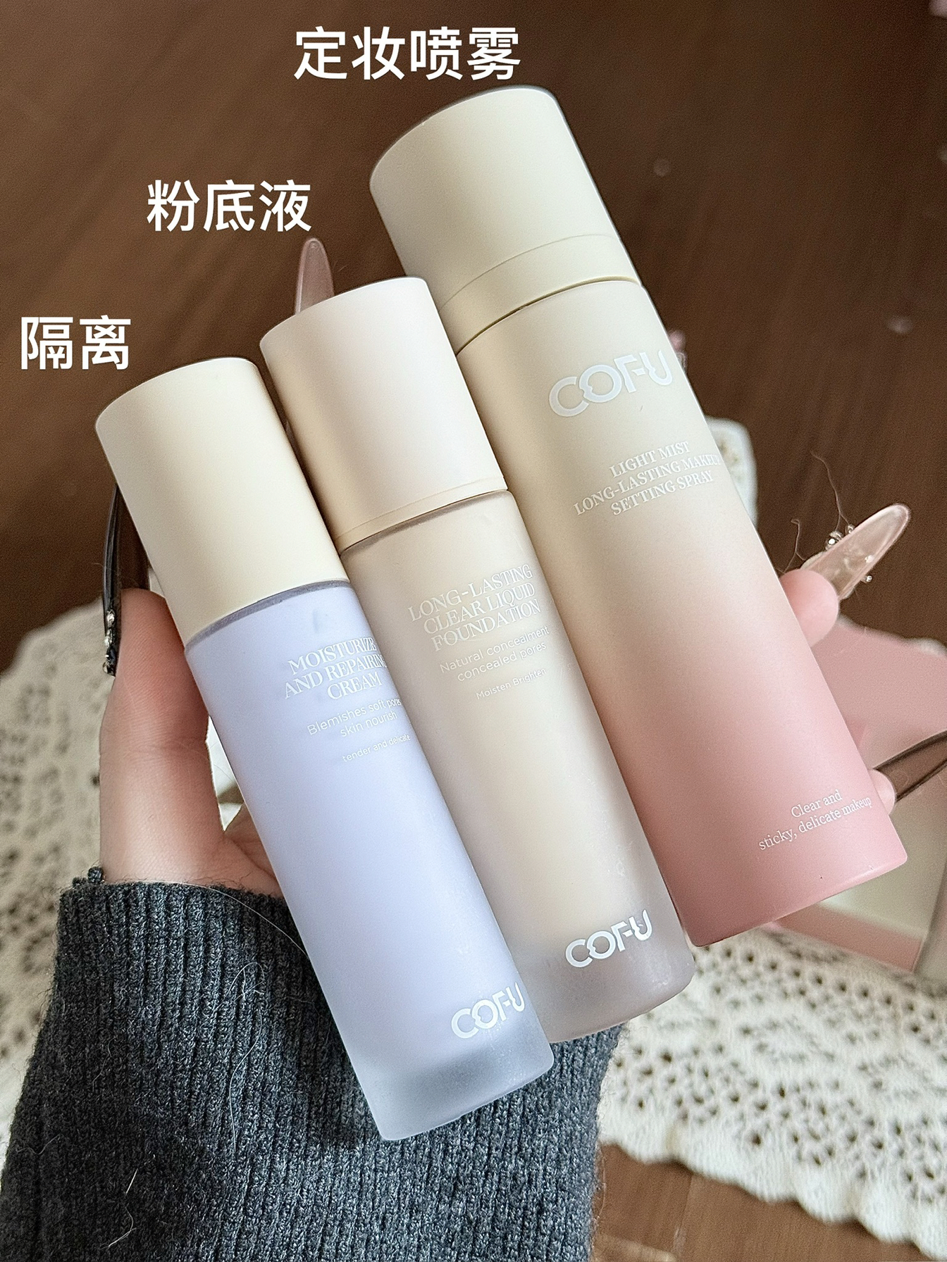 本篇笔记关联了cofu 持妆无瑕粉底液 隐匿毛孔 30g #01 白皙色、COFU 清透服帖持妆不易脱妆定妆喷雾套装 定妆喷雾100ml*2、COFU 轻薄透气不拔干柔焦粉饼 11g #2 柔肤色等商品,为用户提供真实的使用体验和购买参考。