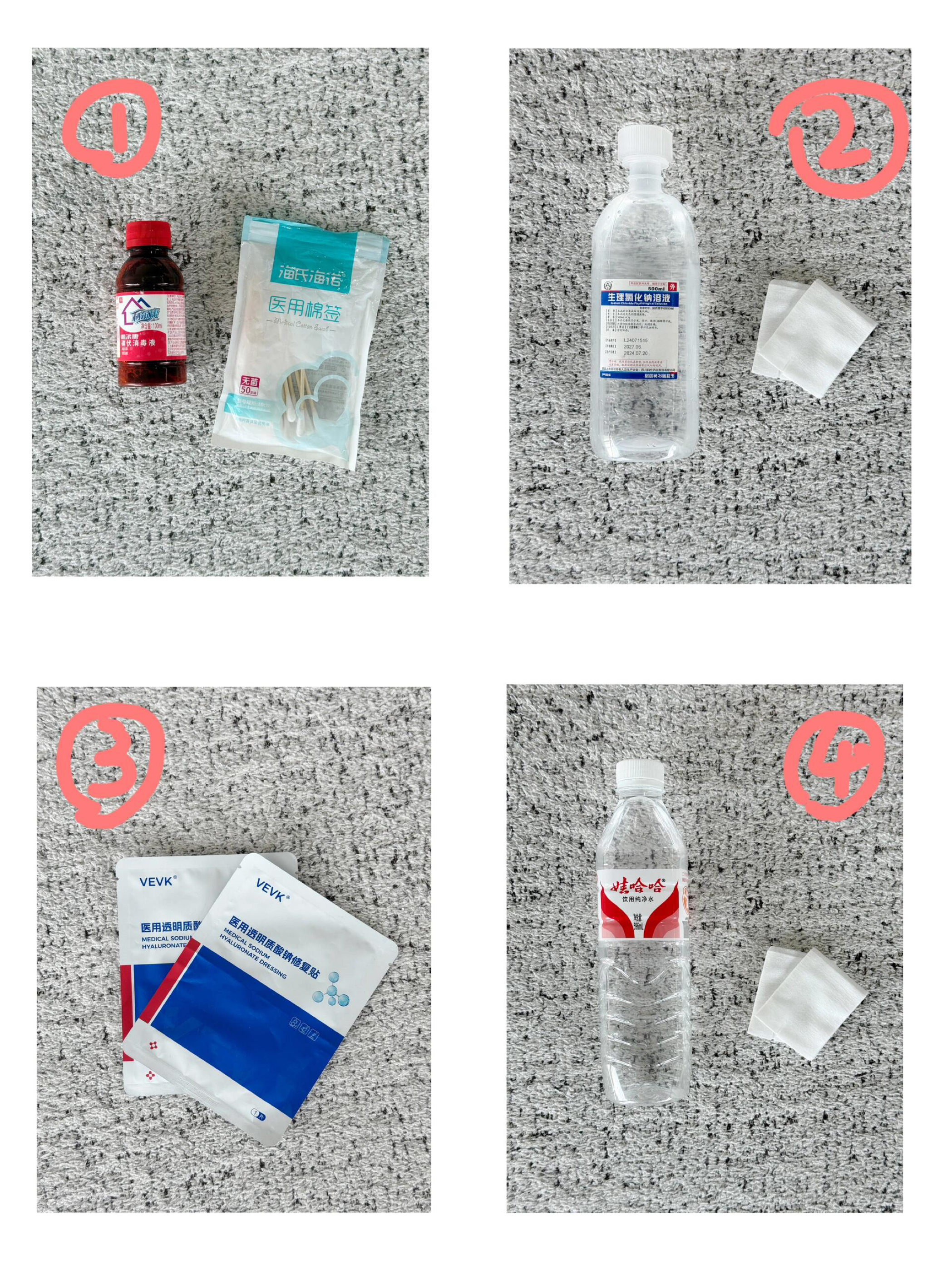 2⃣ **生理盐水清洁**