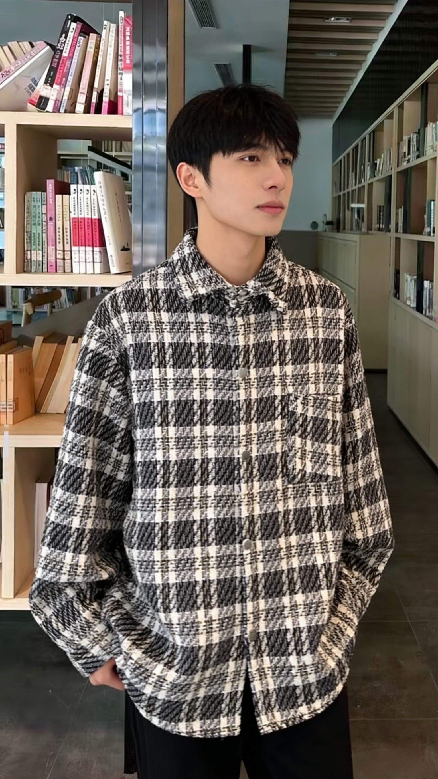 家人们谁懂啊!这件棋盘格衬衫我直接封神了😎 办公室办公穿不违和,去书店打卡巨出片,就连公园散步穿都超有范儿~磨毛面料厚实得很,秋冬穿不冷还能保持版型挺括,宽松款啥身材都能驾驭,藏肉又显气质✅ 单穿内搭都好看,配条黑裤子就氛围感拉满,男生穿贼帅,闭眼冲就完事了🛒