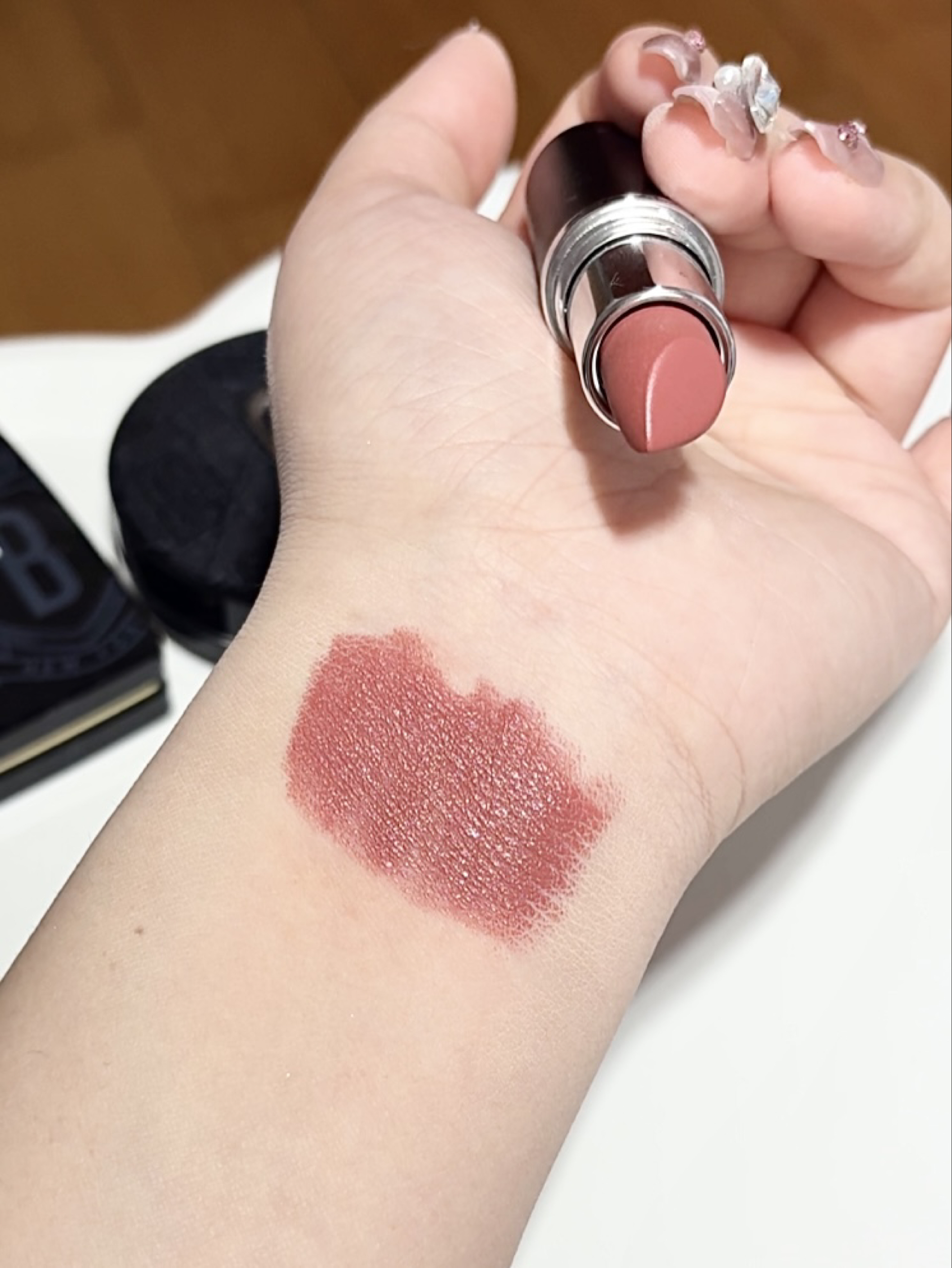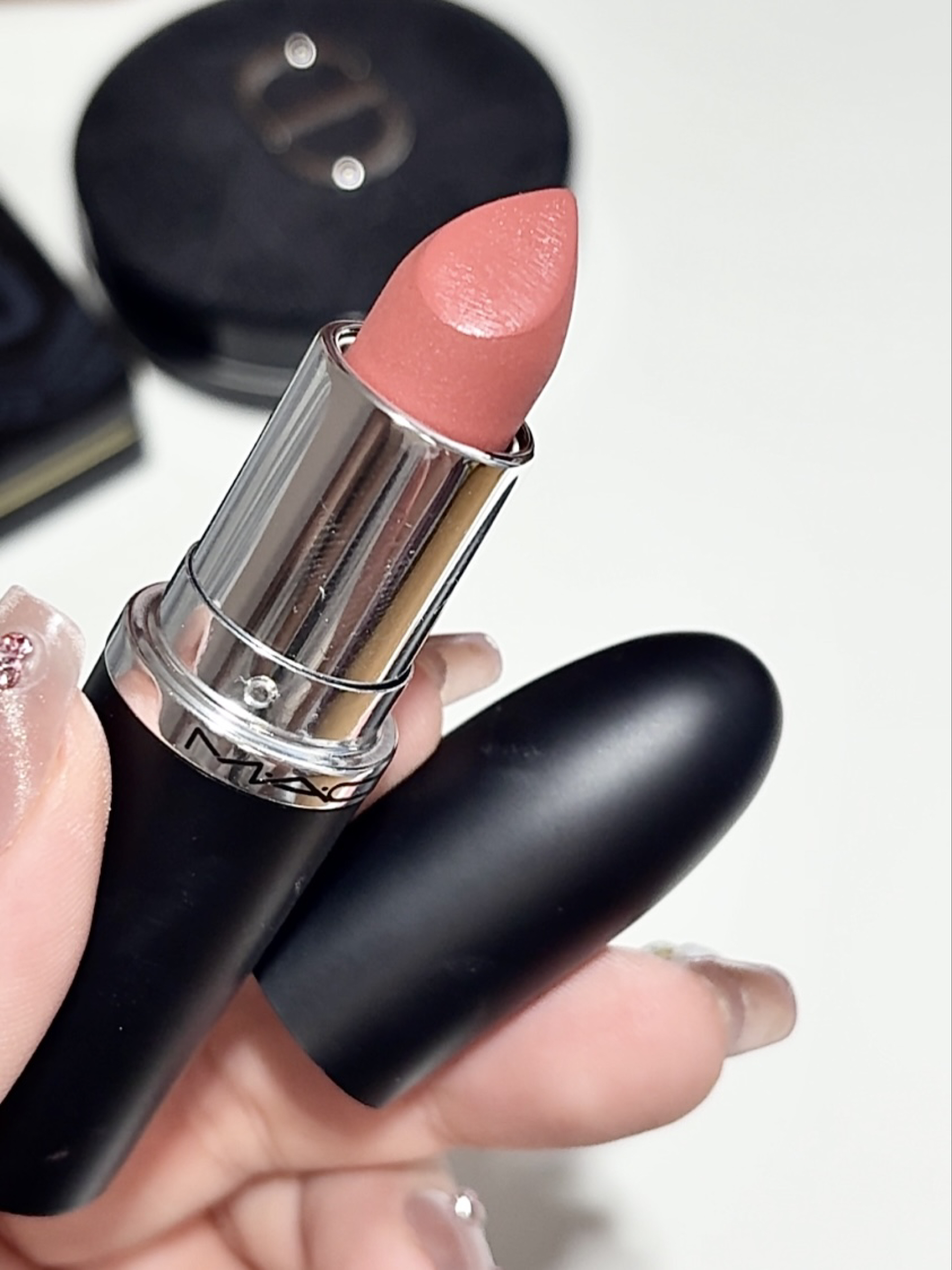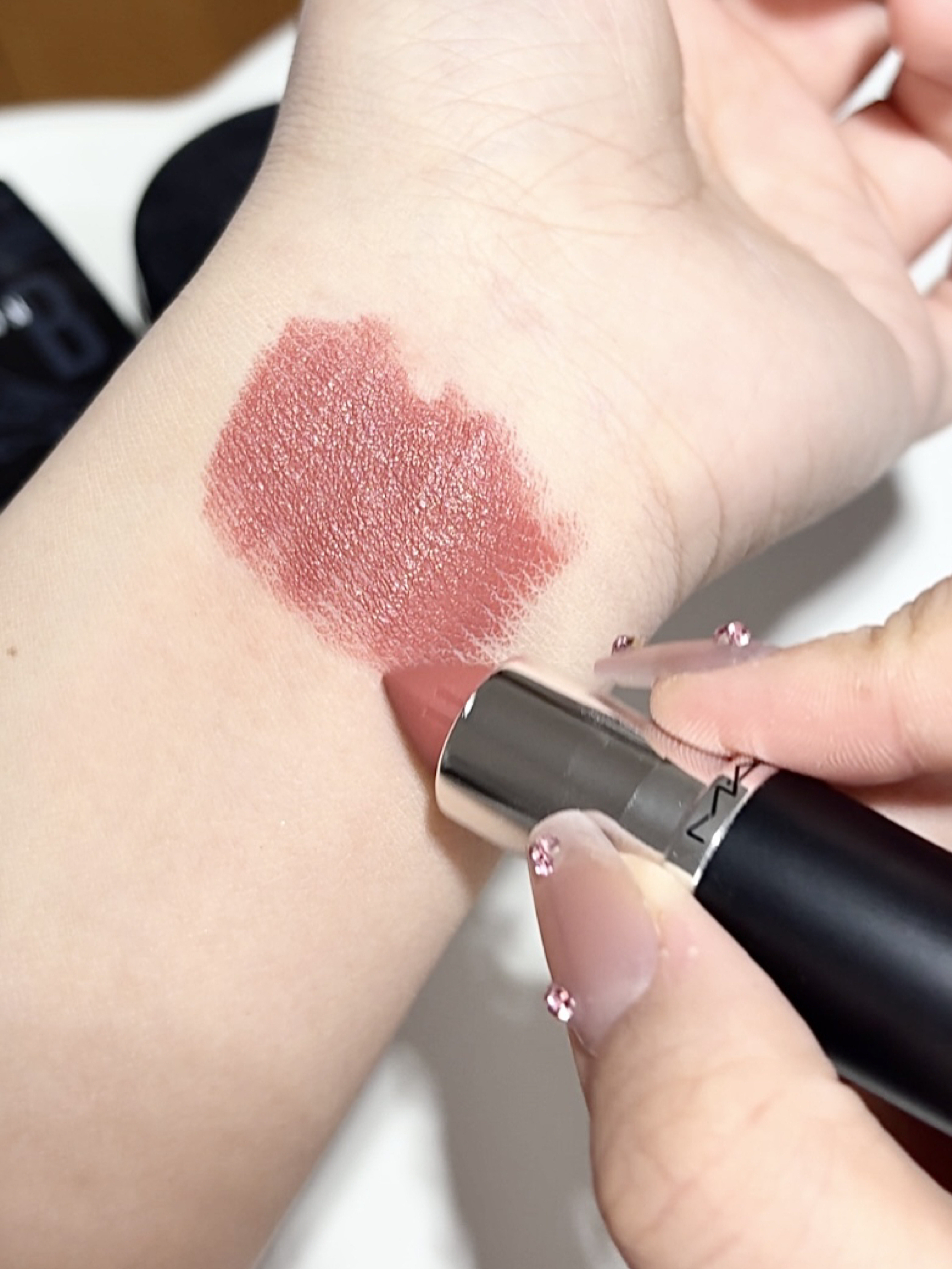 MAC这支裸调奶茶色直接戳中我心巴 哑光磨砂的外壳质感拉满,拿在手里超有分量 质地是丝绒雾面的,上嘴丝滑不拔干 显色度也很在线,薄涂是温柔的伪素颜奶茶色 厚涂是带点棕调的豆沙色,黄皮涂也巨显白 完全不踩雷 日常通勤、约会涂都超合适