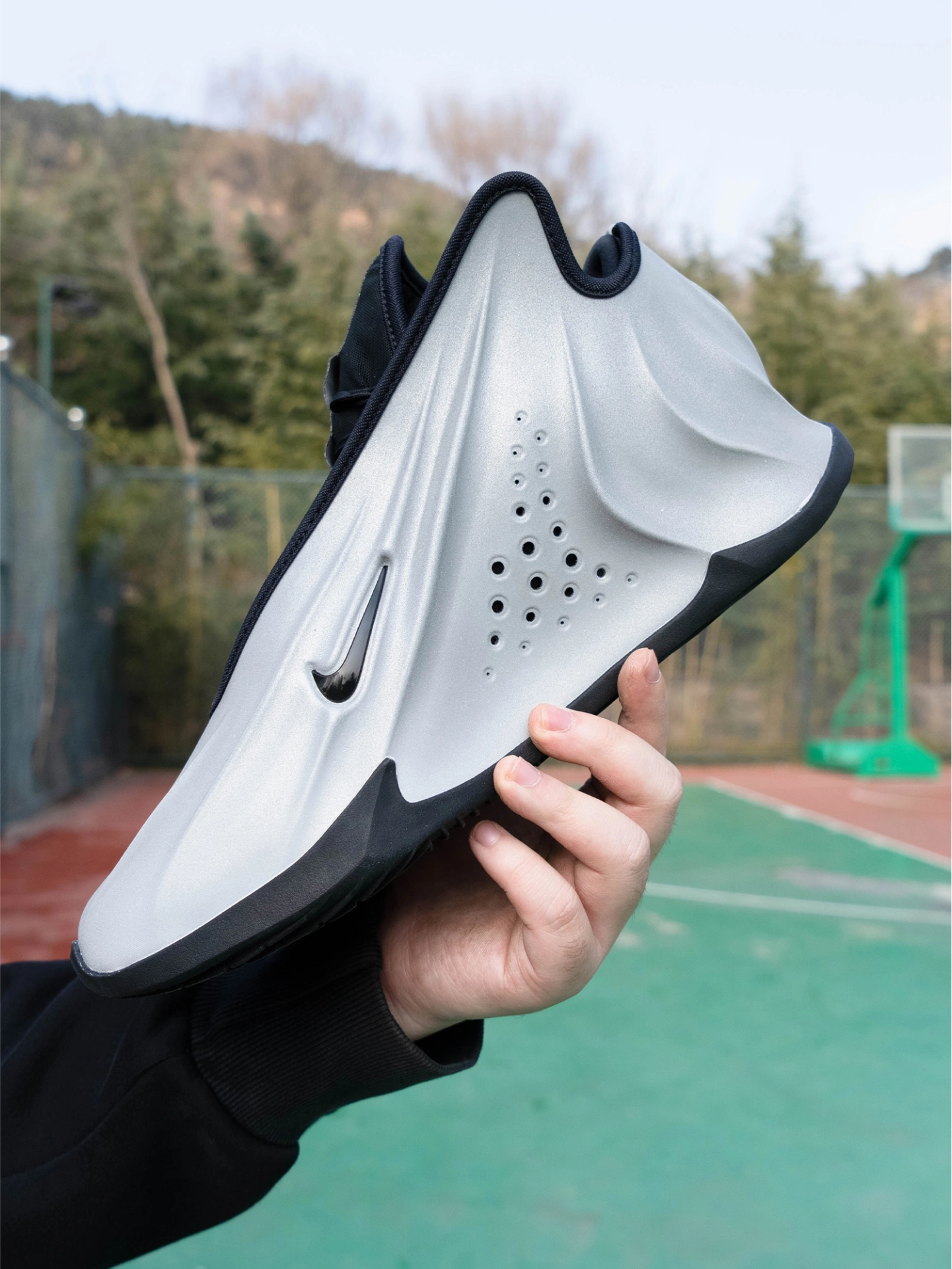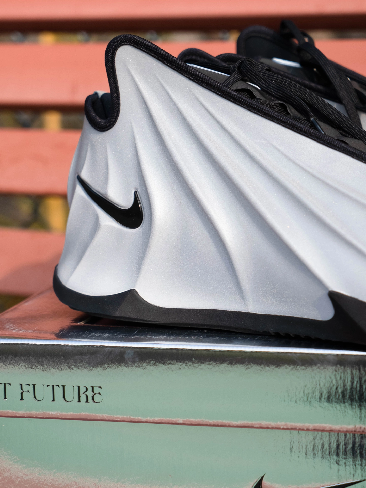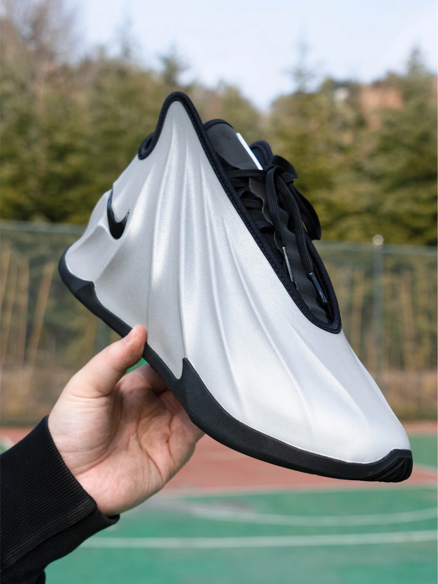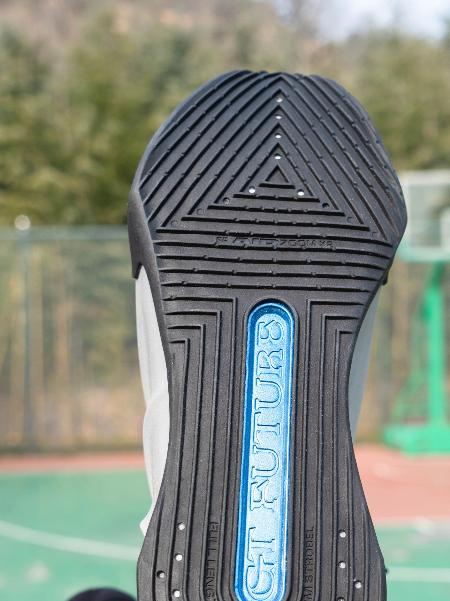 #2025得物年度鞋王 #2025年度好东西 Nike gt future,之前超想买的一款球鞋,终于到货了,全模压鞋面独特的雕塑感结构,以闪耀的银色呈现,流畅的线条勾勒出鞋型,鞋如其名,充满了未来感,中底采用了Cushlon 3.0,再搭配上全掌Zoom Strobel气垫和前掌Air Zoom气垫,脚感非常澎湃,缓震极限拉满。