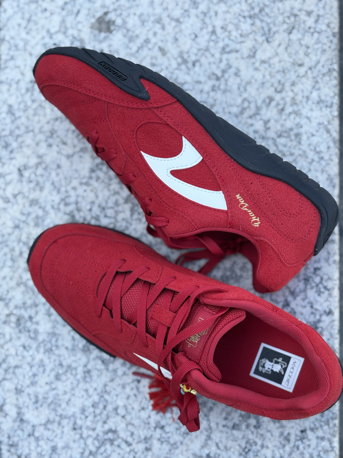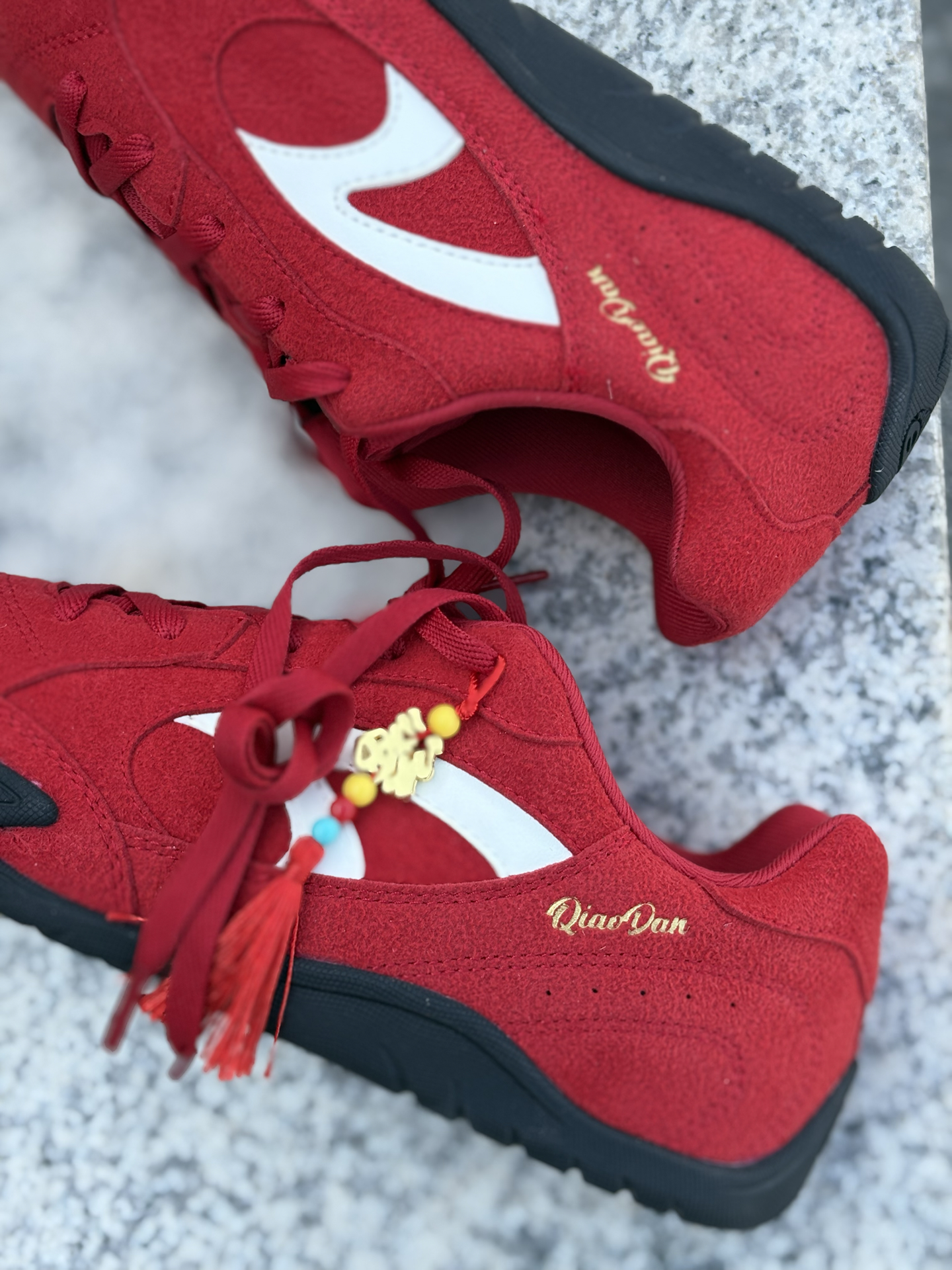 马上就2026了,刚好是我的本命年,按照习惯不得安排一双红色的鞋子👟来穿,刚好最近安利了这款 #乔丹 赛车薄饼鞋,真的质感超级好,绒面皮的材质看起来很有料啊,👀大红色一上脚就是吸睛的存在❗ 虽然整双鞋的底看起非常薄,但是这双鞋的鞋垫却做得非常舒服,薄底的设计却能依靠鞋垫带来舒适的脚感,还是非常不错的,实际穿起来走路是比较舒服的,出门玩乐穿这双真的随地都能出片📸 #2025得物年度鞋王 #2025...