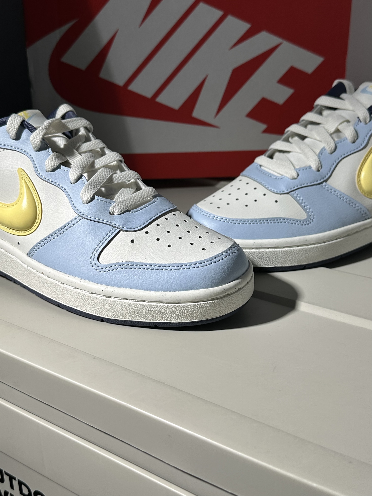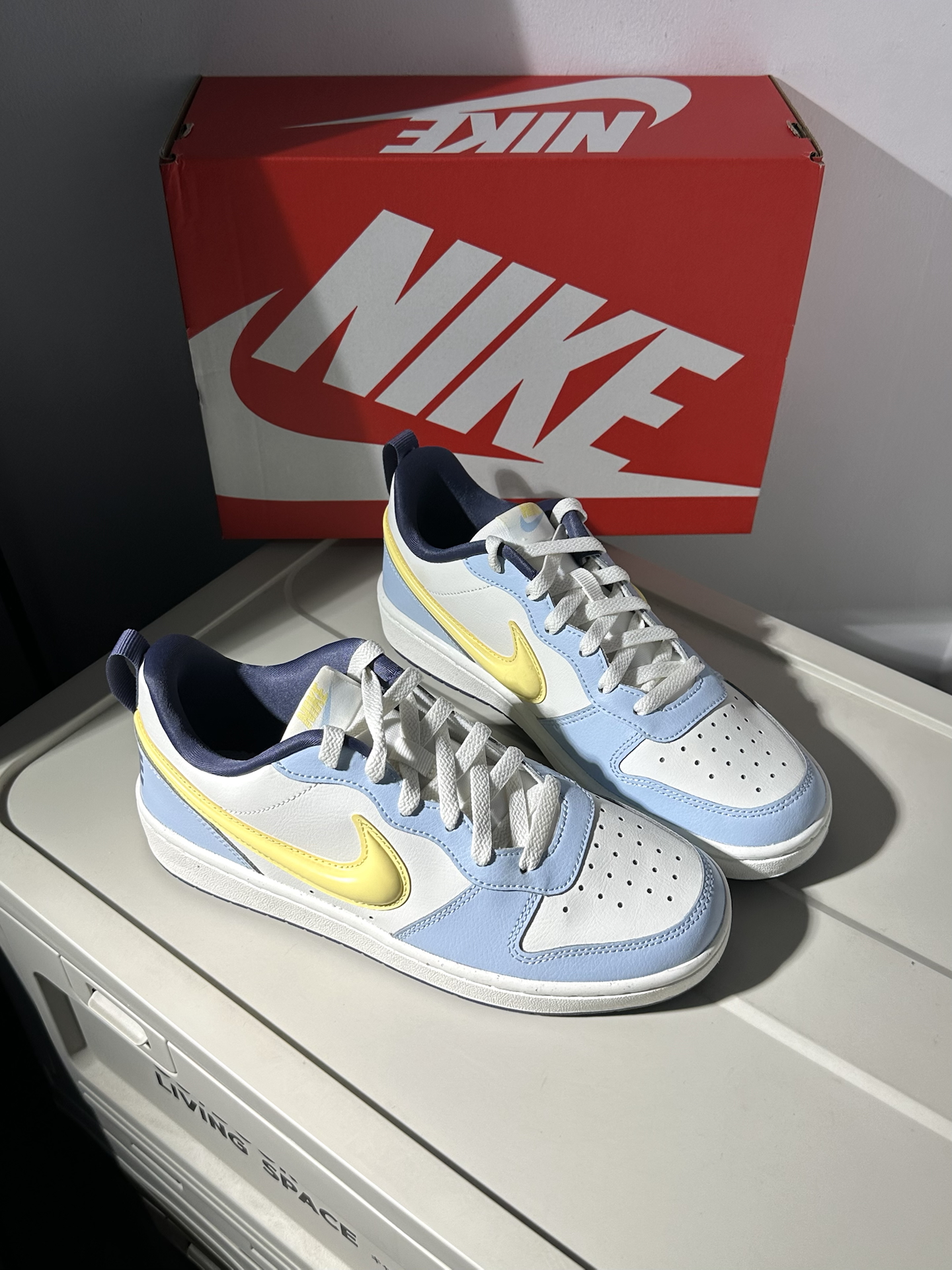 本篇笔记关联了Nike Court Borough 复古 舒适透气 防滑耐磨 轻便 防水耐穿 板鞋 运动休闲鞋 大童/蓝色/亮黄色等商品,为用户提供真实的使用体验和购买参考。